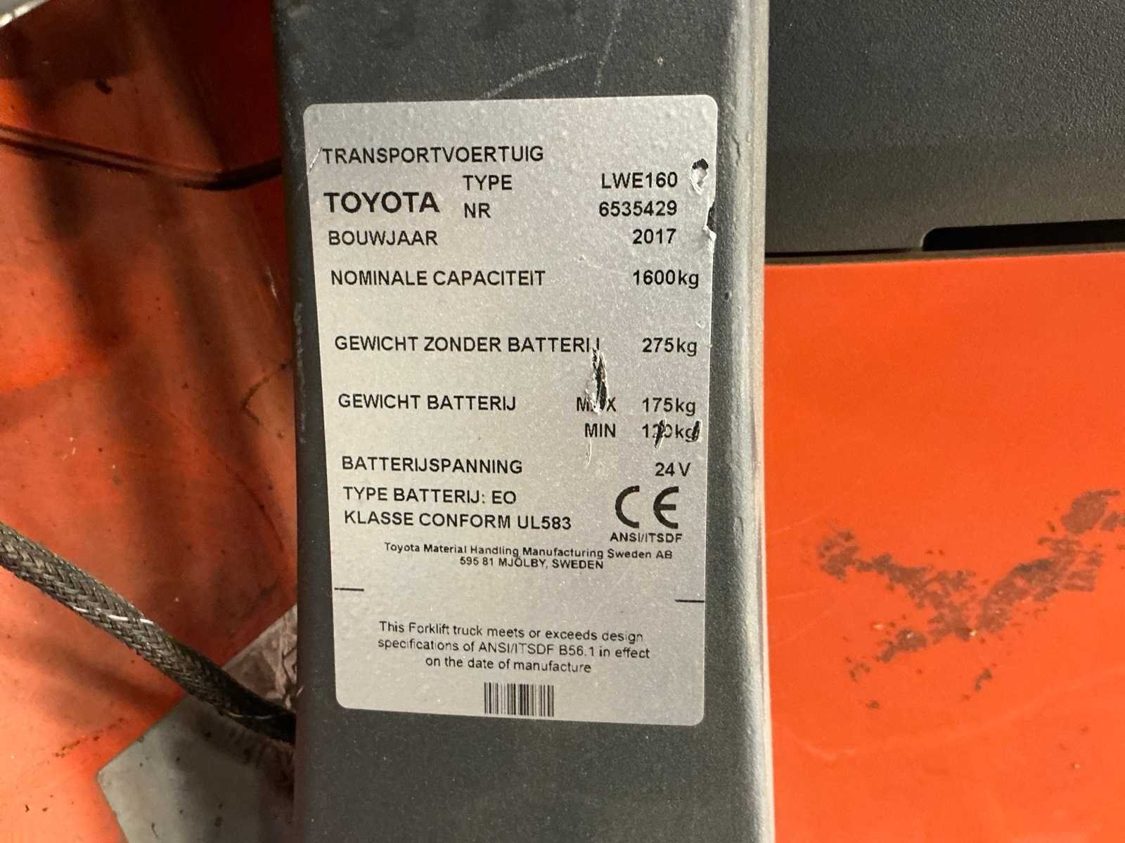 2017 toyota lwe160 elektrische palletwagen
