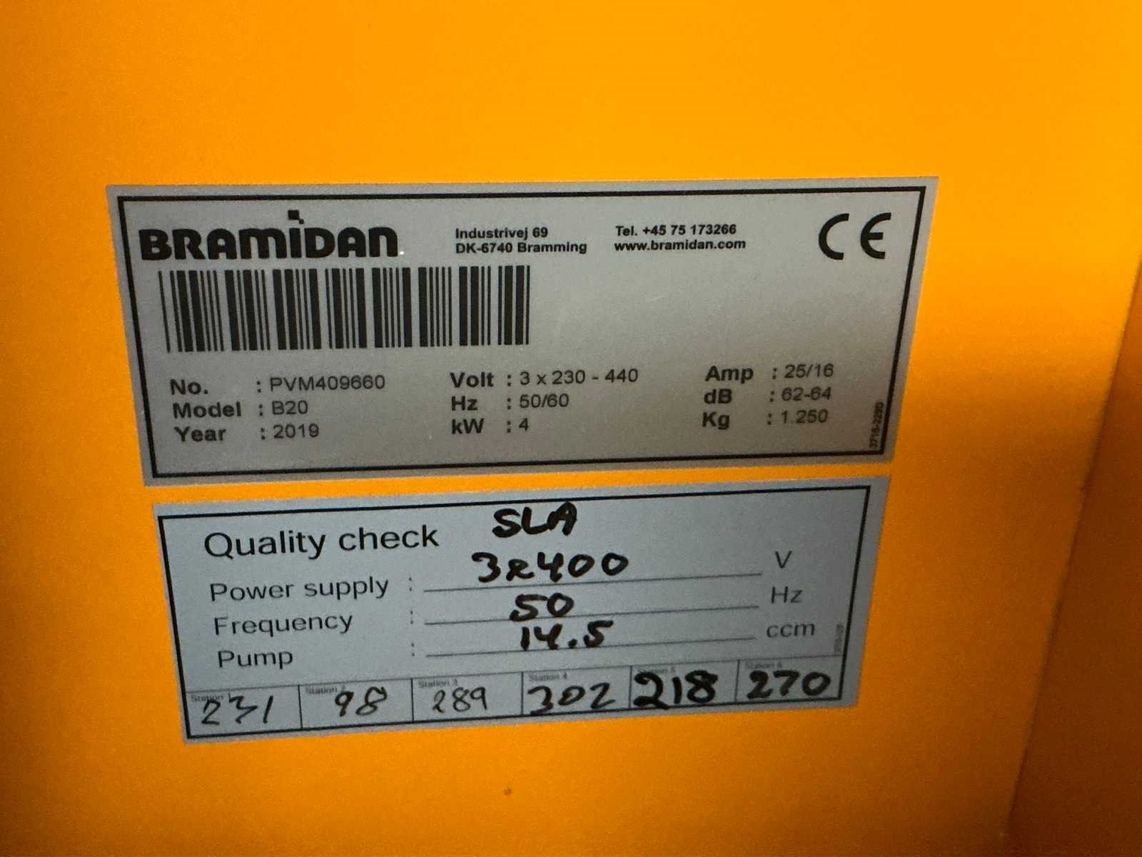 Vulopening: 1200×480 mm, 400 volt, Merk: Bramidan Type: B20 Bouwjaar: 2019 Serienummer: PVM409660 Totale afmeting L: 1775mm Totale afmeting Breedte: 1000mm Totale afmeting Hoogte: 2790mm Eigen gewicht: 1250kg