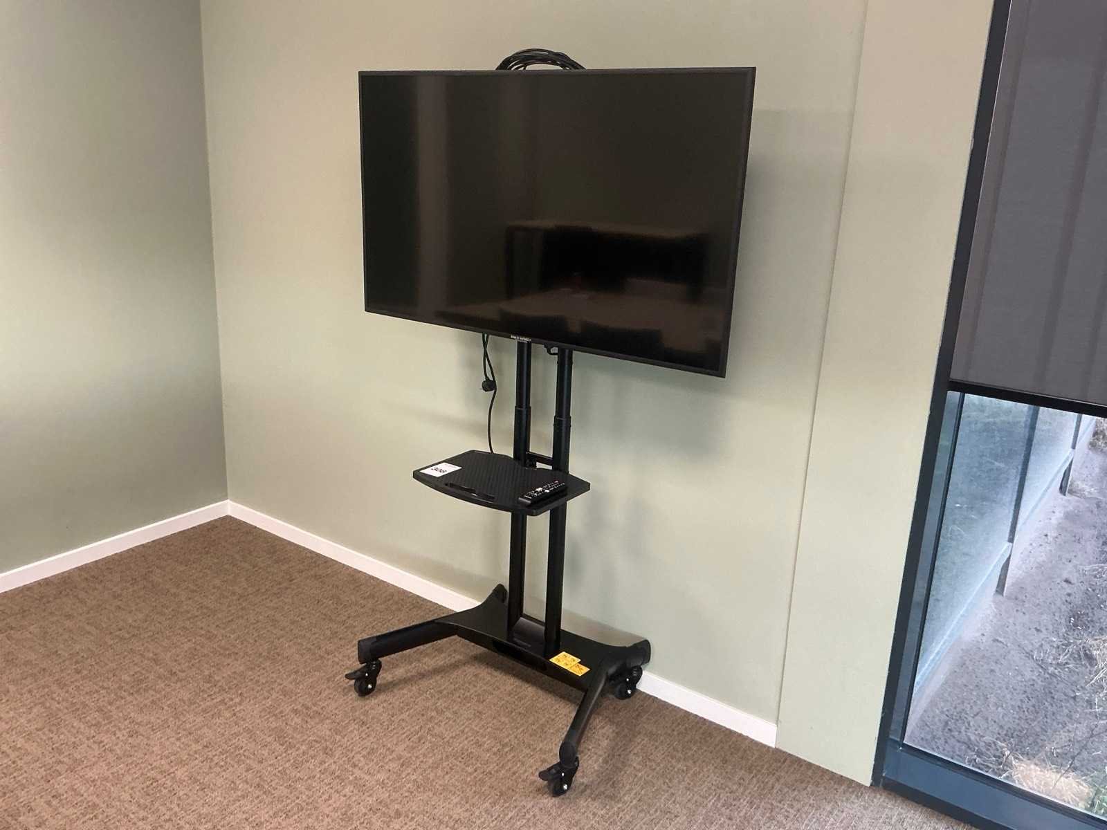 Inclusief Neomounts verrijdbare standaard. Desktop PC niet inbegrepen. Merk: Samsung Model: UE55NU7100W Breedte: 130cm Hoogte: 185cm