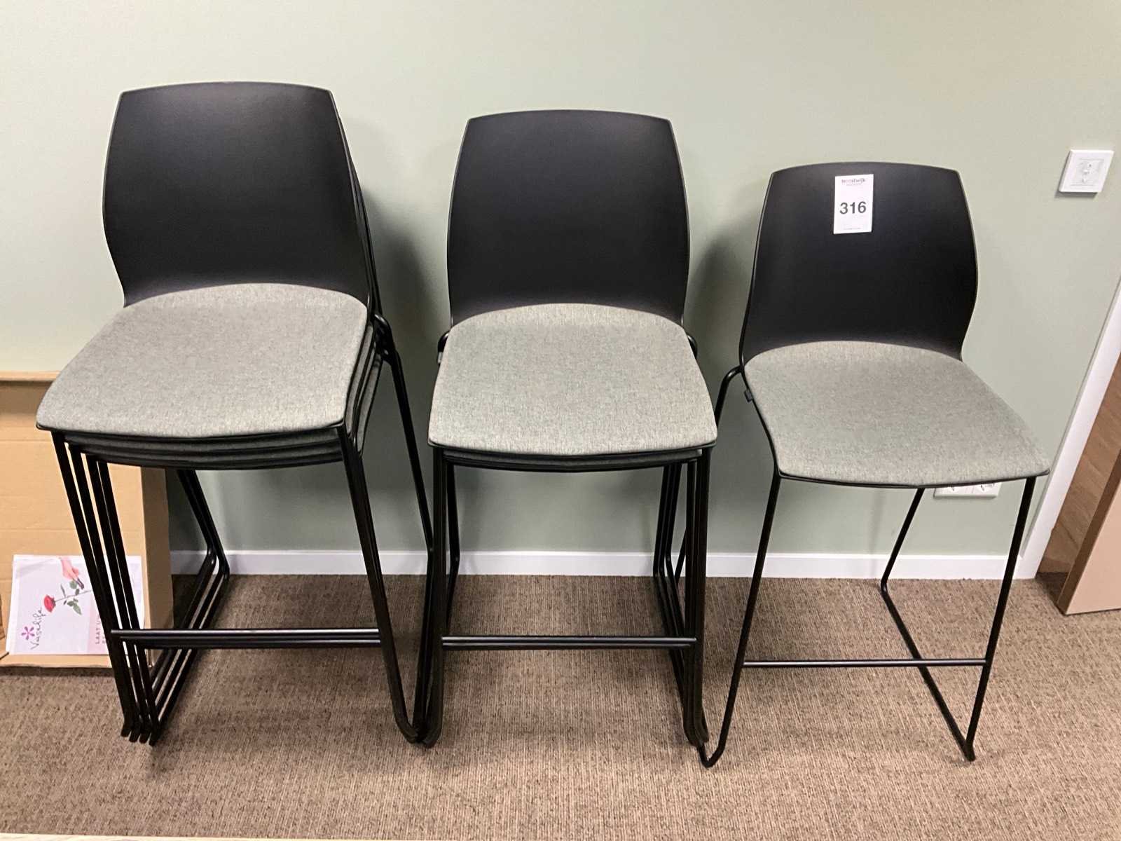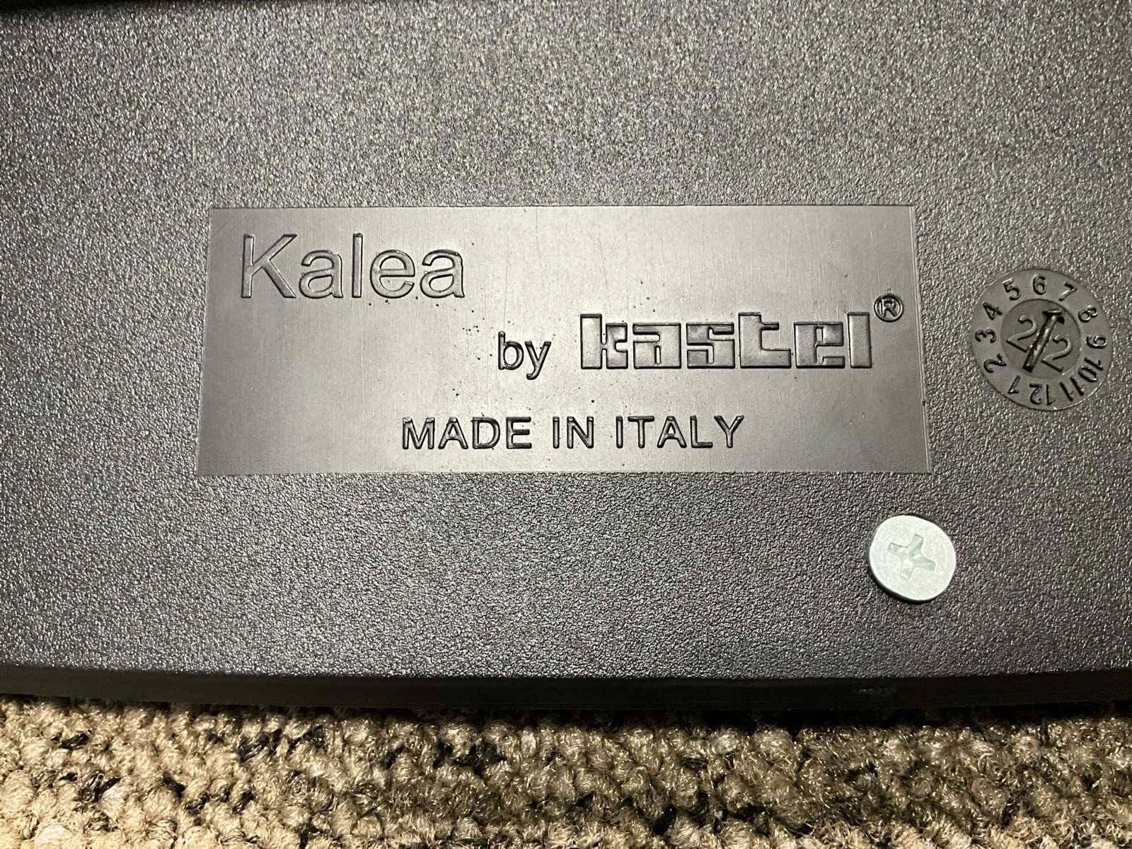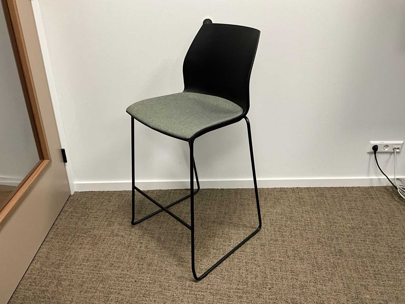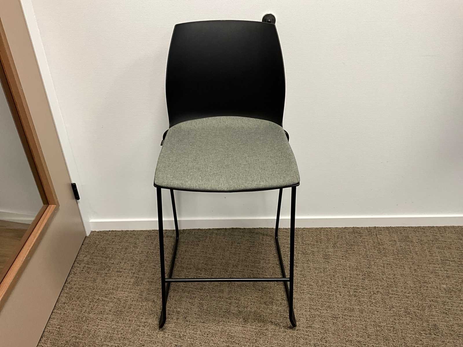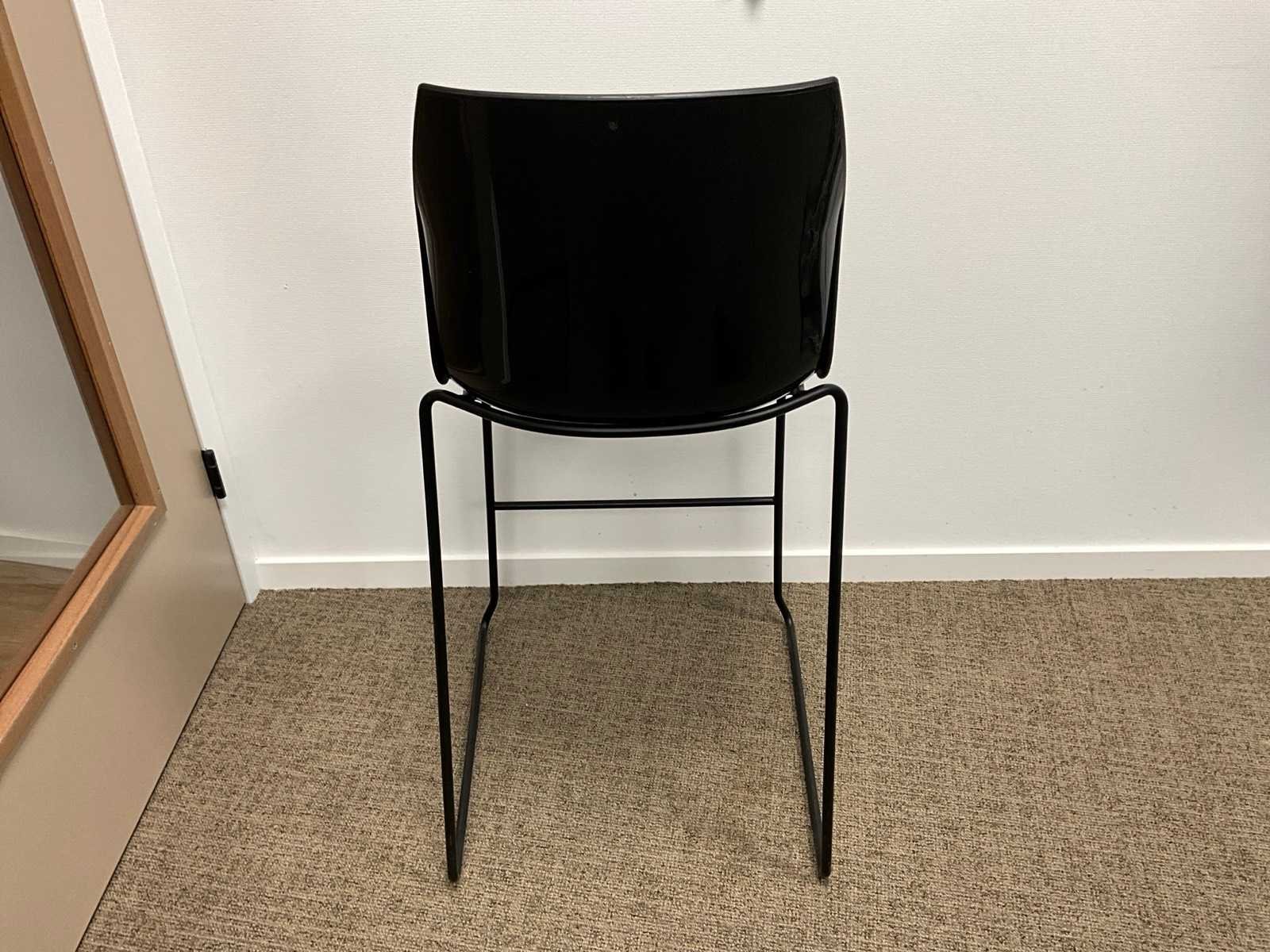 Stapelbaar; voorzien van kunststof gestoffeerd zitgedeelte en metalen frame Merk: Kastel Model: Kalea Lengte: 54cm Breedte: 44cm Hoogte: 107cm Zithoogte: 72