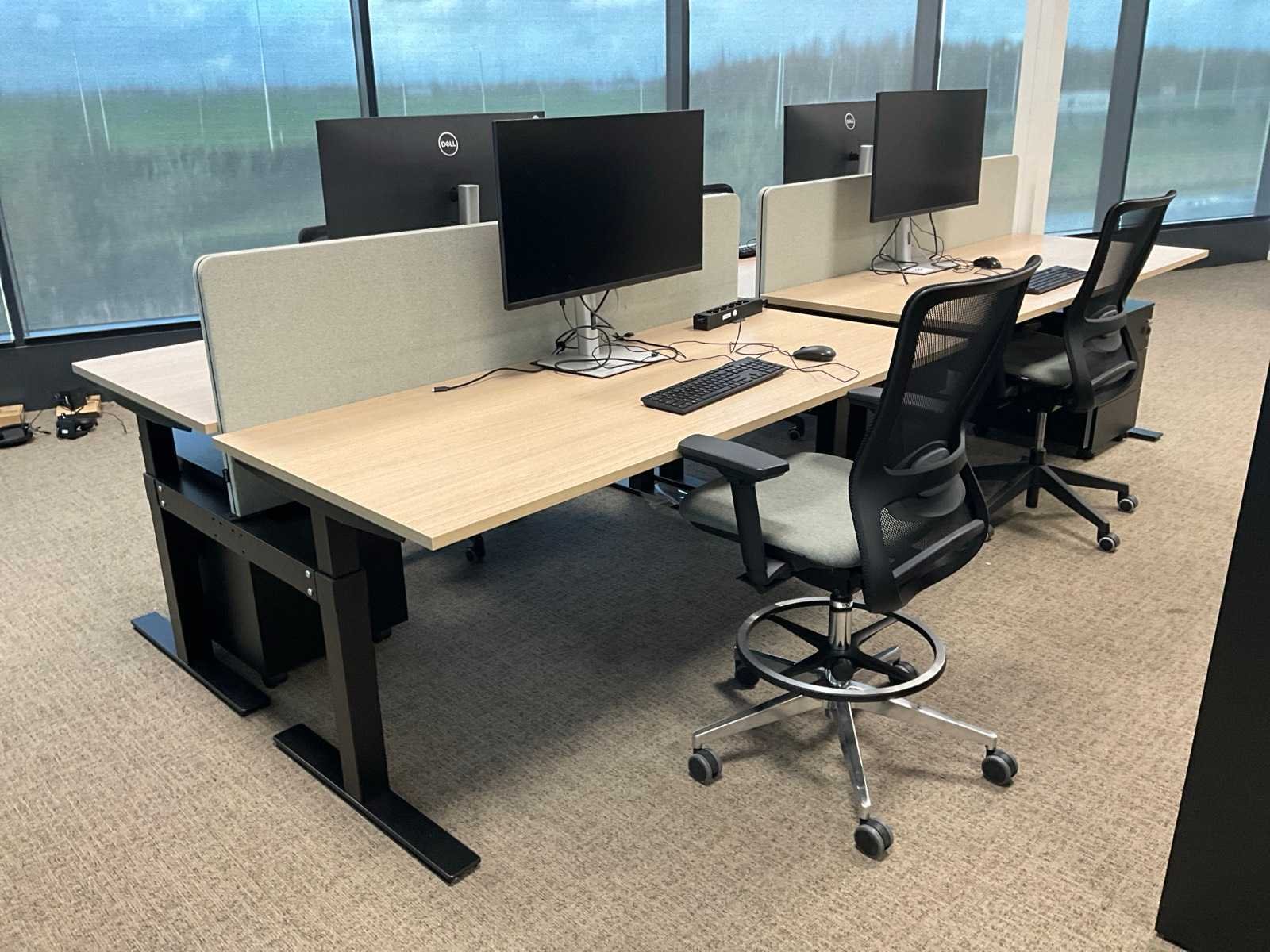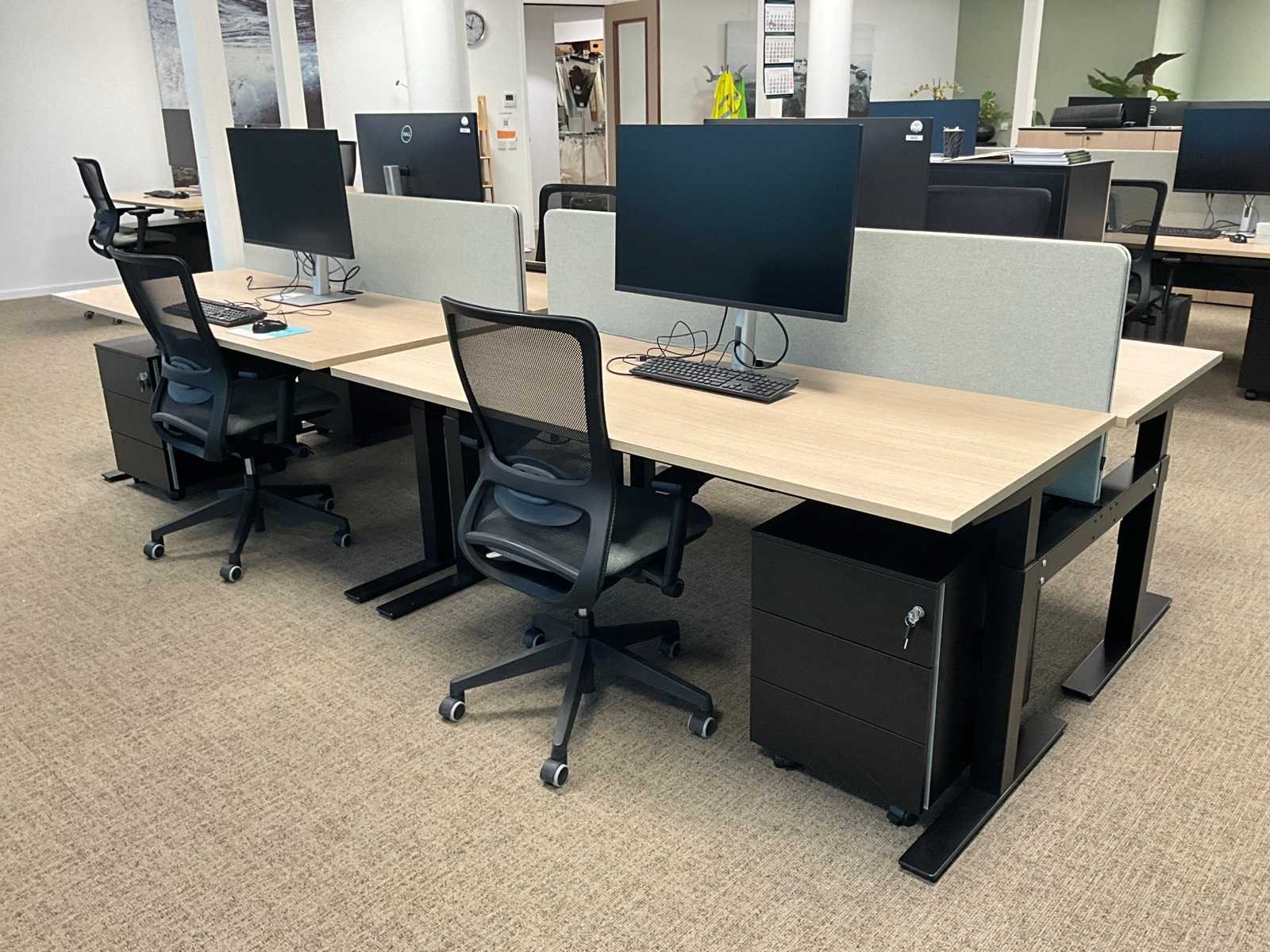 Afmeting blad: 180x80 cm. Inclusief 4x Luxy Pop bureaustoelen, 2x Bralco akoestische scheidingswand 58x175cm en 3x Bralco houten ladeblok H58xB42xD56cm. Monitoren en toebehoren zijn niet inbegrepen. Merk: Bralco Lengte: 165cm Breedte: 180cm