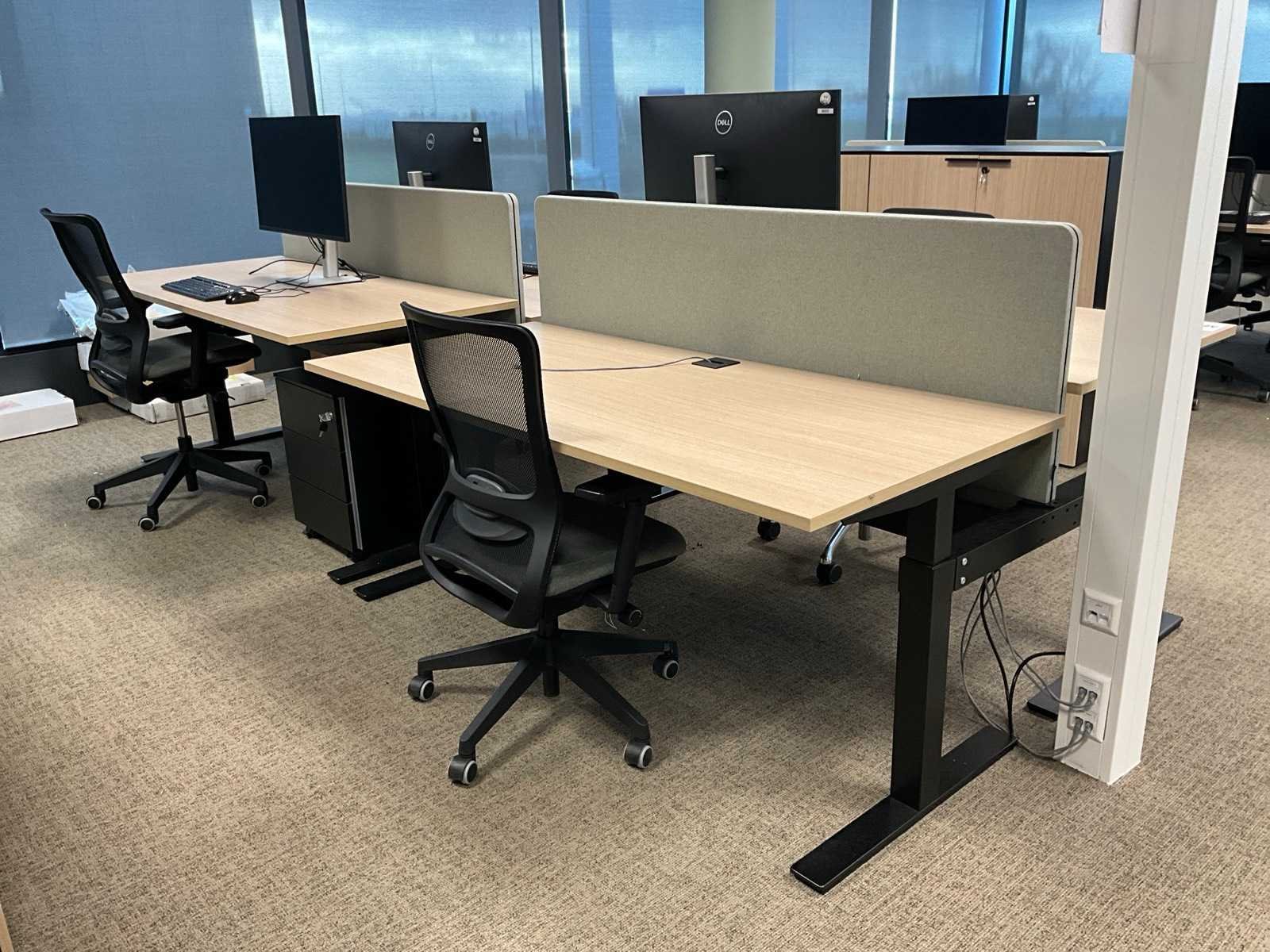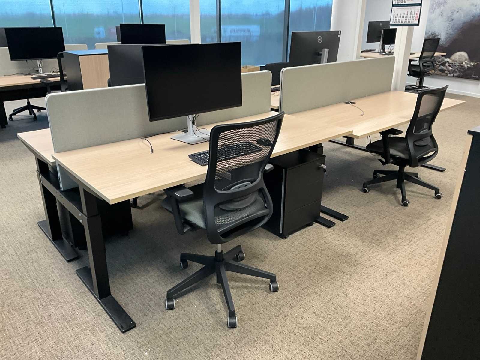 Afmeting blad: 180x80 cm. Inclusief 3x Luxy Pop bureaustoel, 1x Löffler bureaustoel, 2x Bralco akoestische scheidingswand 58x175cm en 2x Bralco houten ladeblok H58xB42xD56cm. Monitoren en randapparatuur zijn niet inbegrepen. Merk: Bralco Zit-sta: true Elektrisch verstelbaar: true Lengte: 165cm Breedte: 180cm