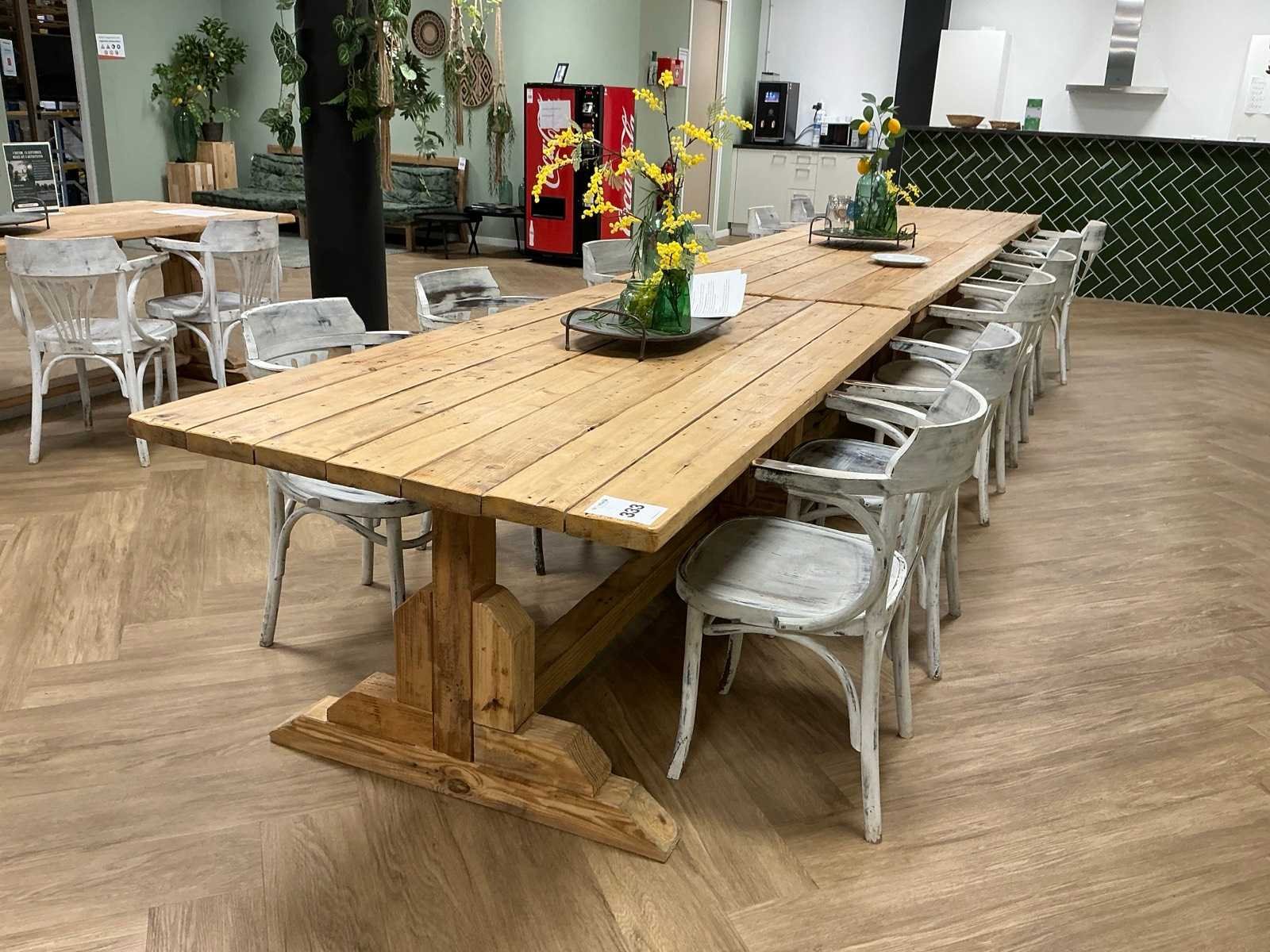 Kavel bestaat uit 3x tafel, 4x Satelliet stoel per tafel. Kleur: Bryinn Lengte: 193cm Breedte: 98cm Hoogte: 77cm Materiaal: Hout
