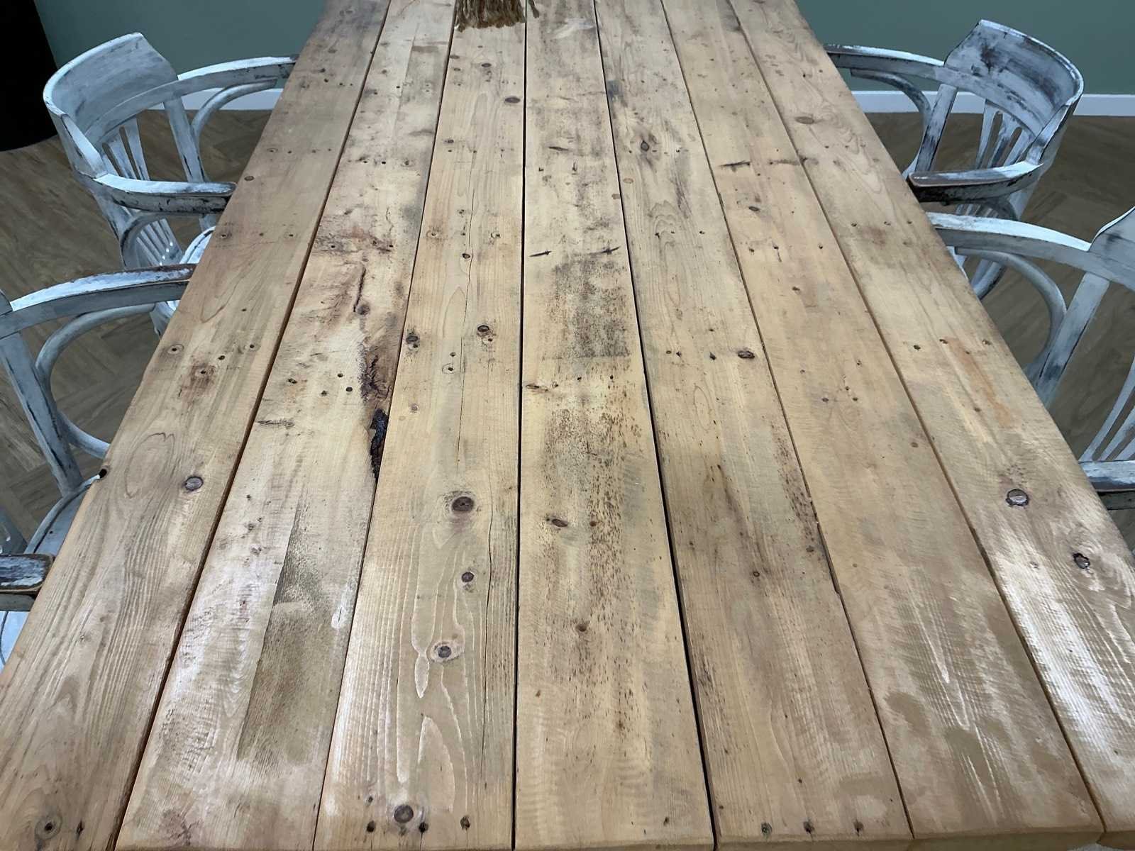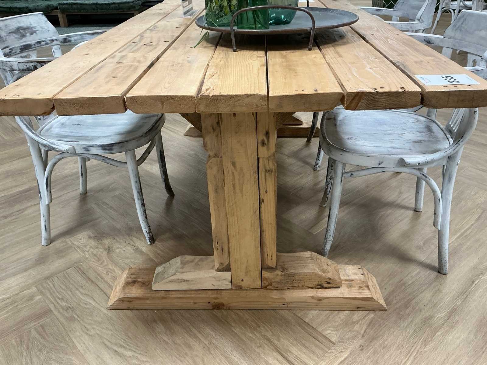 Kavel bestaat uit 2x tafel, 7x Satelliet stoel. Kleur: Bruin Lengte: 193cm Breedte: 98cm Hoogte: 77cm Materiaal: Hout