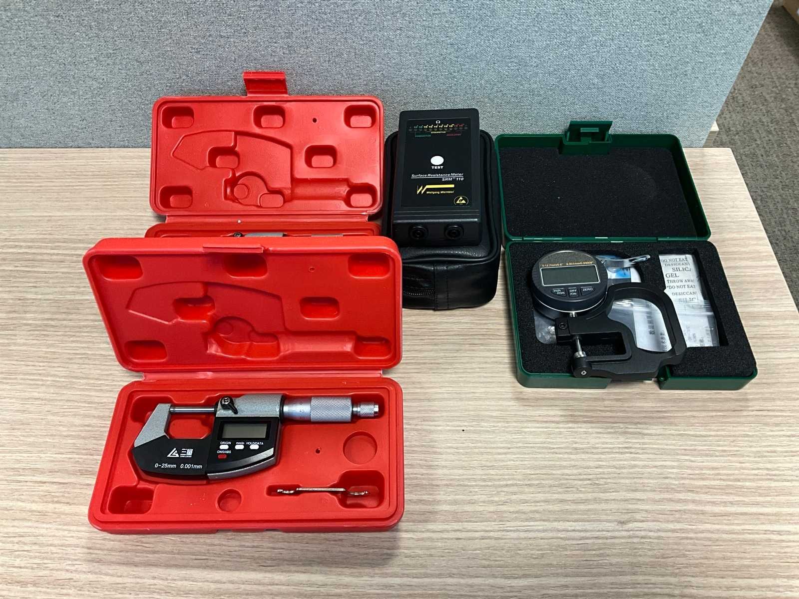 Bestaande uit: diktemeter, SRM 110 weerstandmeter en 2x San Liang micrometer