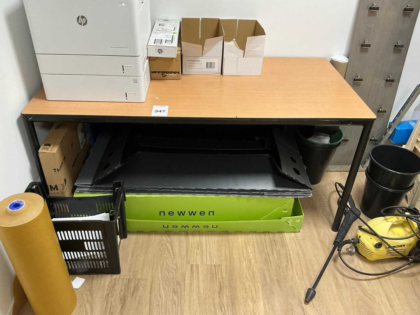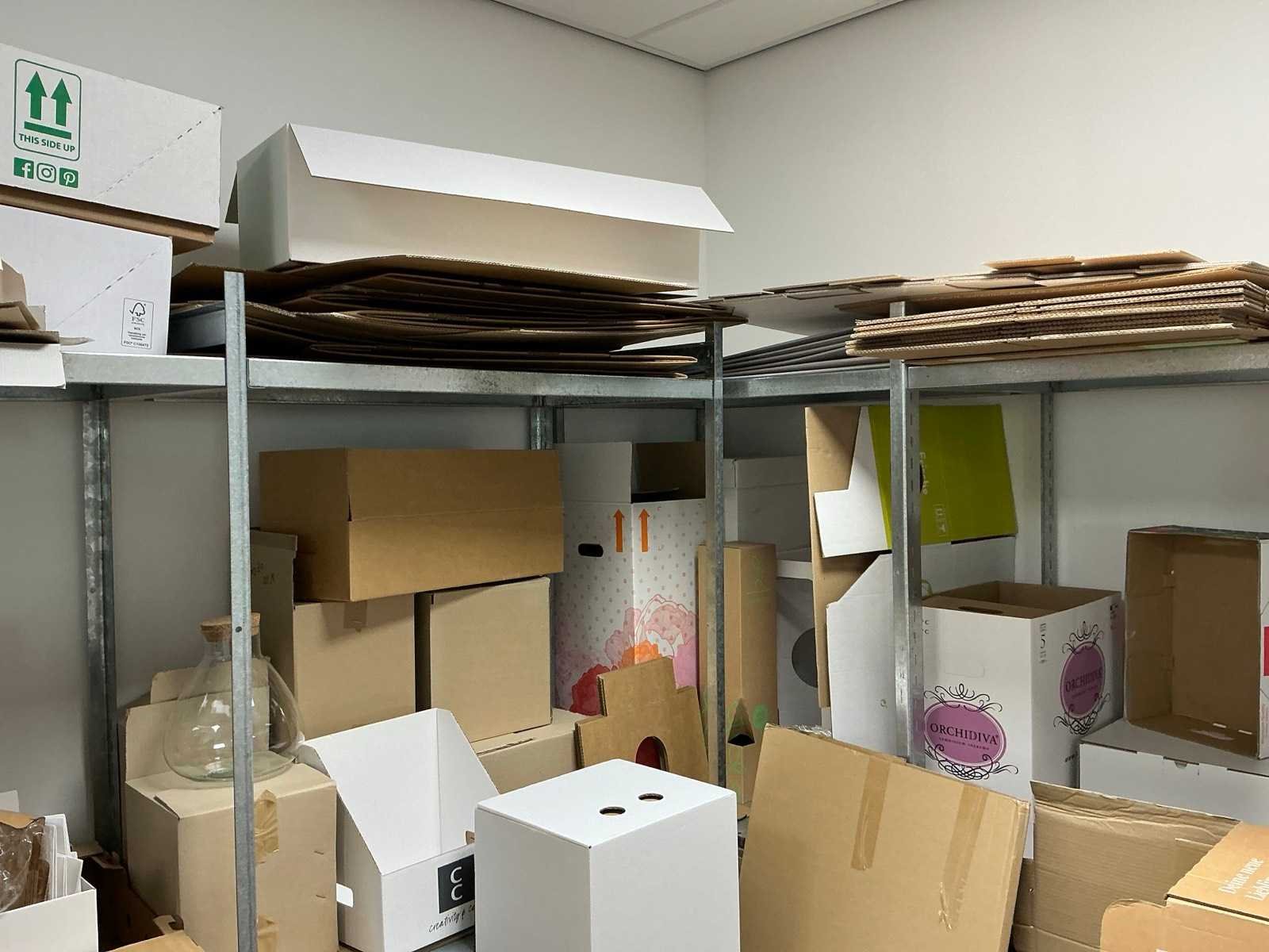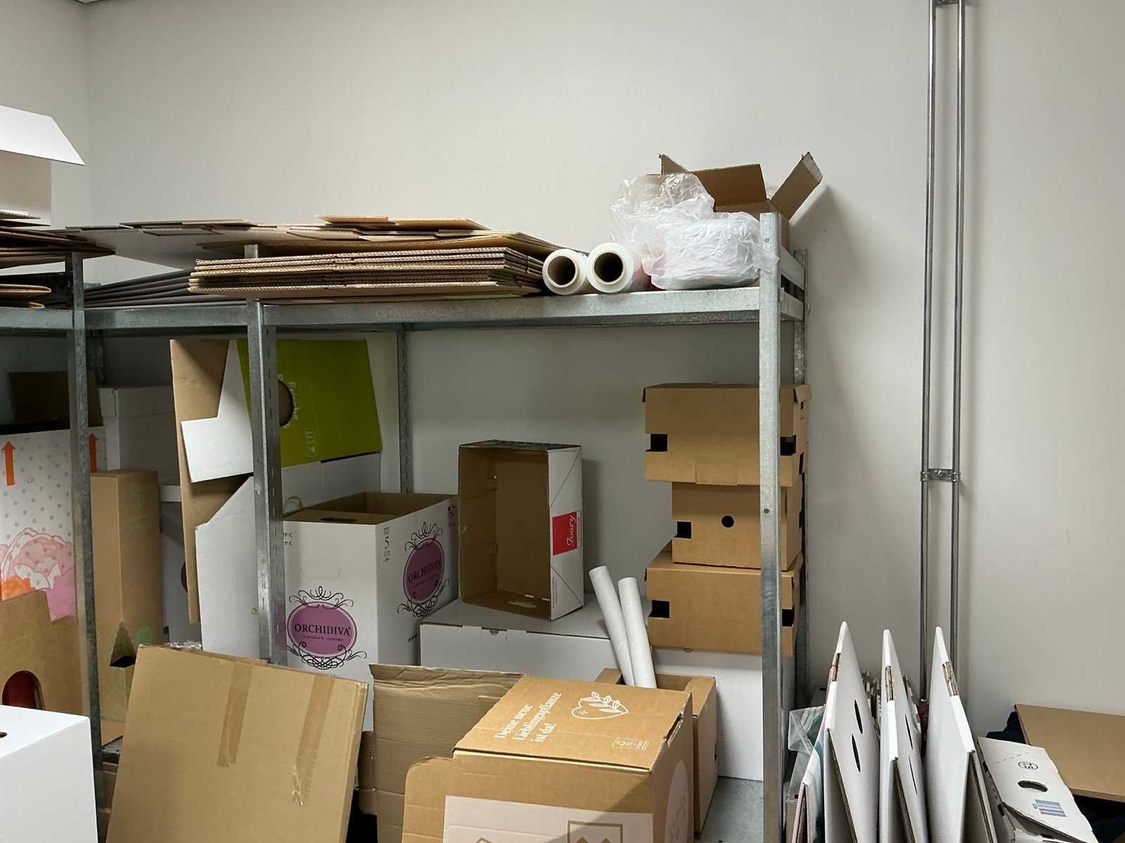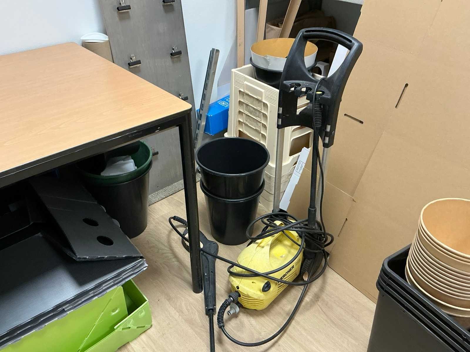 HP printer niet inbegrepen Bestaande uit: Inhoud van berging 1e: 6 lengtes magazijnstelling (metaal) 2e: Diverse verpakkingen/monsters 3e: Tafel 160x80cm 4e: Hogedruk reiniger