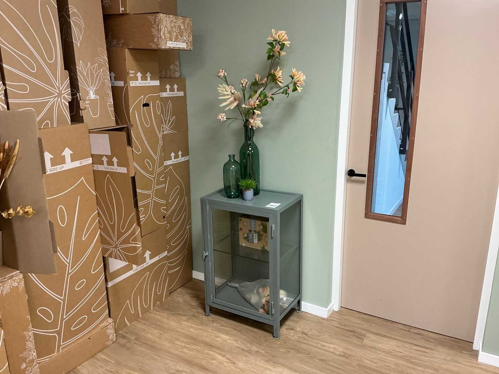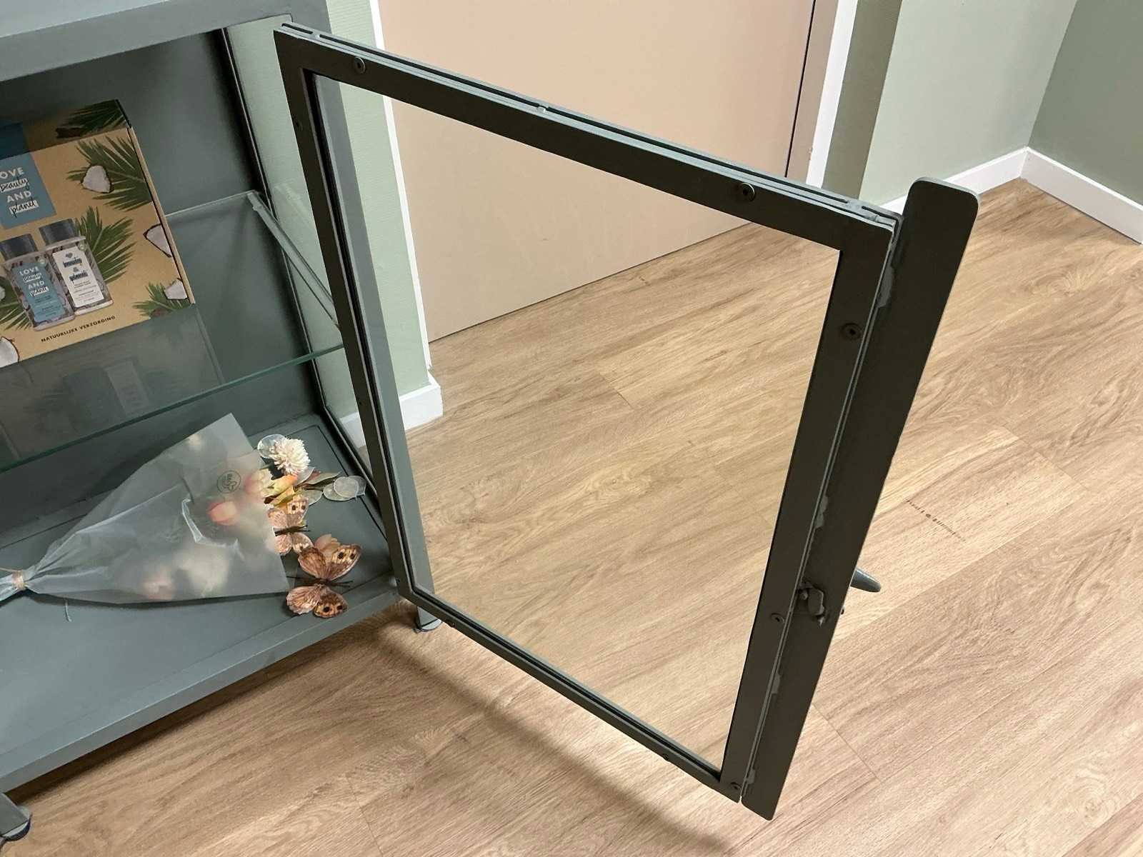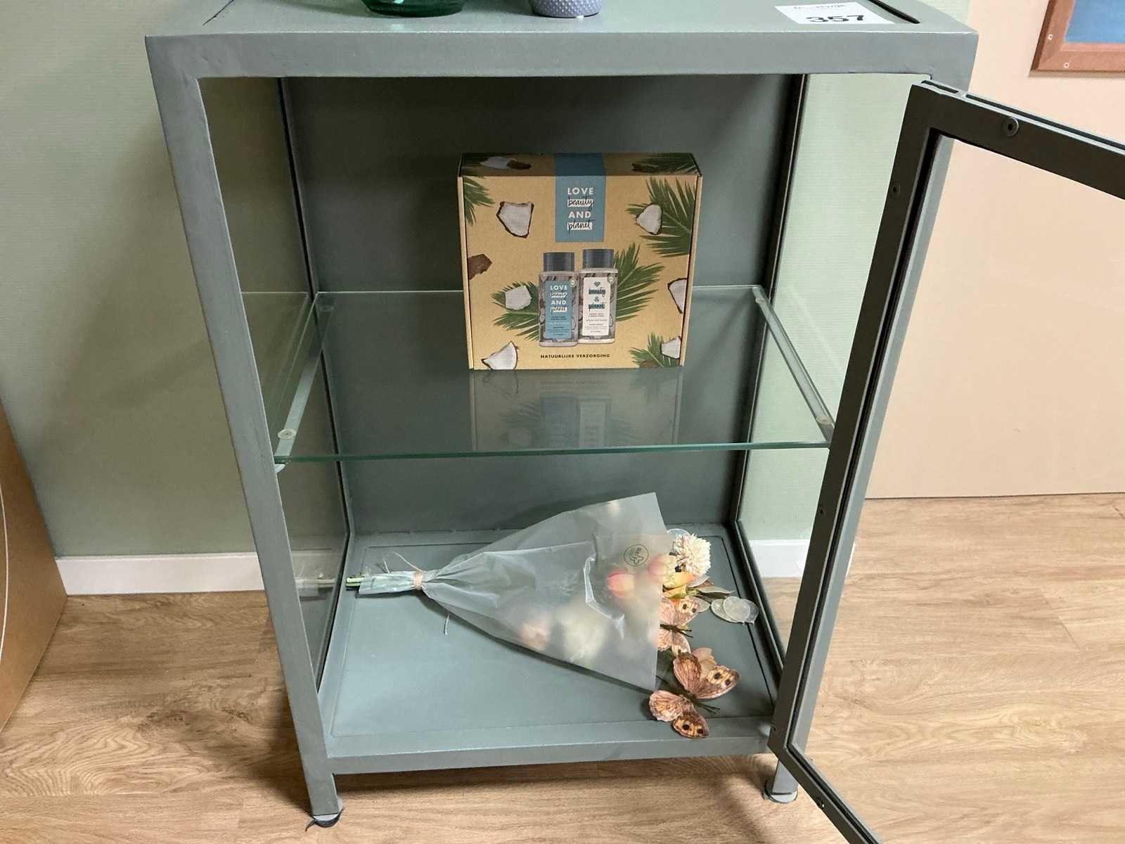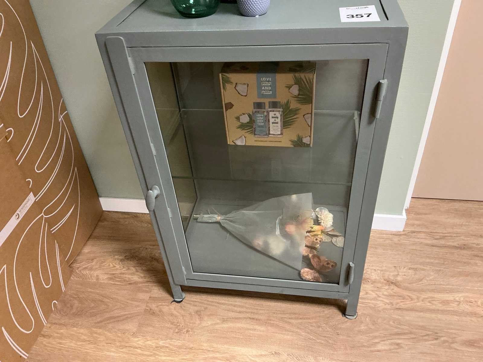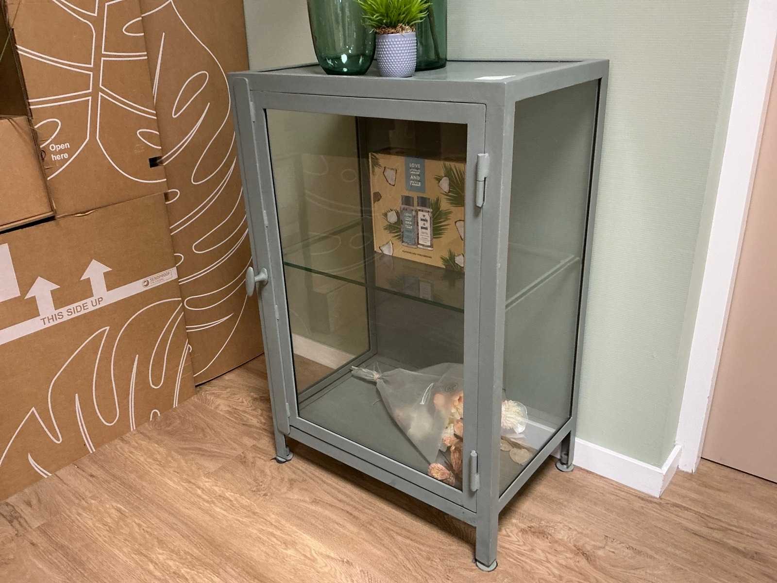 Inclusief decoratie op/in Kleur: Grijs Lengte: 60cm Breedte: 40cm Hoogte: 91cm Materiaal: Metaal/glas