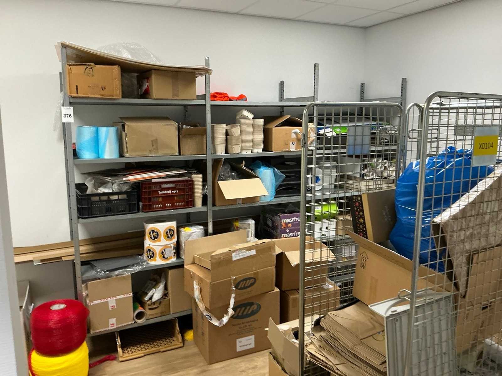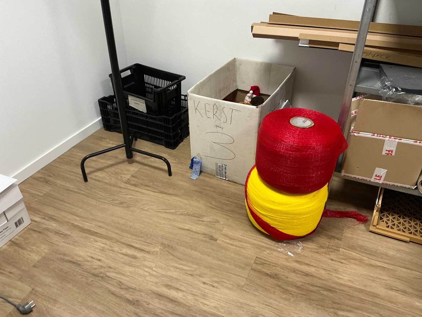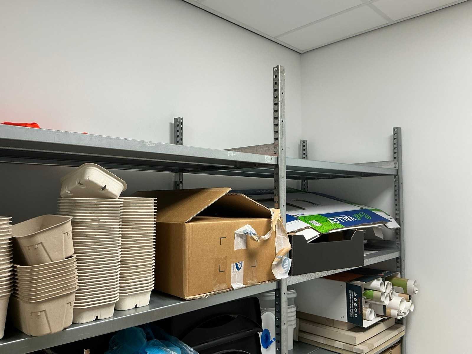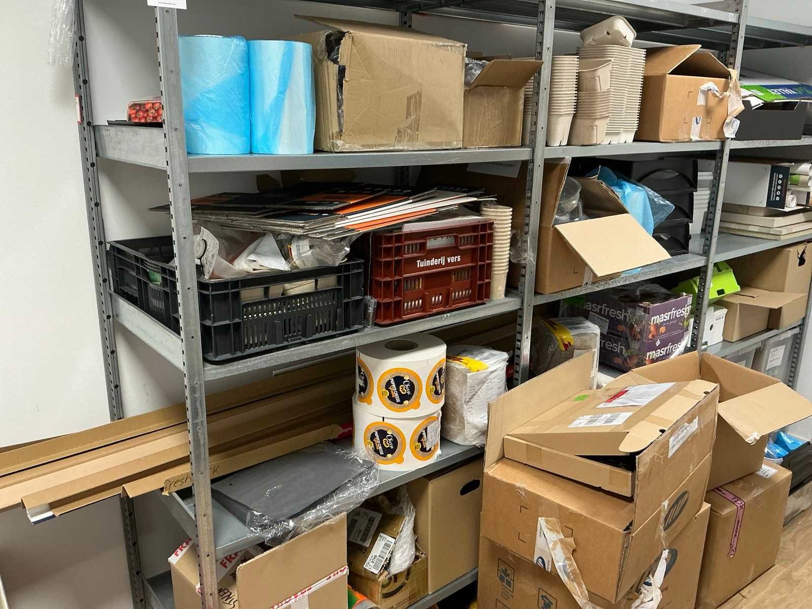 Bestaande uit een Schaffenburg archiefkast, 3 lengtes magazijnstelling, verpakkingsmateriaal, decoratie, en toebehoren. HP printer niet inbegrepen