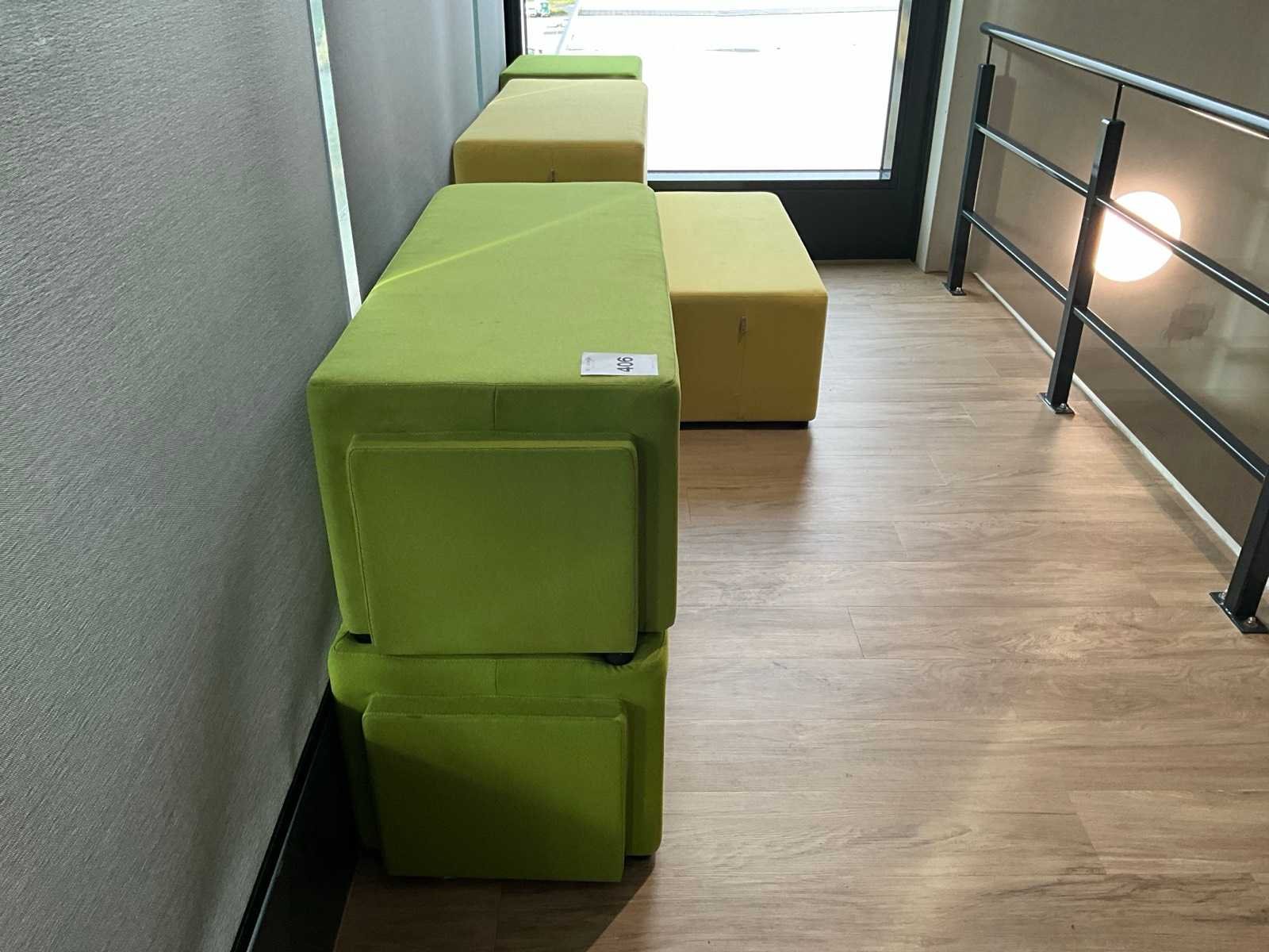 2x 50x50cm en 5x 50x120cm Merk: Ersa Lengte: 120cm Breedte: 50cm Hoogte: 44cm Materiaal: Gestoffeerd