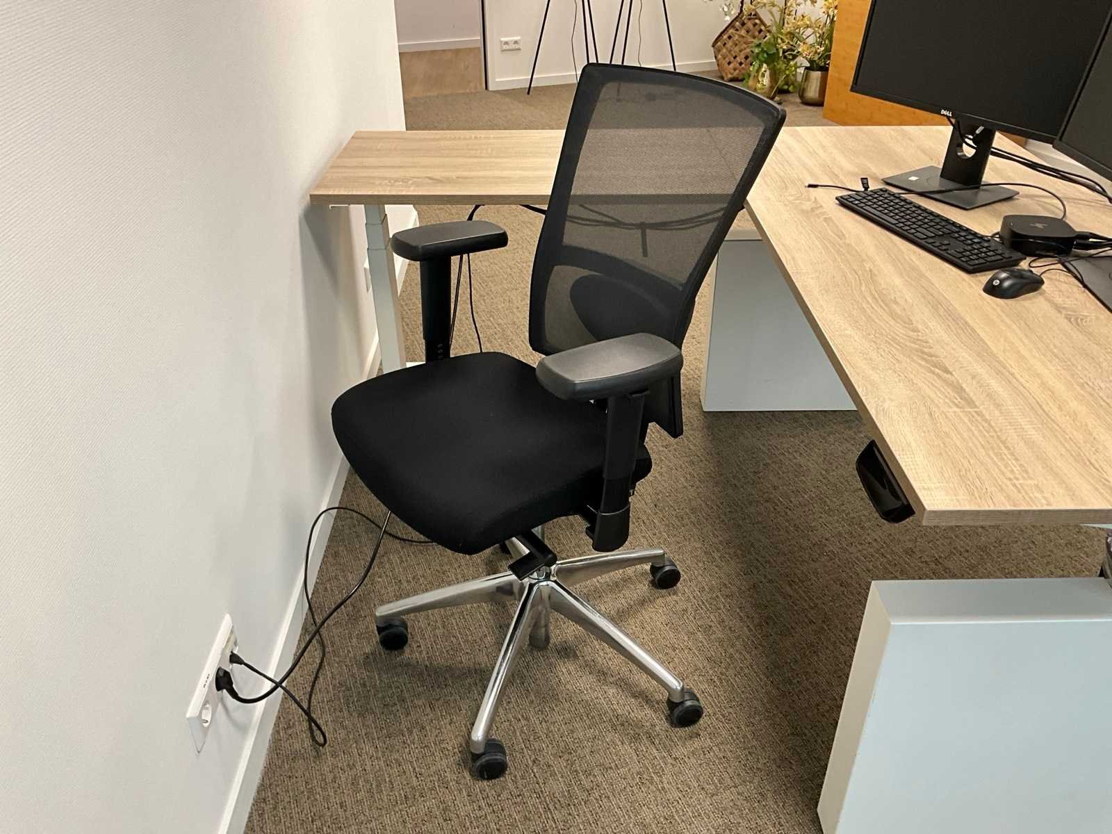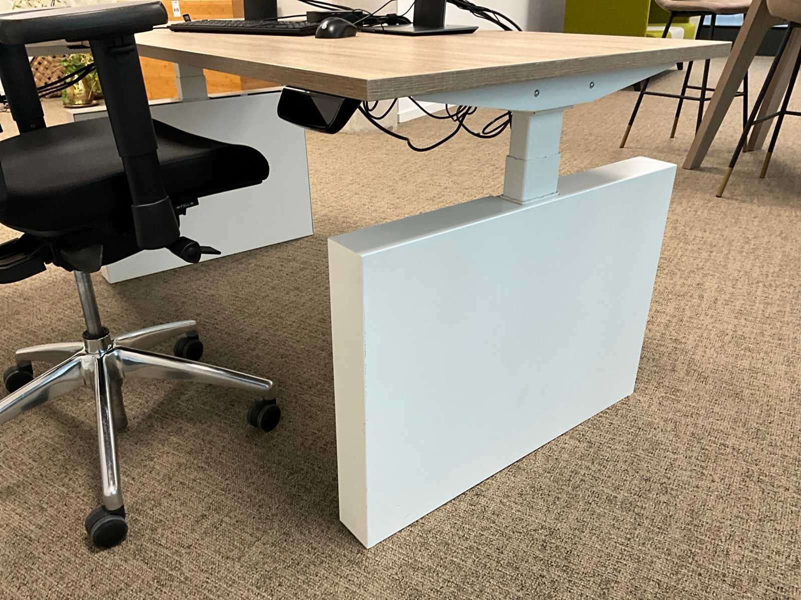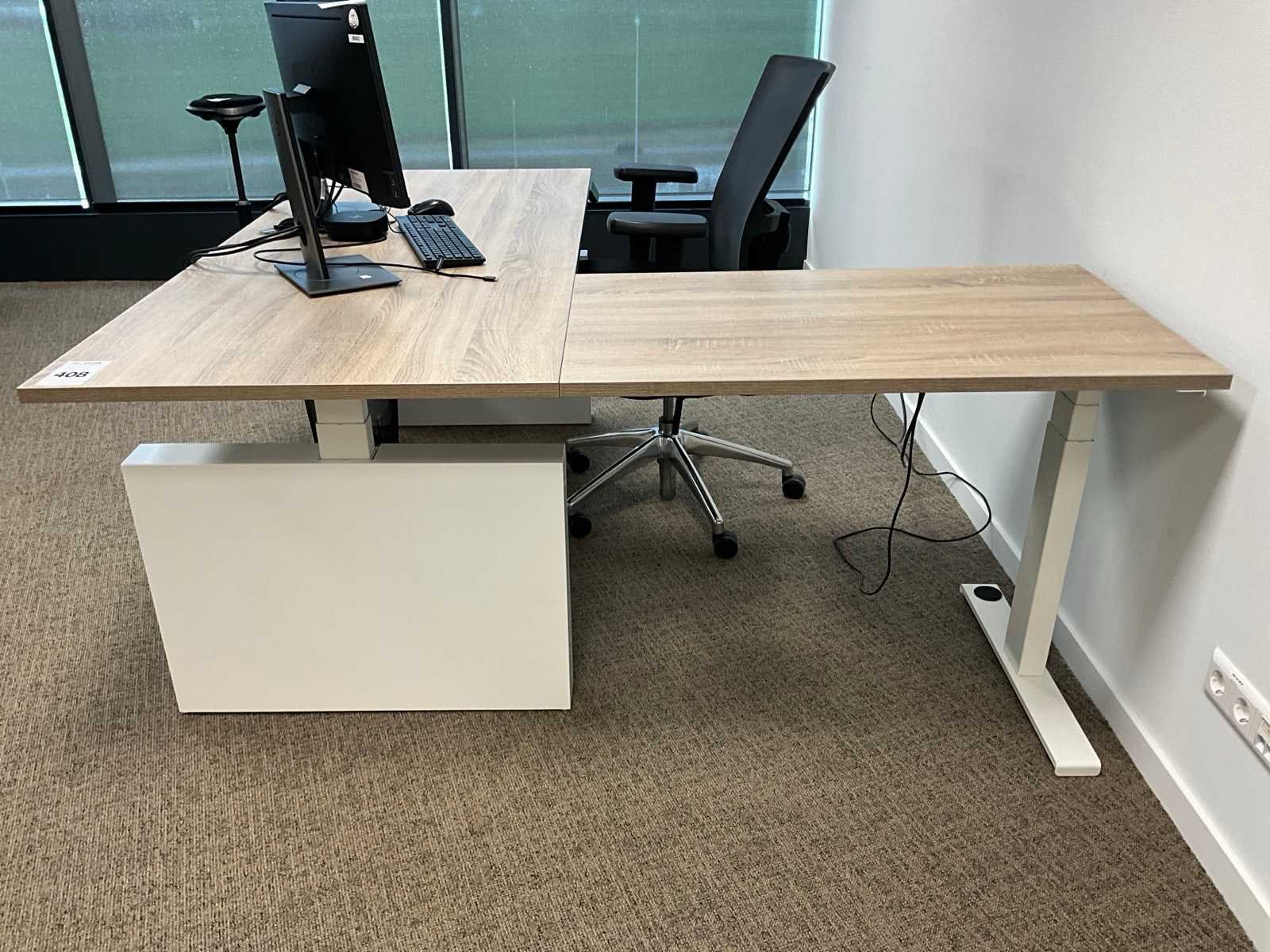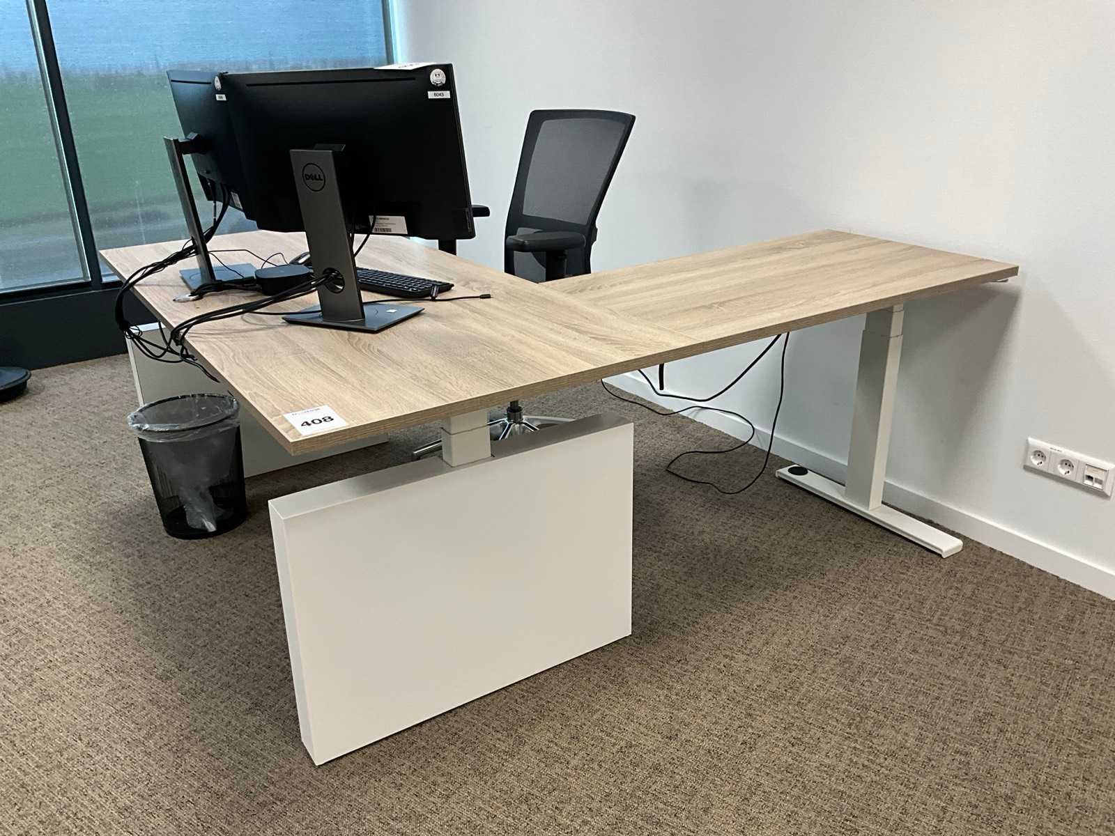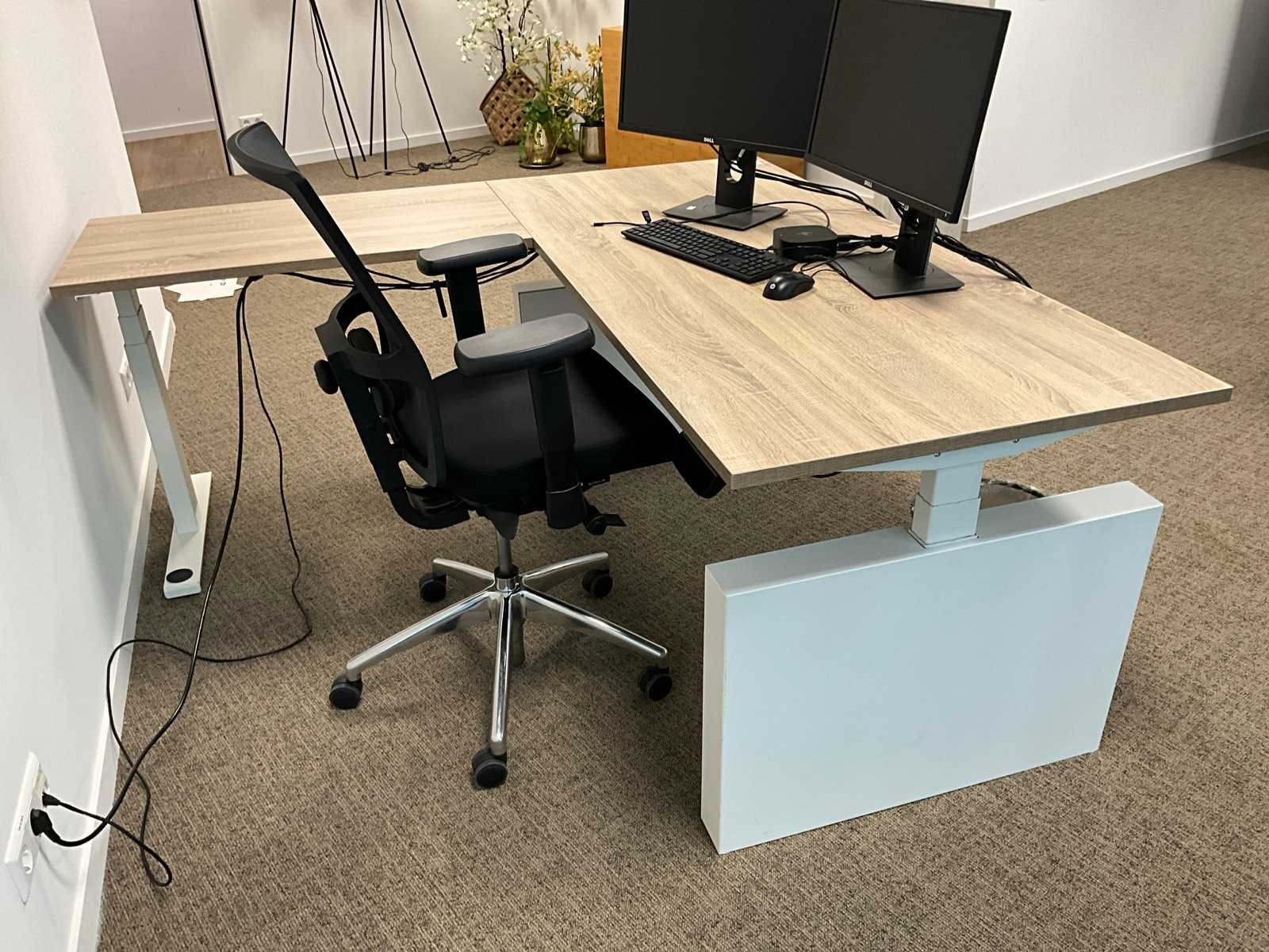 Elektrisch verstelbaar; Voorzien van houten blad en metalen frame; inclusief inclusief Schaffenburg bureaustoel; zonder monitor/randapparatuur Merk: Schaffenburg Lengte: 180cm Breedte: 180cm