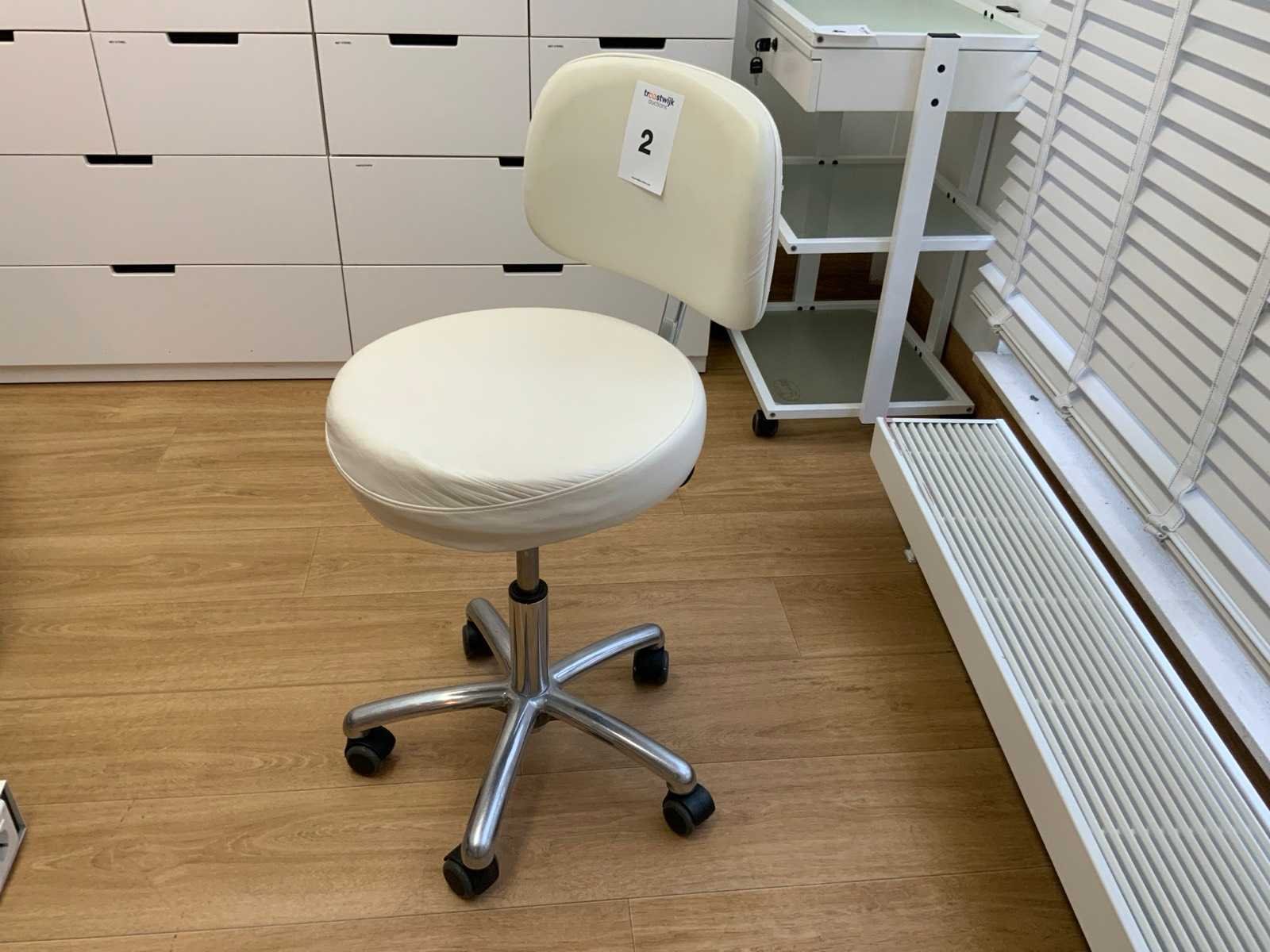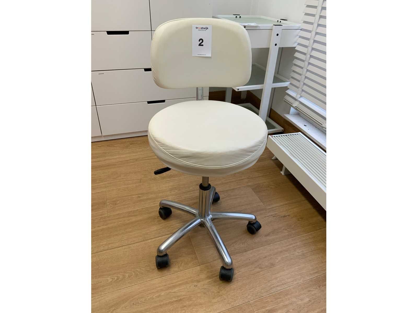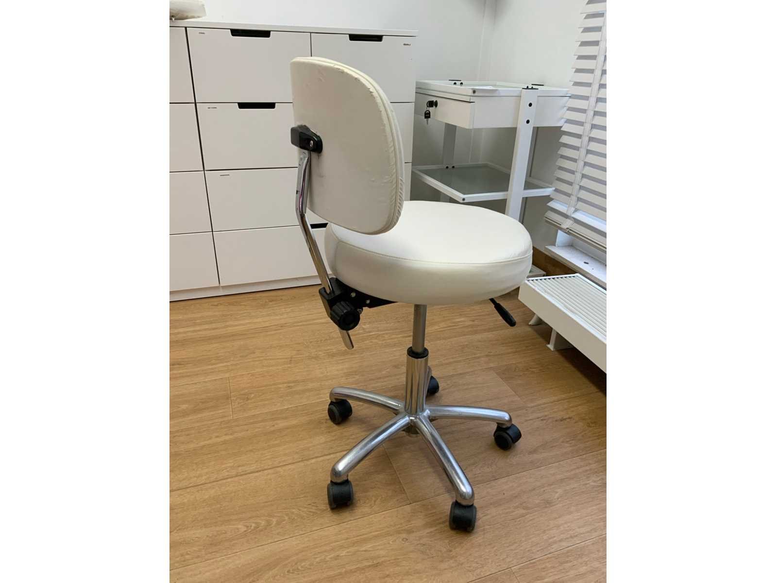 Verrijdbare behandel kruk voorzien van in hoogte verstelbare rugleuning Lengte: 40cm Breedte: 47cm
