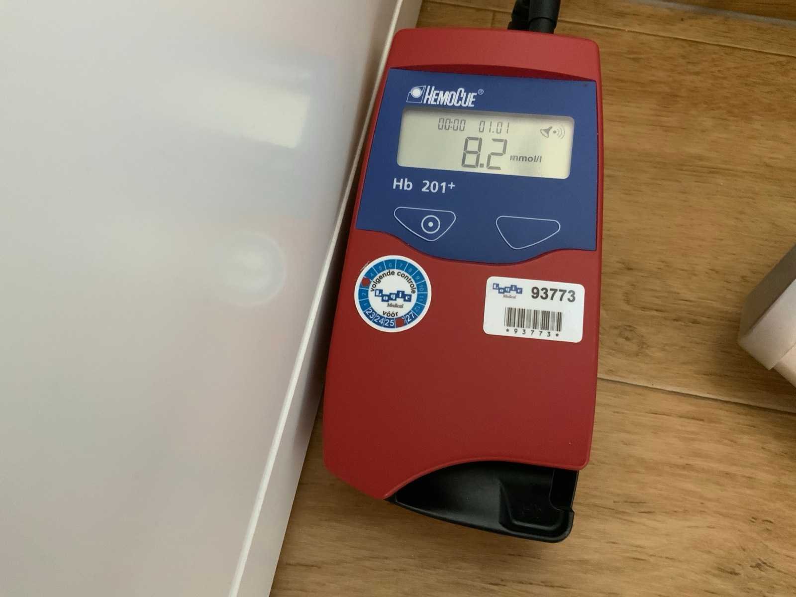 Meetapparaat t.b.v. snelle en nauwkeurige bepaling van het hemoglobinegehalte (Hb) in het bloed. Voorzien van voedingskabel Merk: Hemocue Type: Hb 201+ Aansluiting: 230V Totale afmeting L: 85mm Totale afmeting Breedte: 240mm Totale afmeting Hoogte: 45mm