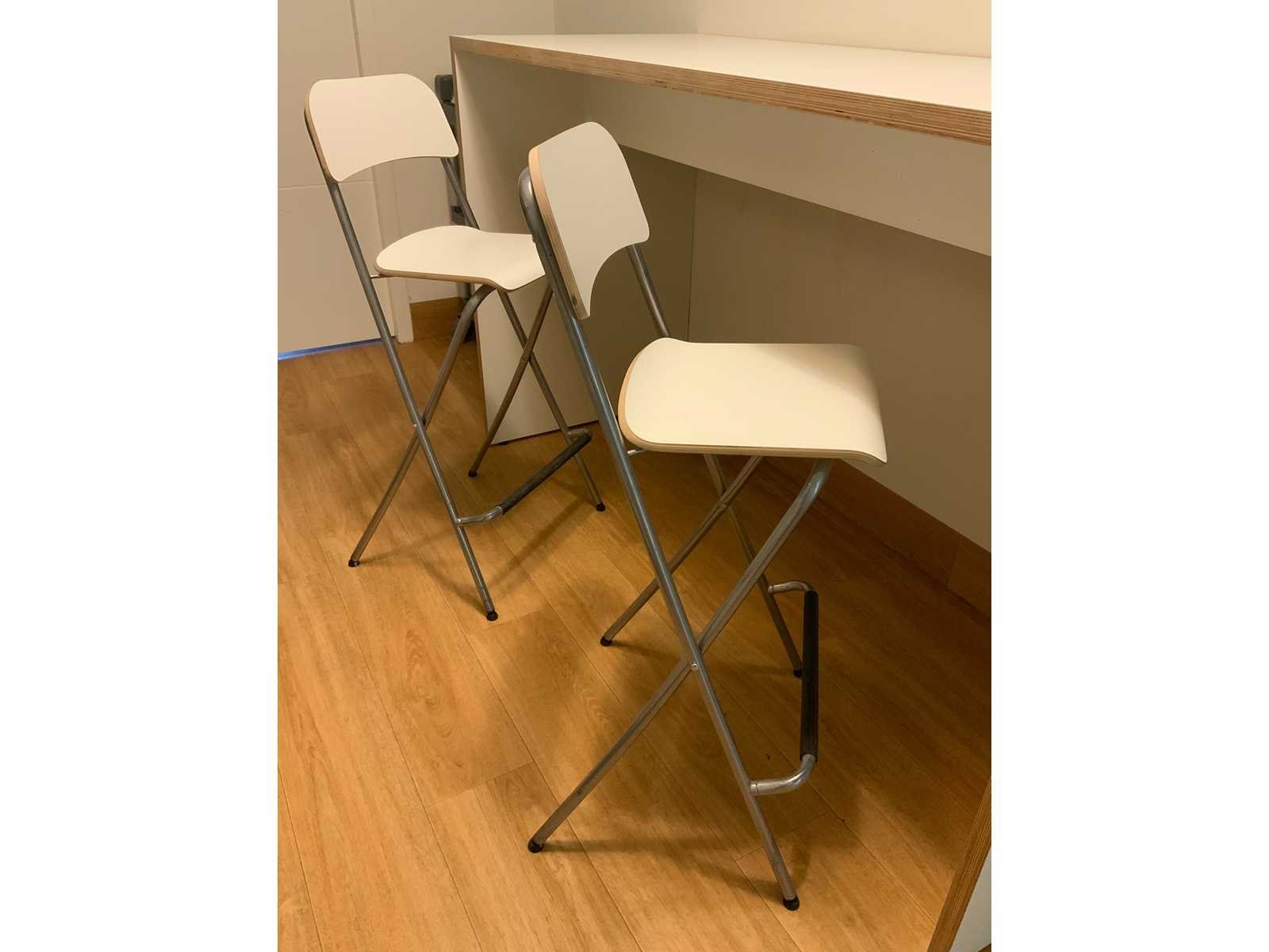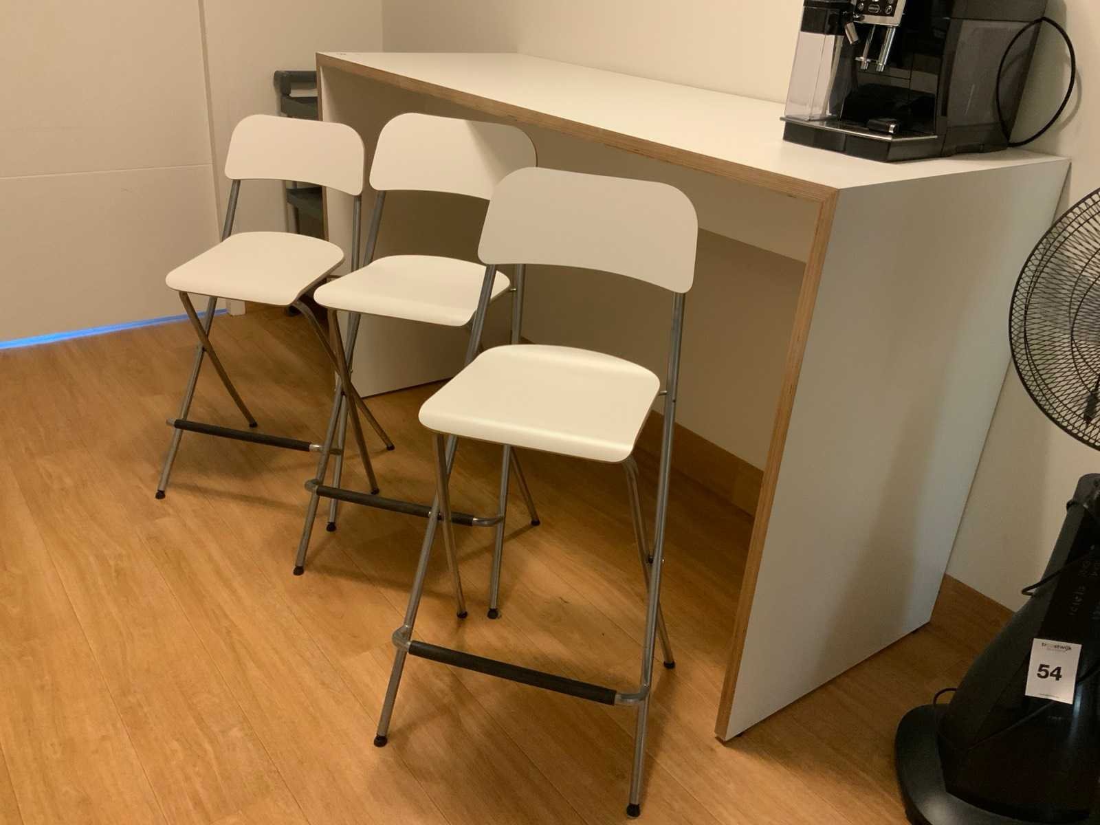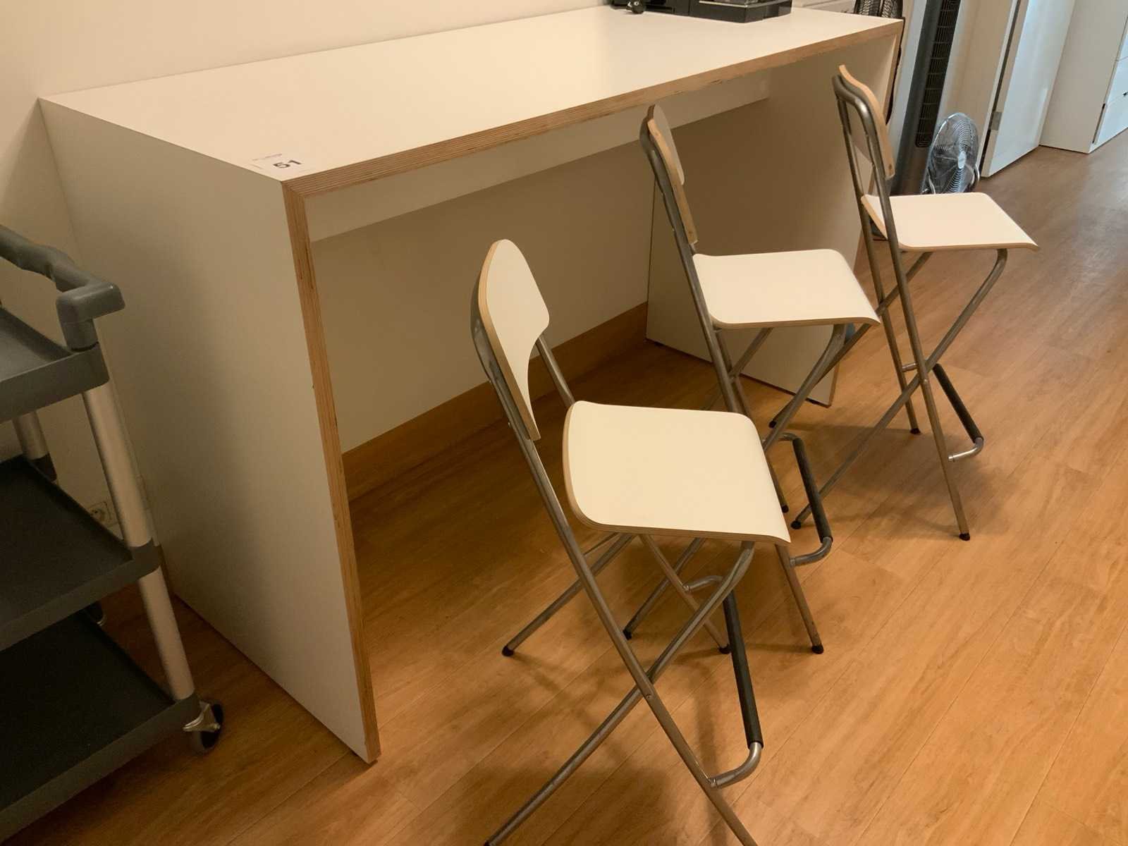 Bestaande uit tafel en 3 opklapbare barkrukken Lengte: 180cm Breedte: 70cm Hoogte: 110cm
