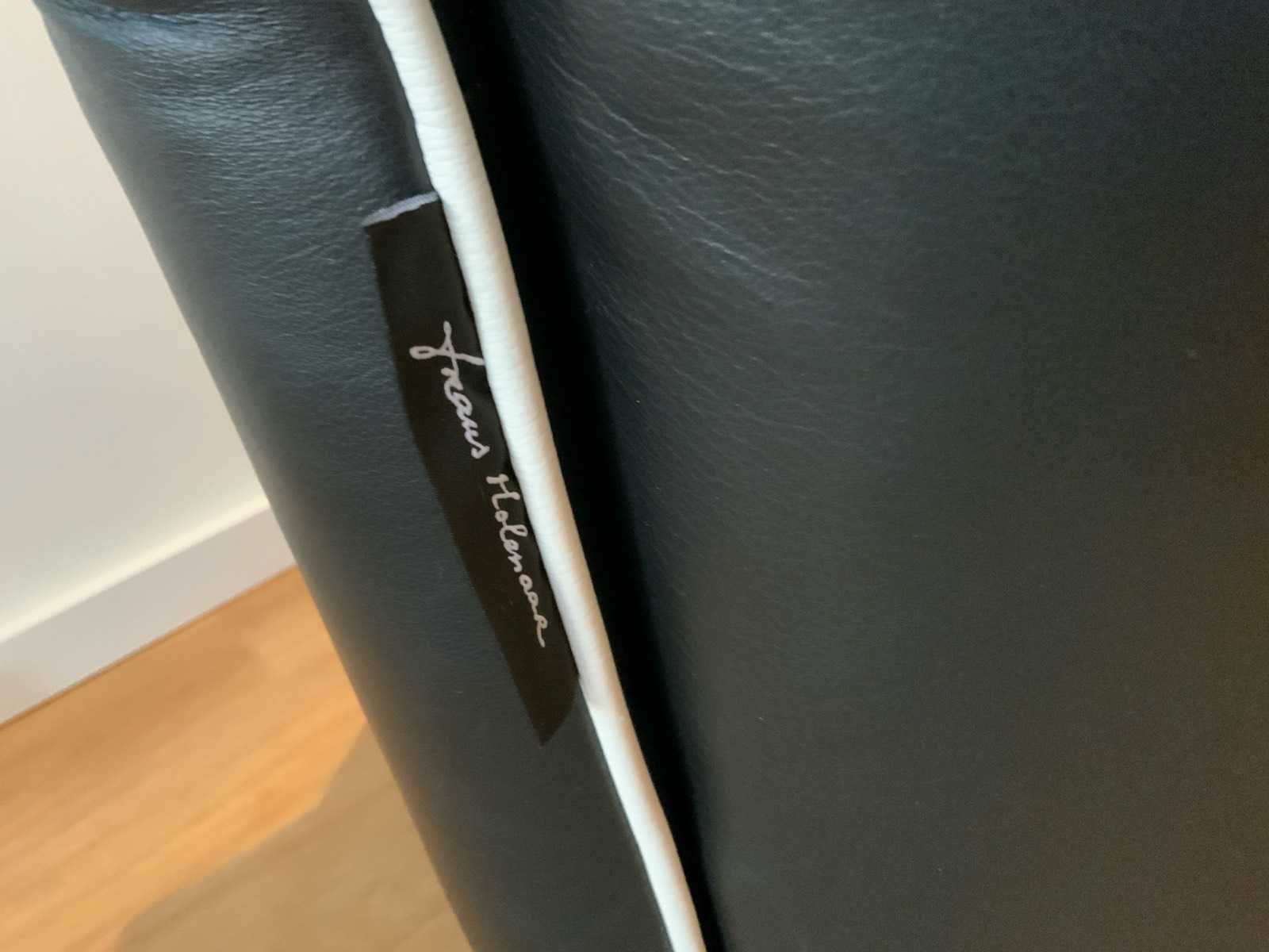 Relax fauteuil voorzien van achterover klapbare rugleuning, opblaasbare lendesteun d.m.v. pomp, omhoog klapbare voetensteun op kruisvoet Merk: Frans Molenaar Lengte: 78cm Breedte: 60cm Hoogte: 105cm Materiaal: Kunstleder