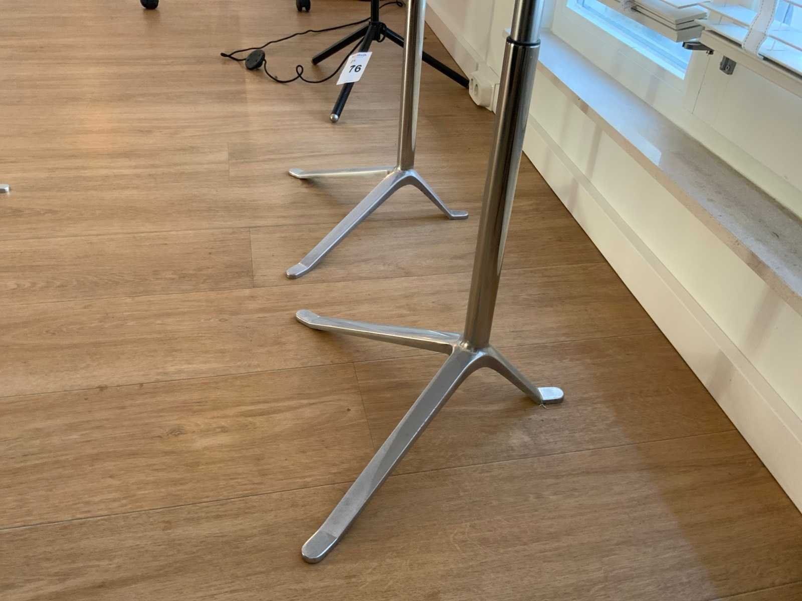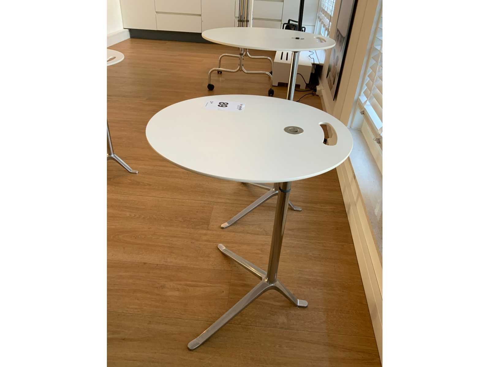 Ontwerp door Kasper Salto, wit laminaat blad met chromen onderstel, in hoogte verstelbaar d.m.v. drukknop in het blad Merk: Fritz Hansen Model: Little friend Lengte: 45cm