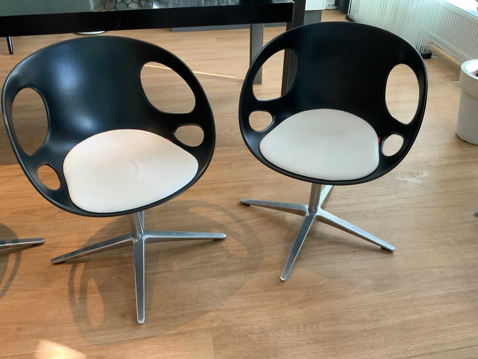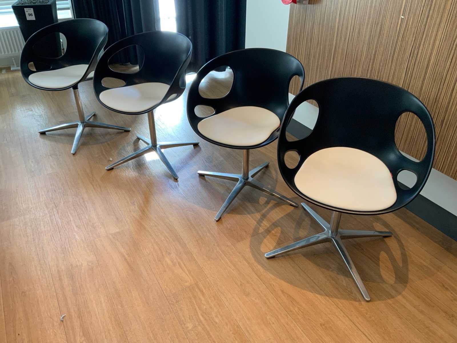 Design by Hiromichi Konno Draaibare kunststof schaal op vierpoots onderstel Merk: Fritz Hansen Model: Rin Lengte: 56cm Breedte: 45cm Hoogte: 76cm Zithoogte: 44cm