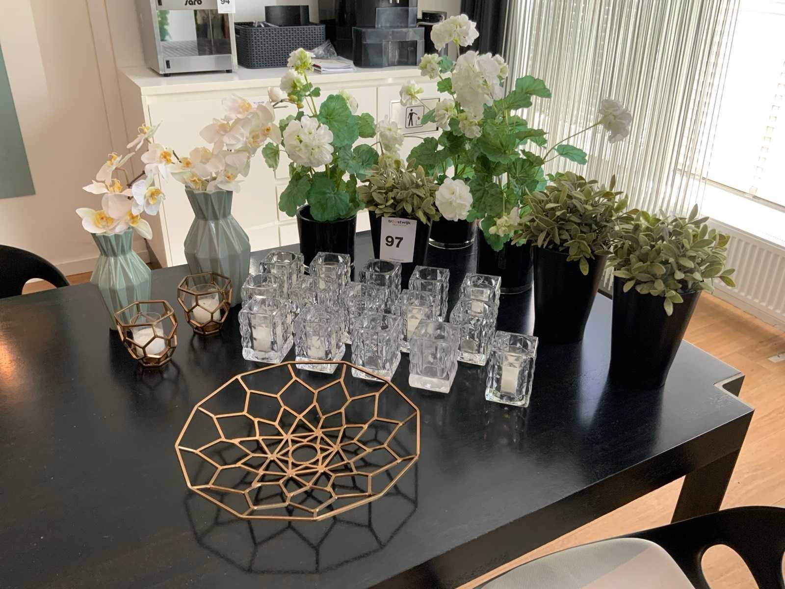 Bestaande uit kunstplanten, vazen, bloempotten, theelichthouders, fruitschaal