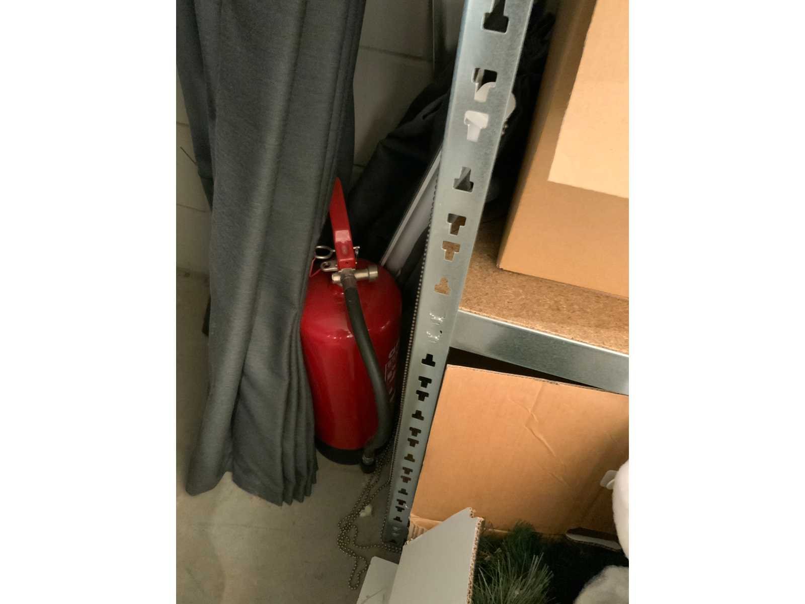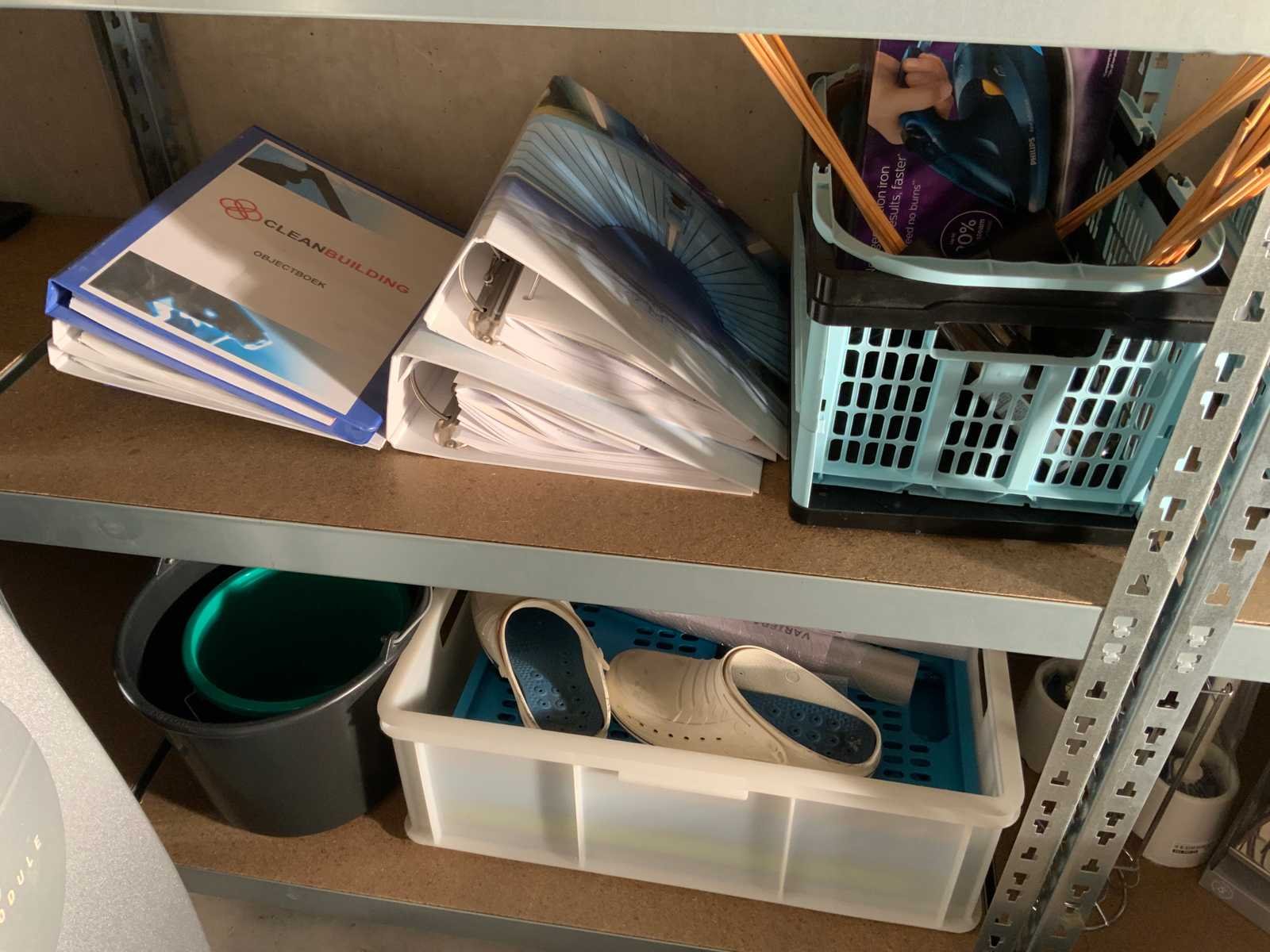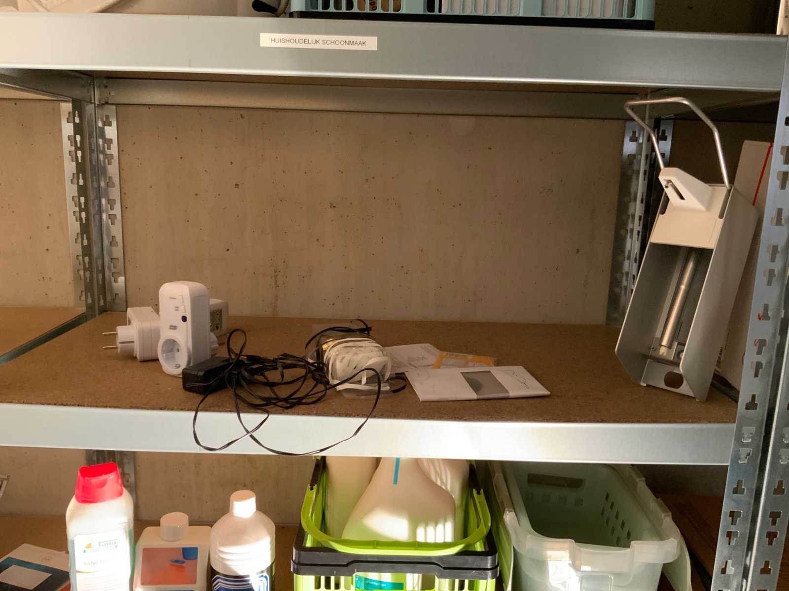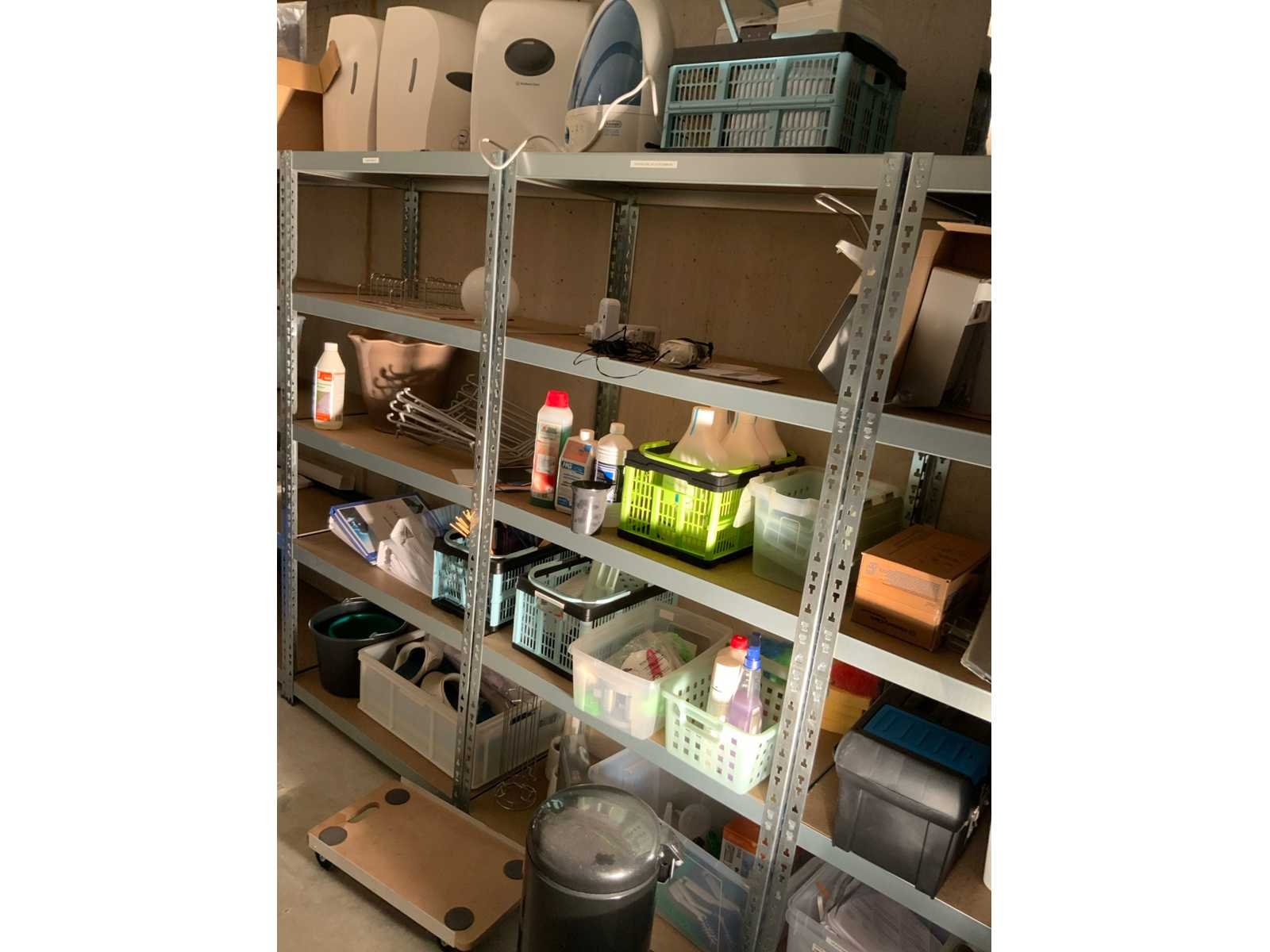 Bestaande uit gehele inhoud van het magazijn. O.a. bestaande uit 14 secties magazijn stelling, waarvan 3 nieuw in verpakking Campingtafel, coronascherm, kerstboom en kerstverlichting, diverse gereedschap, Kimberly clark dispensers, huishoudtrap, bouwlamp, disposable bekers, infuuspalen Aantal secties: 14 Sectie afm. b: 900mm Sectie diepte: 445mm Sectie afm. h: 1790mm Demontabel: true