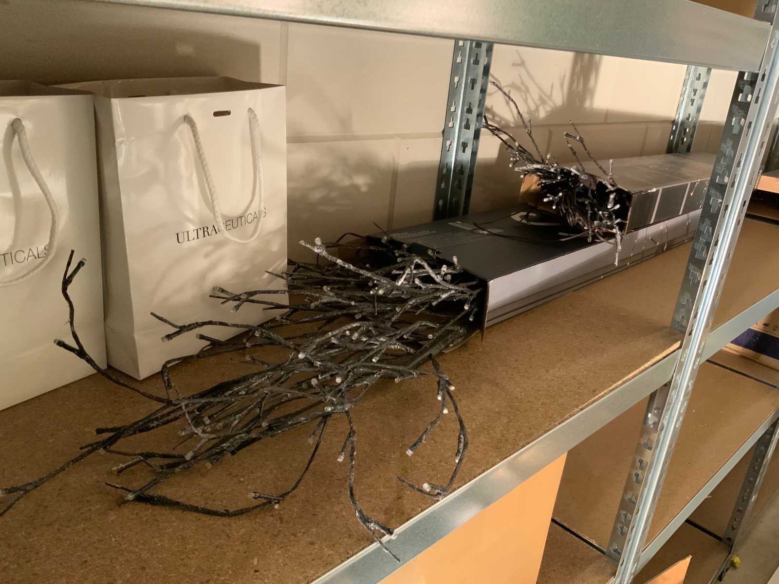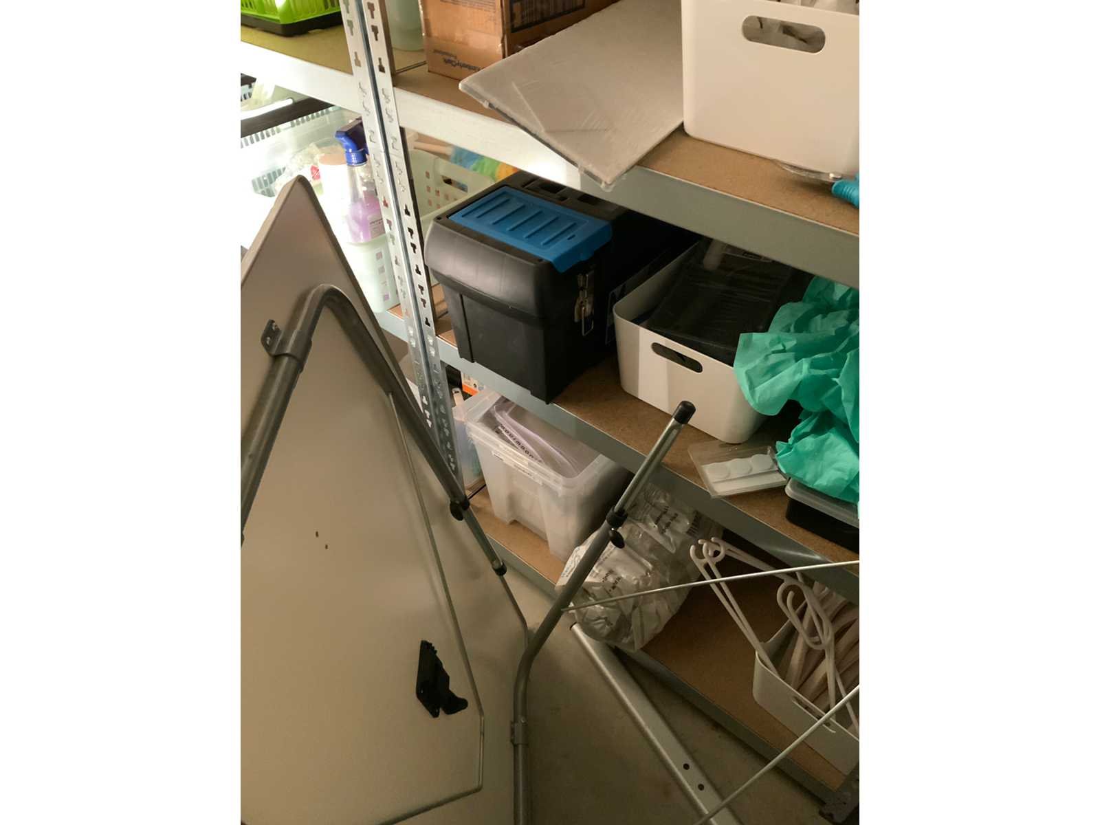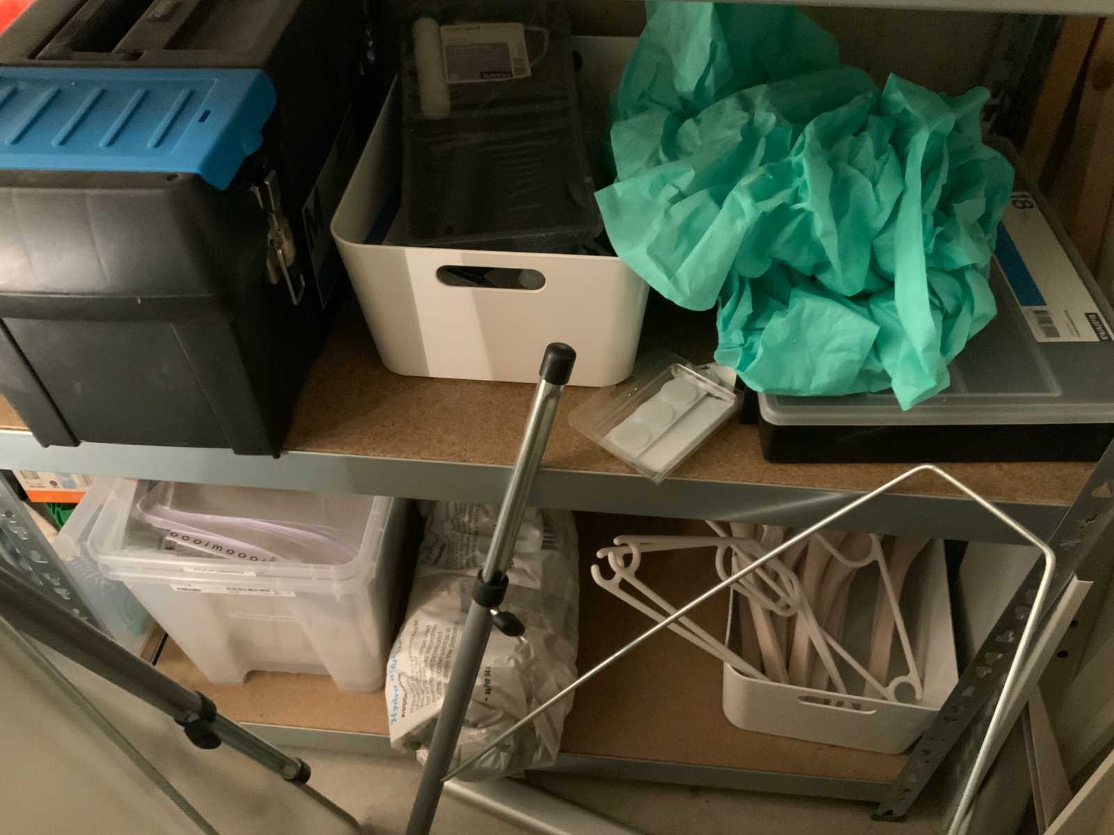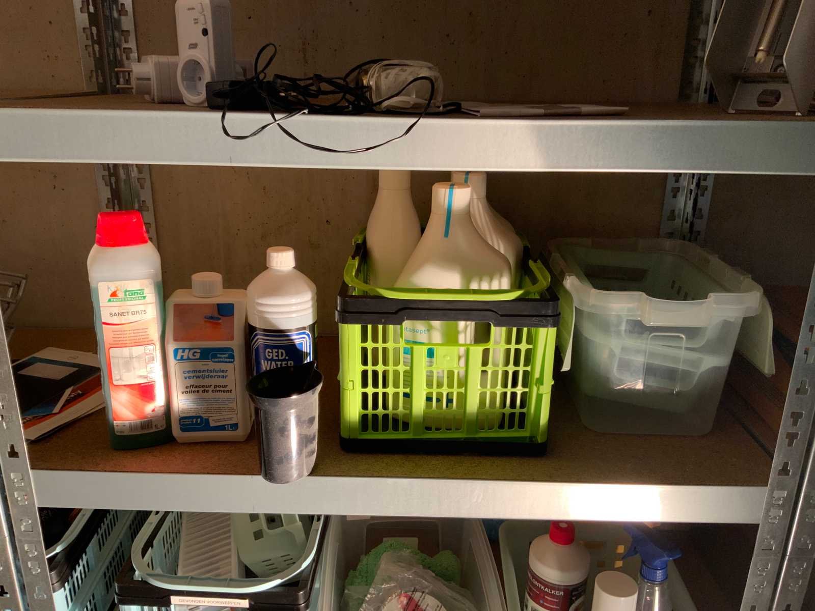 Bestaande uit gehele inhoud van het magazijn. O.a. bestaande uit 14 secties magazijn stelling, waarvan 3 nieuw in verpakking Campingtafel, coronascherm, kerstboom en kerstverlichting, diverse gereedschap, Kimberly clark dispensers, huishoudtrap, bouwlamp, disposable bekers, infuuspalen Aantal secties: 14 Sectie afm. b: 900mm Sectie diepte: 445mm Sectie afm. h: 1790mm Demontabel: true