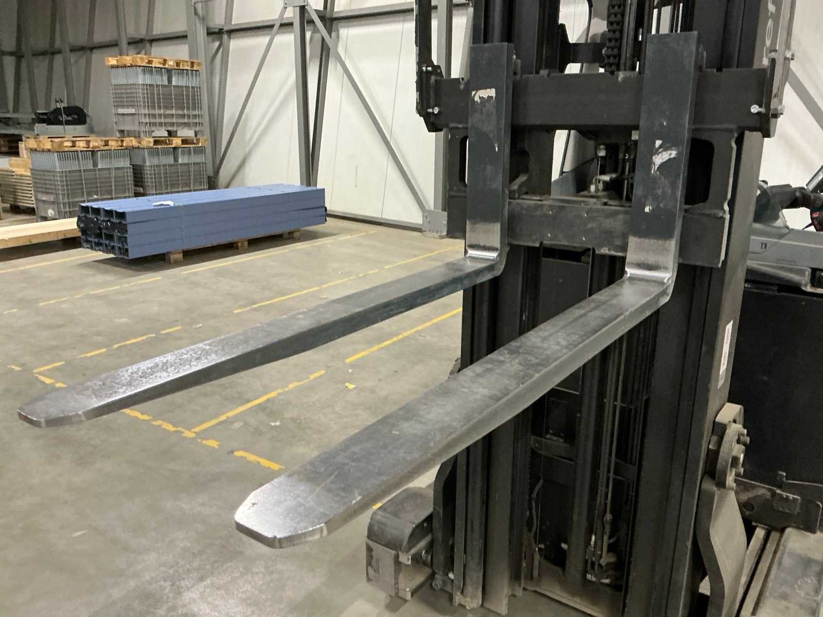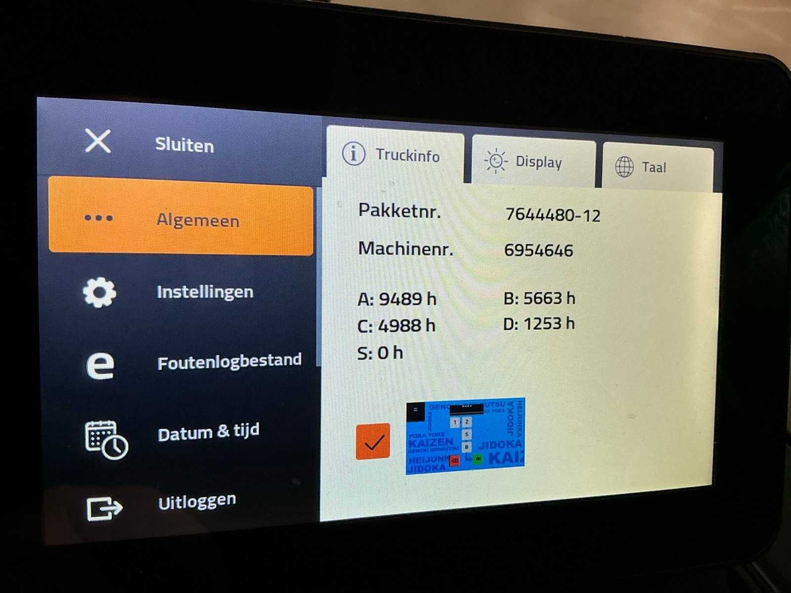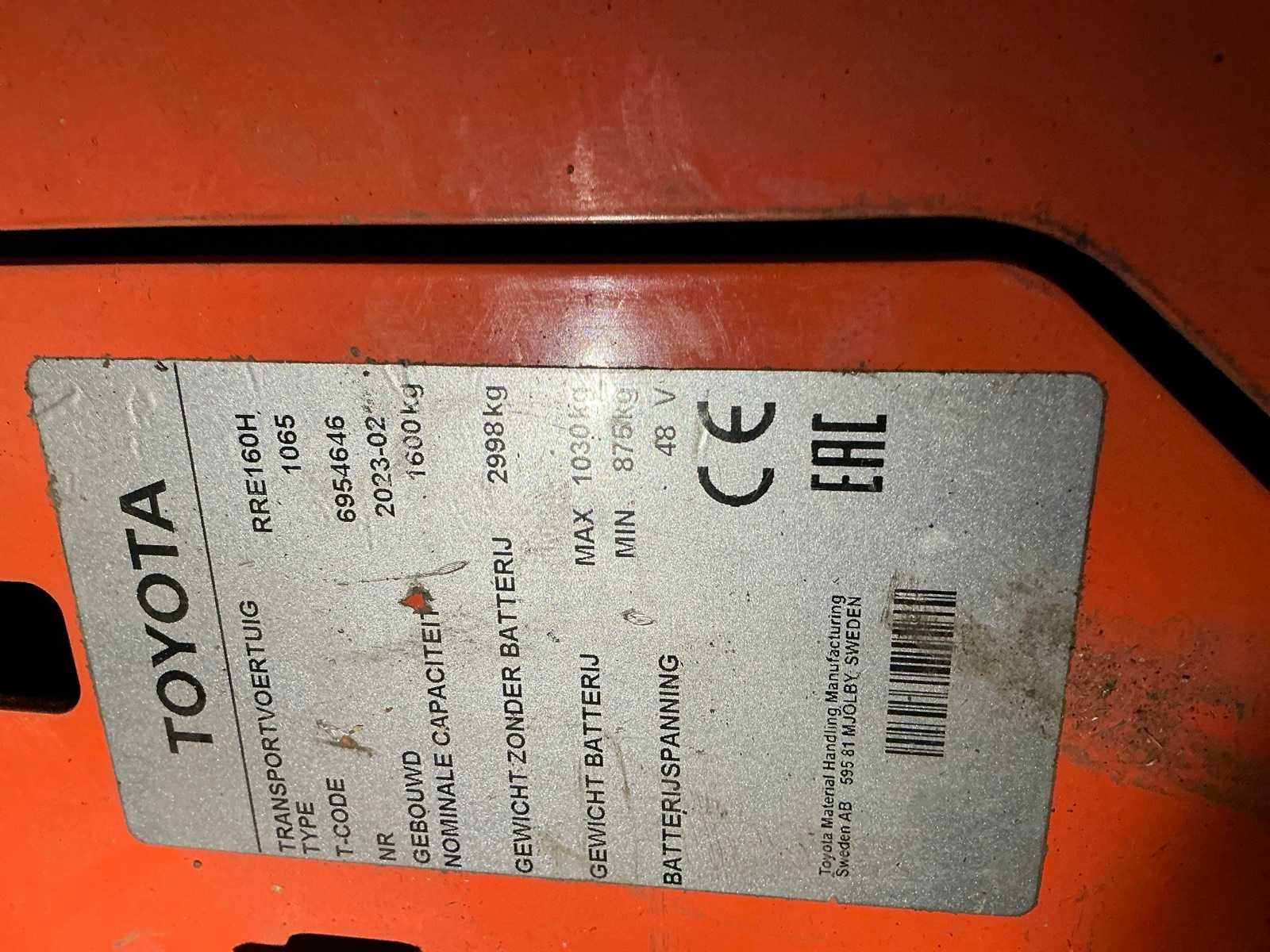 Voorzien van: blue-spot, digitaal display, Zebra labelprinter, Honeywell barcode scanner en display met hoogtemeter en weegsysteem. Inclusief extra accu welke niet is gecontroleerd op werking Merk: Toyota Type: RRE160H Bouwjaar: 2023 Serienummer: 6954646 Accu lader: true Side-shift: true Duplex mast: true Eigen gewicht: 4000kg Hefvermogen: 1600kg Lepellengte: 1150mm Hefhoogte: 9500mm Minimale doorrijhoogte: 3750mm Totale afmeting L: 2500mm Totale afmeting Breedte: 1250mm Totale afmeting Hoogte: 3750mm Elektrisch: true
