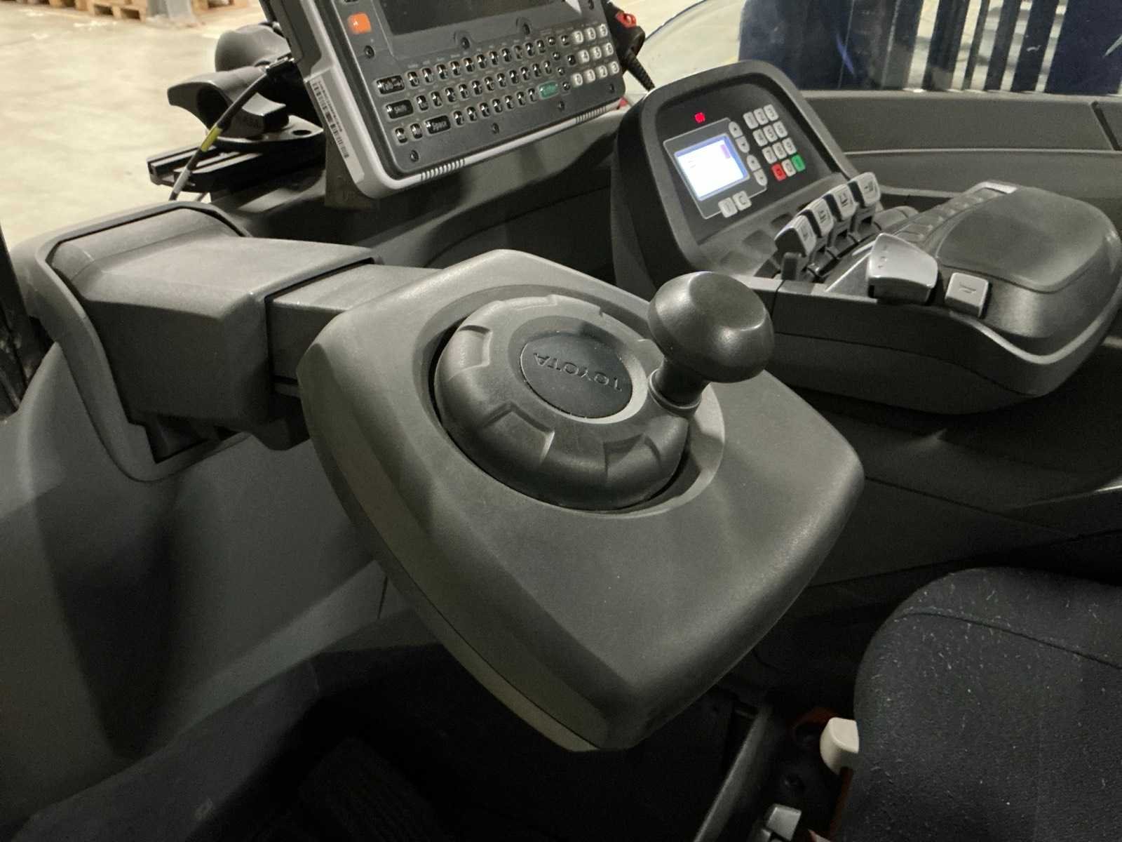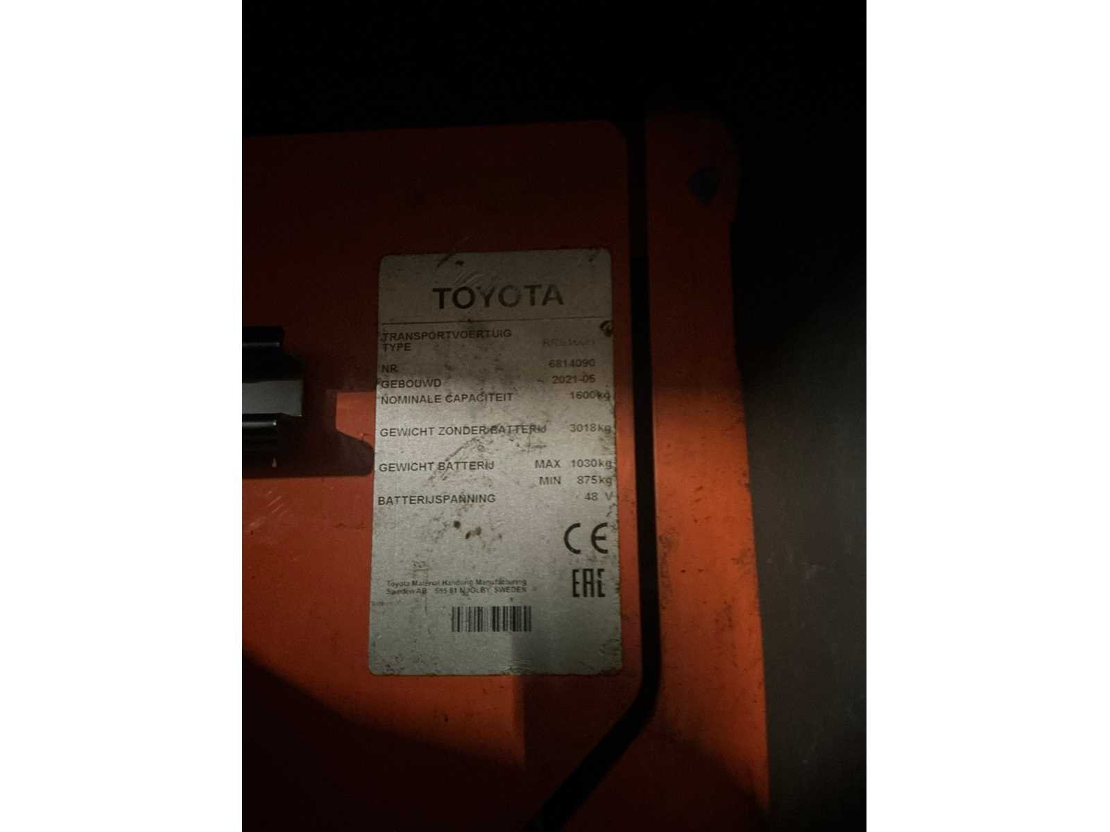 Voorzien van: blue-spot, digitaal display, Honeywell barcode scanner en display met hoogtemeter en gewichtssysteem. Inclusief extra accu welke niet is gecontroleerd op werking Merk: Toyota Type: RRE160H Bouwjaar: 2021 Serienummer: 6814090 Afgelezen urenstand: 4997 Accu lader: true Side-shift: true Duplex mast: true Eigen gewicht: 3018kg Hefvermogen: 1600kg Lepellengte: 1150mm Hefhoogte: 9500mm Minimale doorrijhoogte: 3700mm Totale afmeting L: 2450mm Totale afmeting Breedte: 1260mm Totale afmeting Hoogte: 3700mm Elektrisch: true Vol rubber banden: true