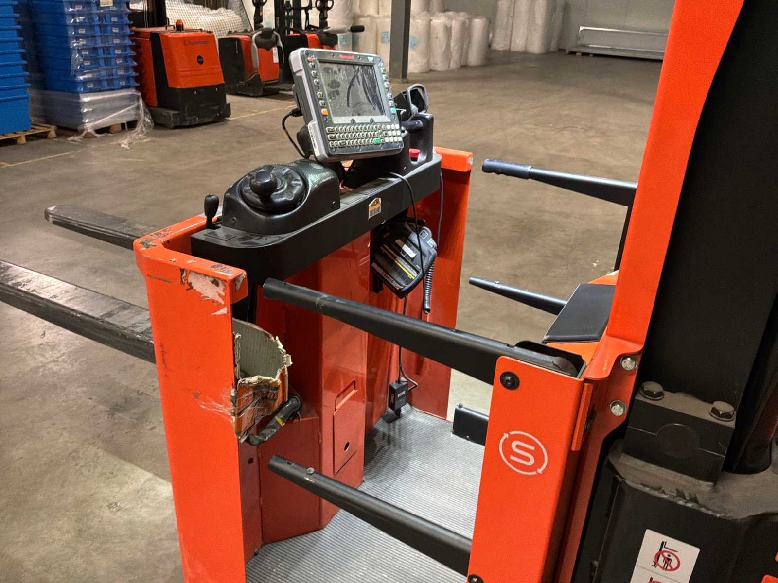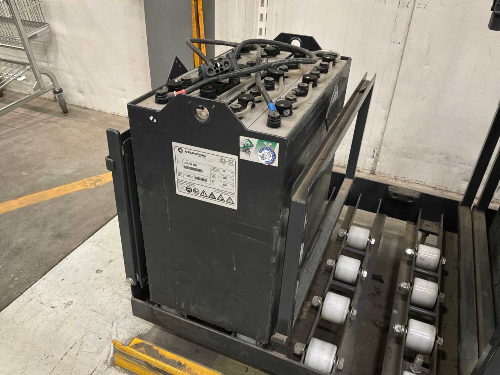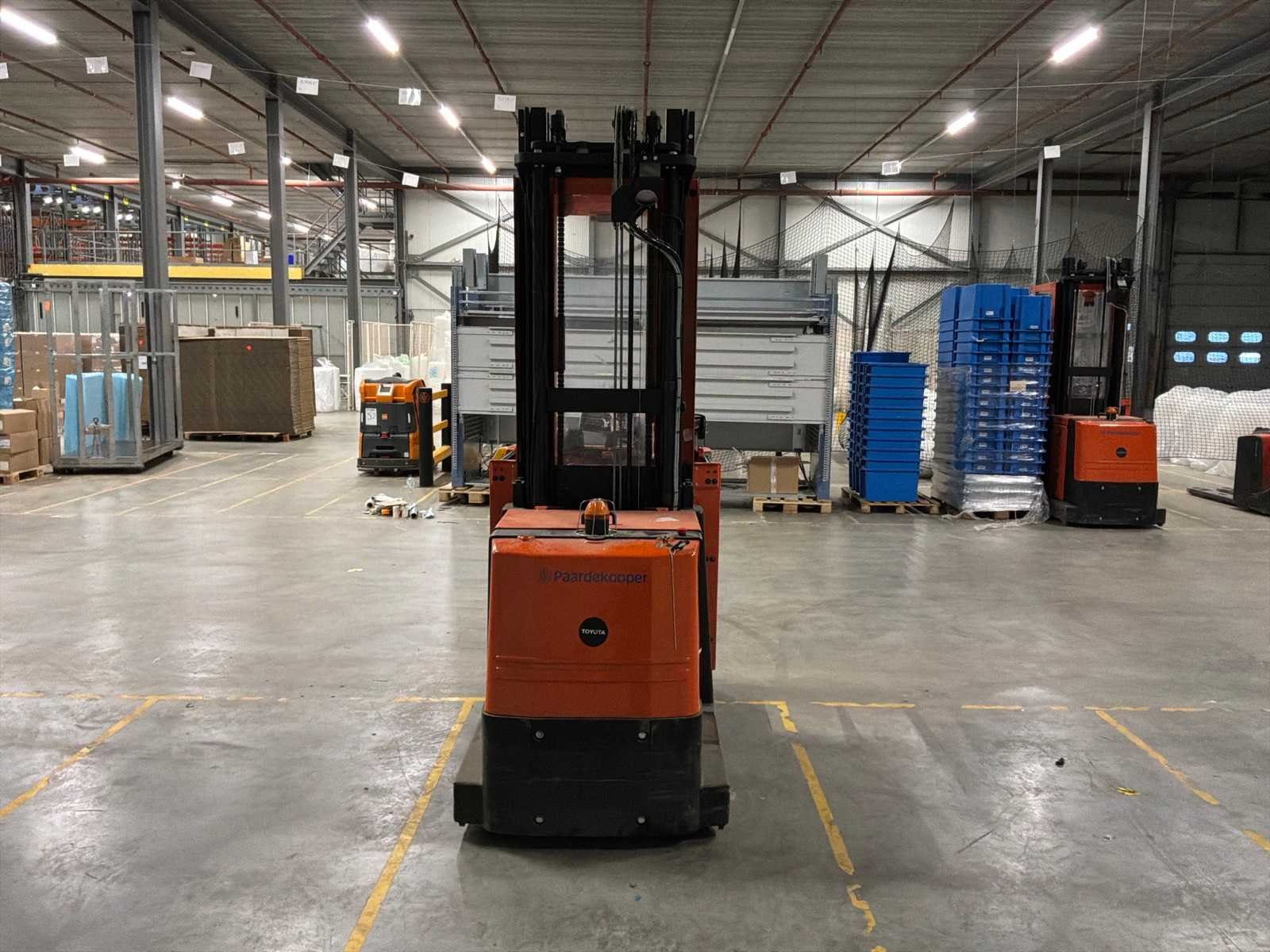 Voorzien van: Digitaal display, Honeywell barcode scanner, Zebra labelprinter en display met hoogtemeter. Inclusief extra accu welke niet is gecontroleerd op werking. Merk: Toyota Type: BT Optio OME100M Bouwjaar: 2023 Serienummer: 6957534 Accu lader: true Eigen gewicht: 1635kg Hefvermogen: 850kg Lepellengte: 1140mm Max. hefhoogte: 4750mm Totale afmeting L: 3000mm Totale afmeting Breedte: 1020mm Totale afmeting Hoogte: 2650mm Elektrisch: true