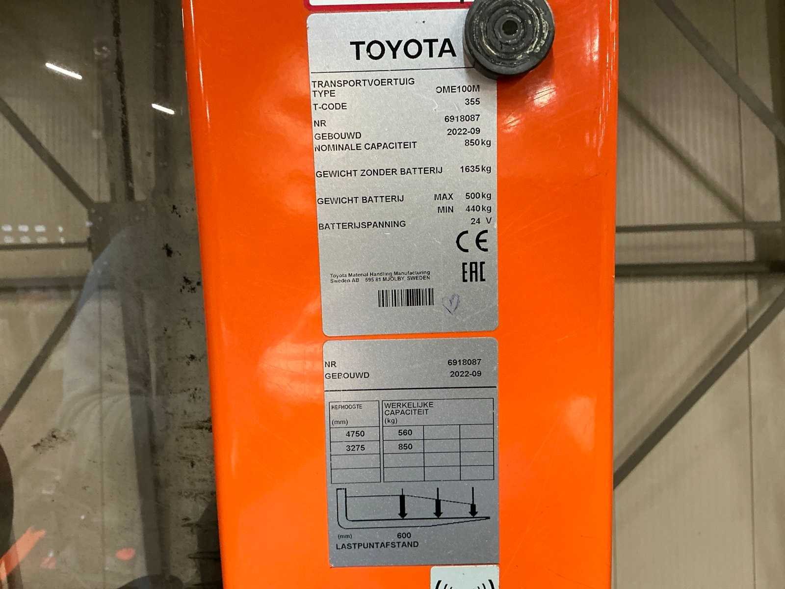 Voorzien van: Digitaal display, Honeywell barcode scanner en display met hoogtemeter. Inclusief extra accu welke niet is gecontroleerd op werking Merk: Toyota Type: BT Optio OME100M Bouwjaar: 2022 Serienummer: 6918087 Accu lader: true Duplex mast: true Eigen gewicht: 2430kg Hefvermogen: 850kg Lepellengte: 1150mm Hefhoogte: 4750mm Minimale doorrijhoogte: 2650mm Totale afmeting L: 3000mm Totale afmeting Breedte: 1000mm Totale afmeting Hoogte: 2650mm Elektrisch: true