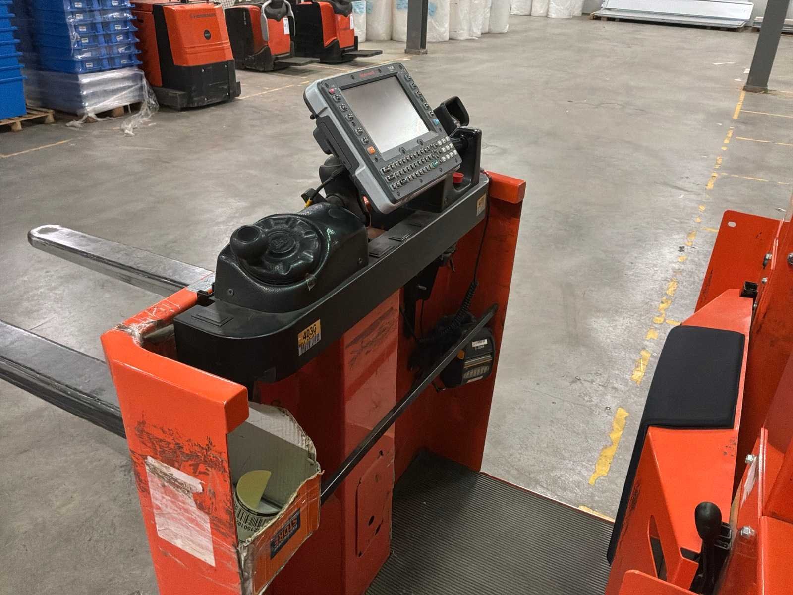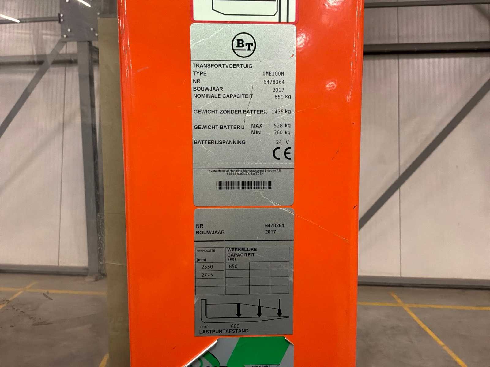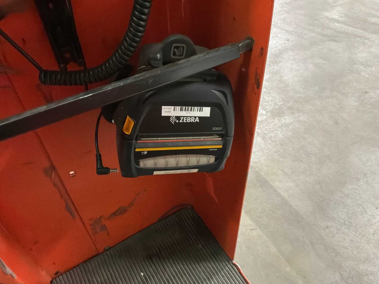 Voorzien van: Honeywell barcode scanner, Zebra labelprinter en display met hoogtemeter. Platform gaat niet omhoog of omlaag. Merk: Toyota Type: BT Optio OME100M Bouwjaar: 2017 Serienummer: 6478264 Eigen gewicht: 1435kg Hefvermogen: 850kg Lepellengte: 1140mm Max. hefhoogte: 2550mm Totale afmeting L: 3000mm Totale afmeting Breedte: 1020mm Totale afmeting Hoogte: 2400mm Elektrisch: true