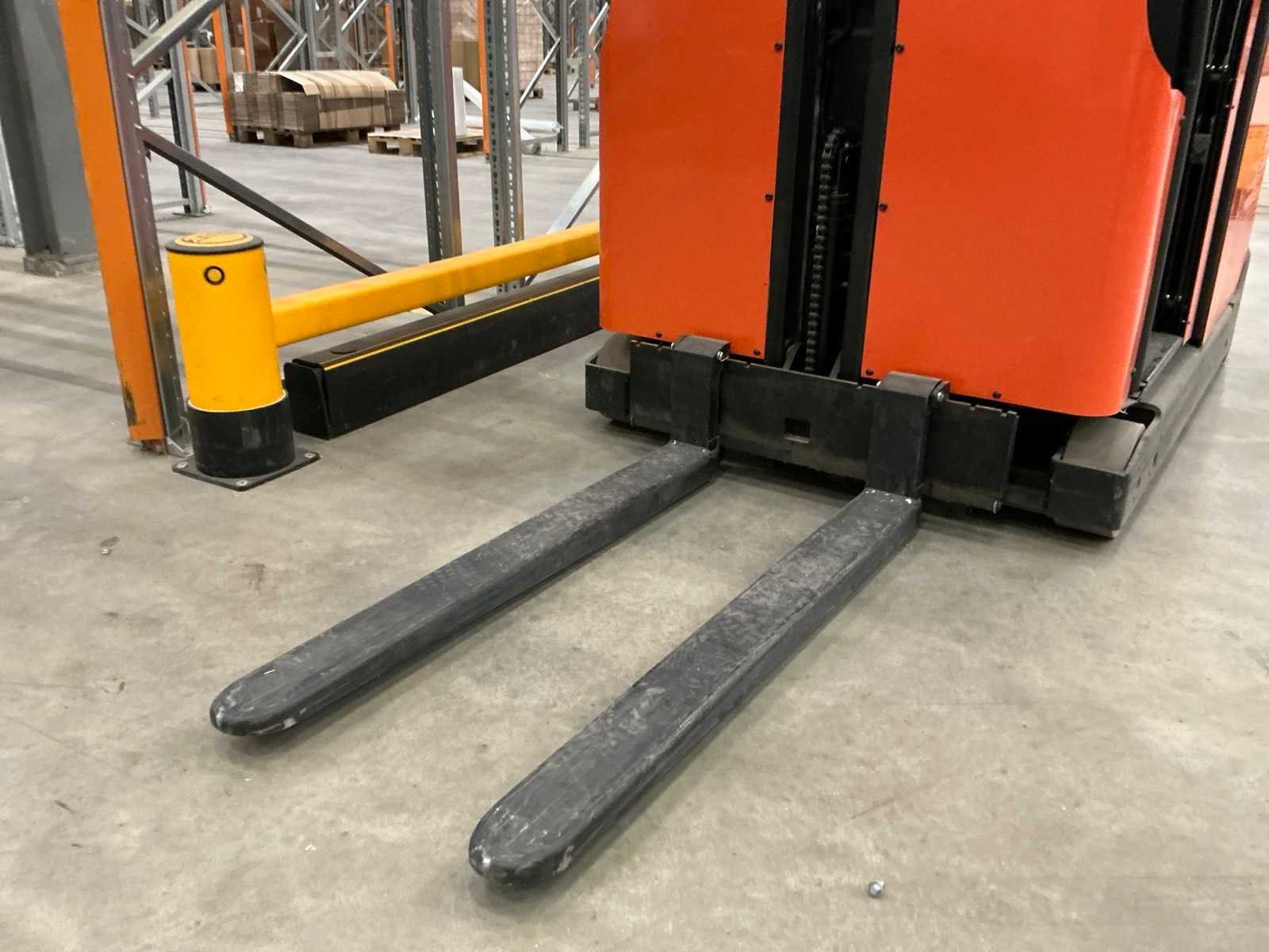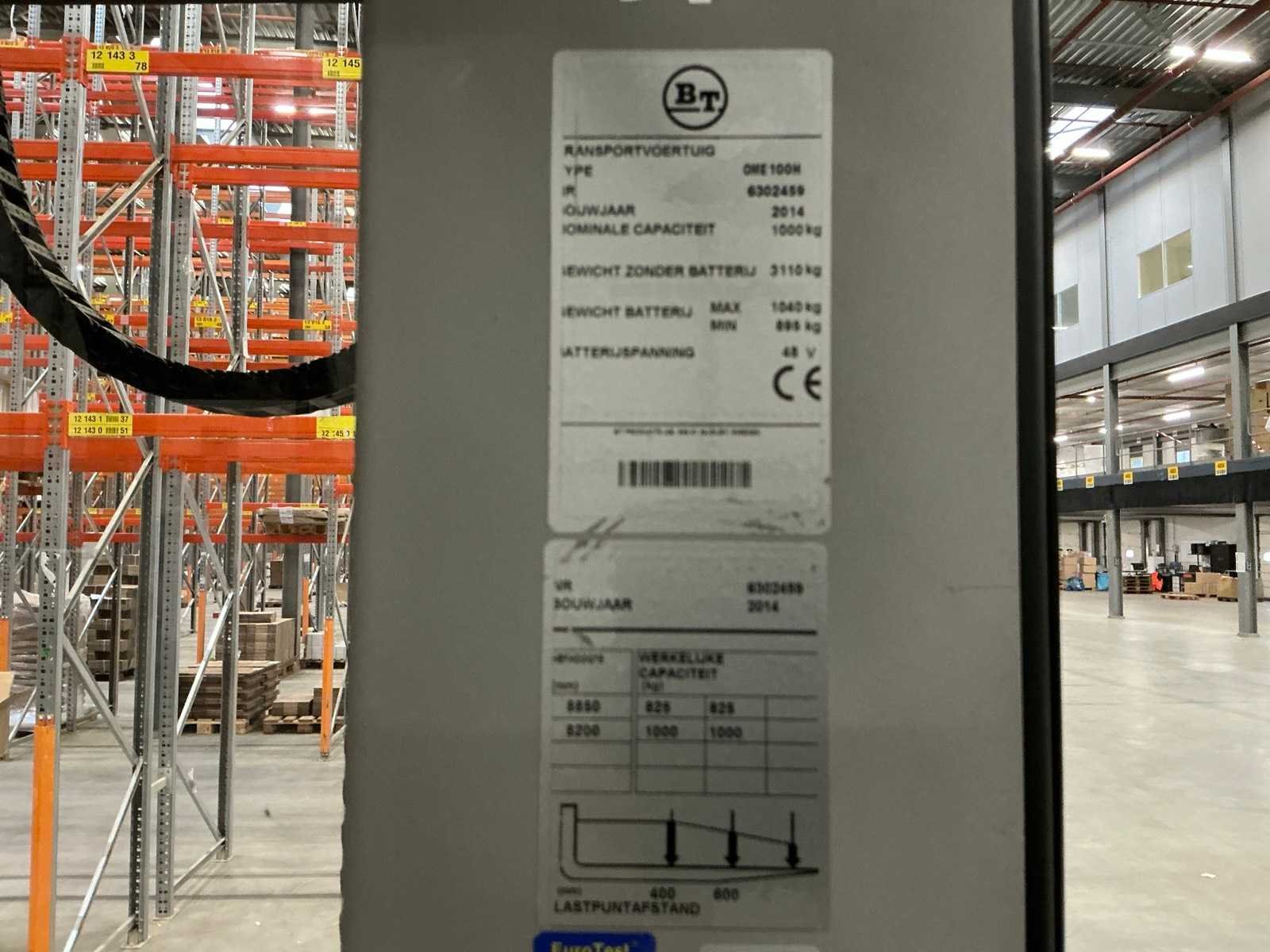 Voorzien van: Digitaal display, Honeywell barcode scanner en display met hoogtemeter Merk: Toyota Type: BT Optio OME100H Bouwjaar: 2014 Serienummer: 6302459 Accu lader: true Triple mast: true Eigen gewicht: 4200kg Hefvermogen: 1000kg Lepellengte: 1200mm Hefhoogte: 8850mm Minimale doorrijhoogte: 3800mm Totale afmeting L: 3100mm Totale afmeting Breedte: 1240mm Totale afmeting Hoogte: 3800mm Elektrisch: true