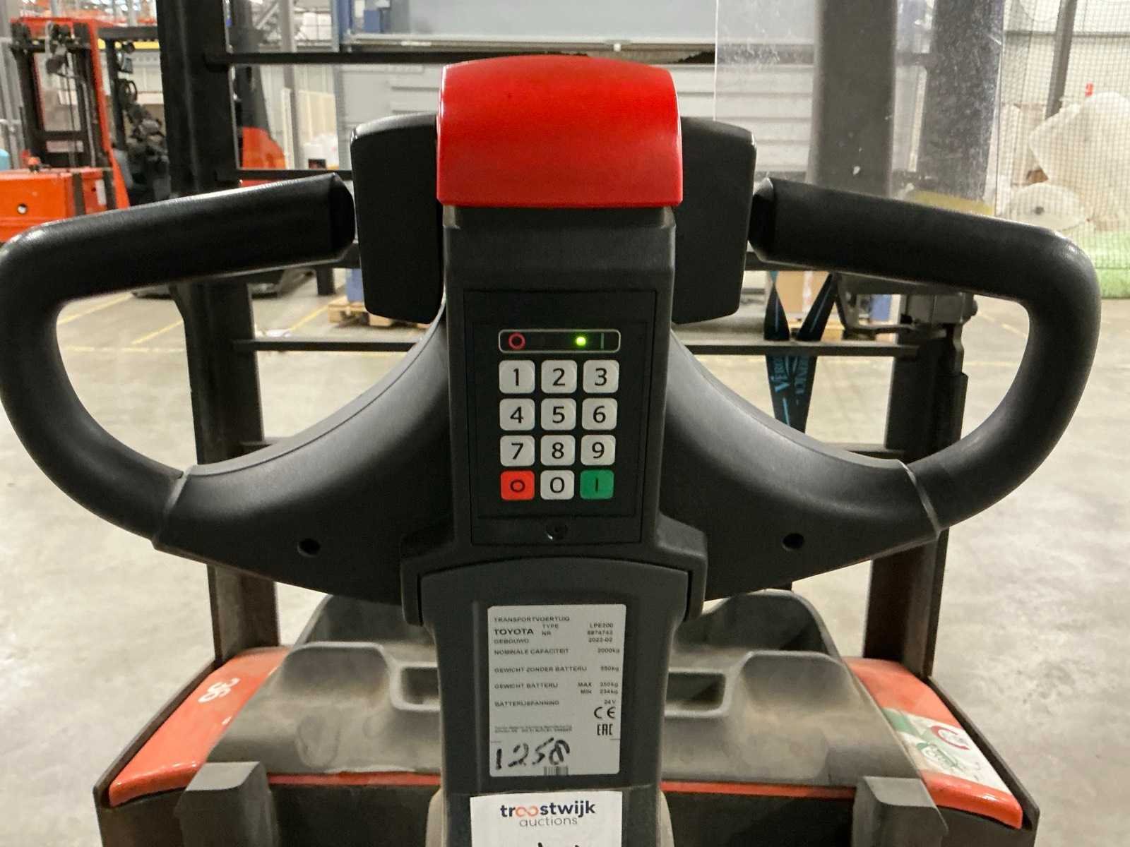 Merk: Toyota Type: LPE200 Bouwjaar: 2022 Serienummer: 6874742 Hefvermogen: 2000kg Lepellengte: 1580mm Meerij palletwagen: true Accu lader: true Afgelezen urenstand: 1058 Eigen gewicht: 900kg Totale afmeting L: 2700mm Totale afmeting Breedte: 750mm Totale afmeting Hoogte: 1550mm