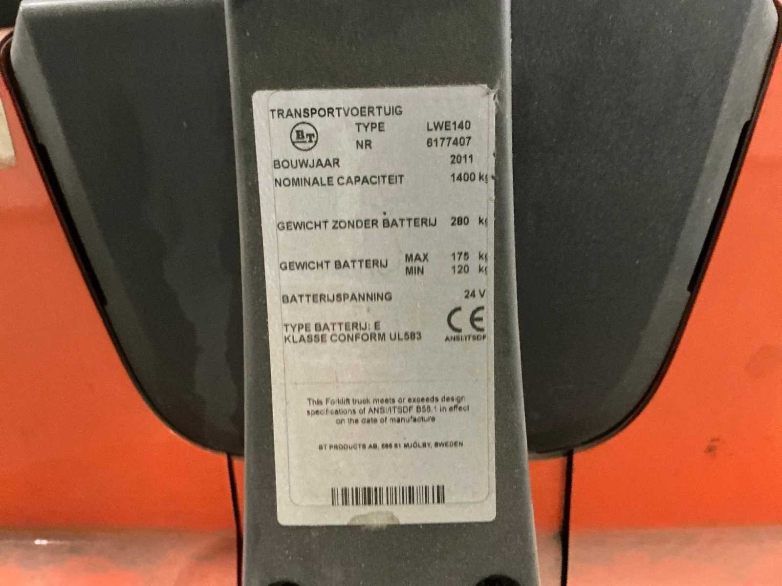 Merk: Toyota Type: BT LWE140 Bouwjaar: 2011 Serienummer: 6177407 Hefvermogen: 1400kg Lepellengte: 1150mm Accu lader: true Afgelezen urenstand: 2589 Eigen gewicht: 450kg Totale afmeting L: 1700mm Totale afmeting Breedte: 730mm Totale afmeting Hoogte: 1300mm