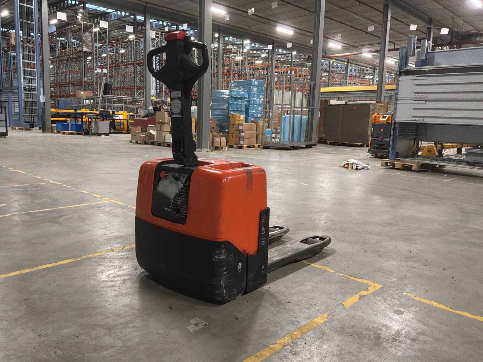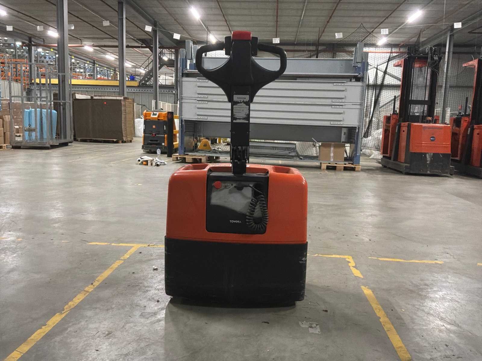 Voorzien van ingebouwde lader, palletwagen rijd en start niet. Merk: Toyota Serienummer: 6484978 Lepellengte: 910mm Accu lader: true Eigen gewicht: 200kg Totale afmeting L: 1300mm Totale afmeting Breedte: 710mm Totale afmeting Hoogte: 130mm