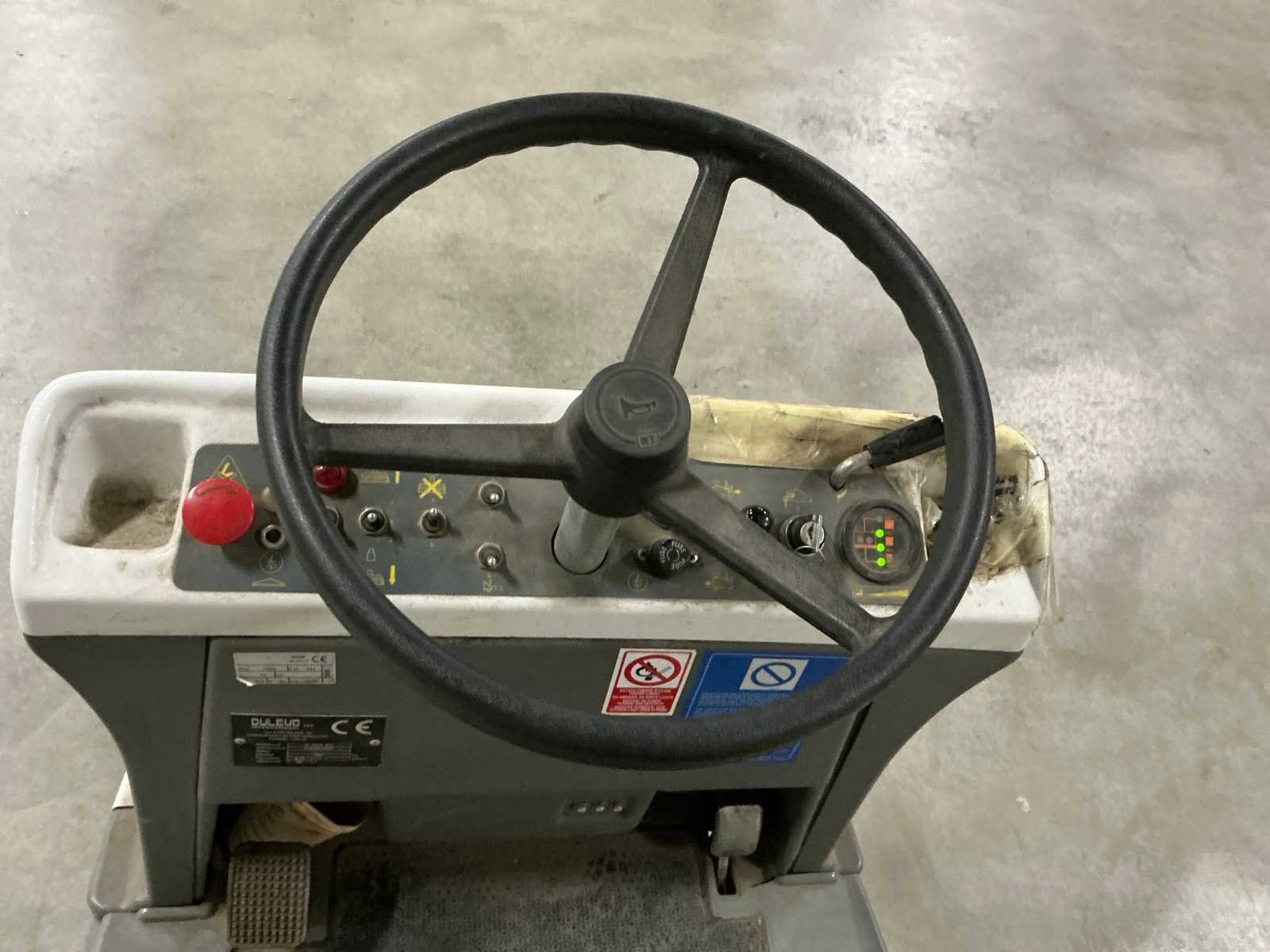 Loopplank achterwiel defect, separate schoon en vuil watertank Merk: DULEVO Type: H1030RO Bouwjaar: 2006 Serienummer: H10300097 Eigen gewicht: 390kg Totale afmeting L: 1800mm Totale afmeting Breedte: 1240mm Totale afmeting Hoogte: 1950mm
