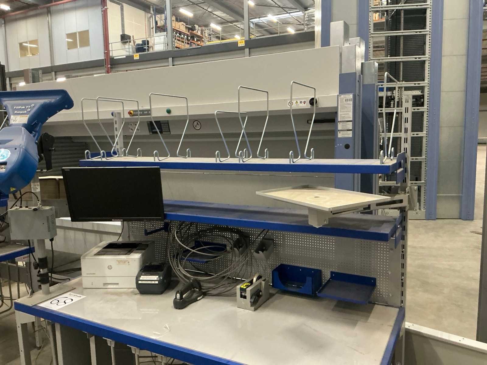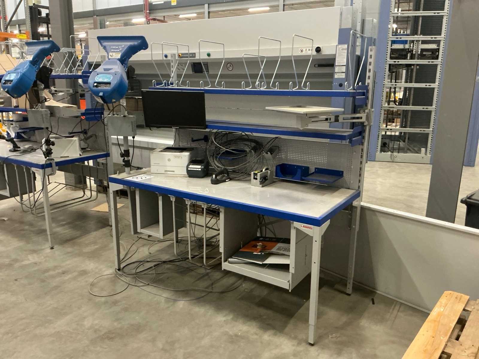 Voorzien van: IIyama 22” inch monitor, Zebra barcode scanner, Ranpak Fillpak TT. Desktop, labelprimter en laserprinter niet inbegrepen. Merk: Legro Totale afmeting L: 890mm Totale afmeting Breedte: 2000mm Totale afmeting Hoogte: 2000mm
