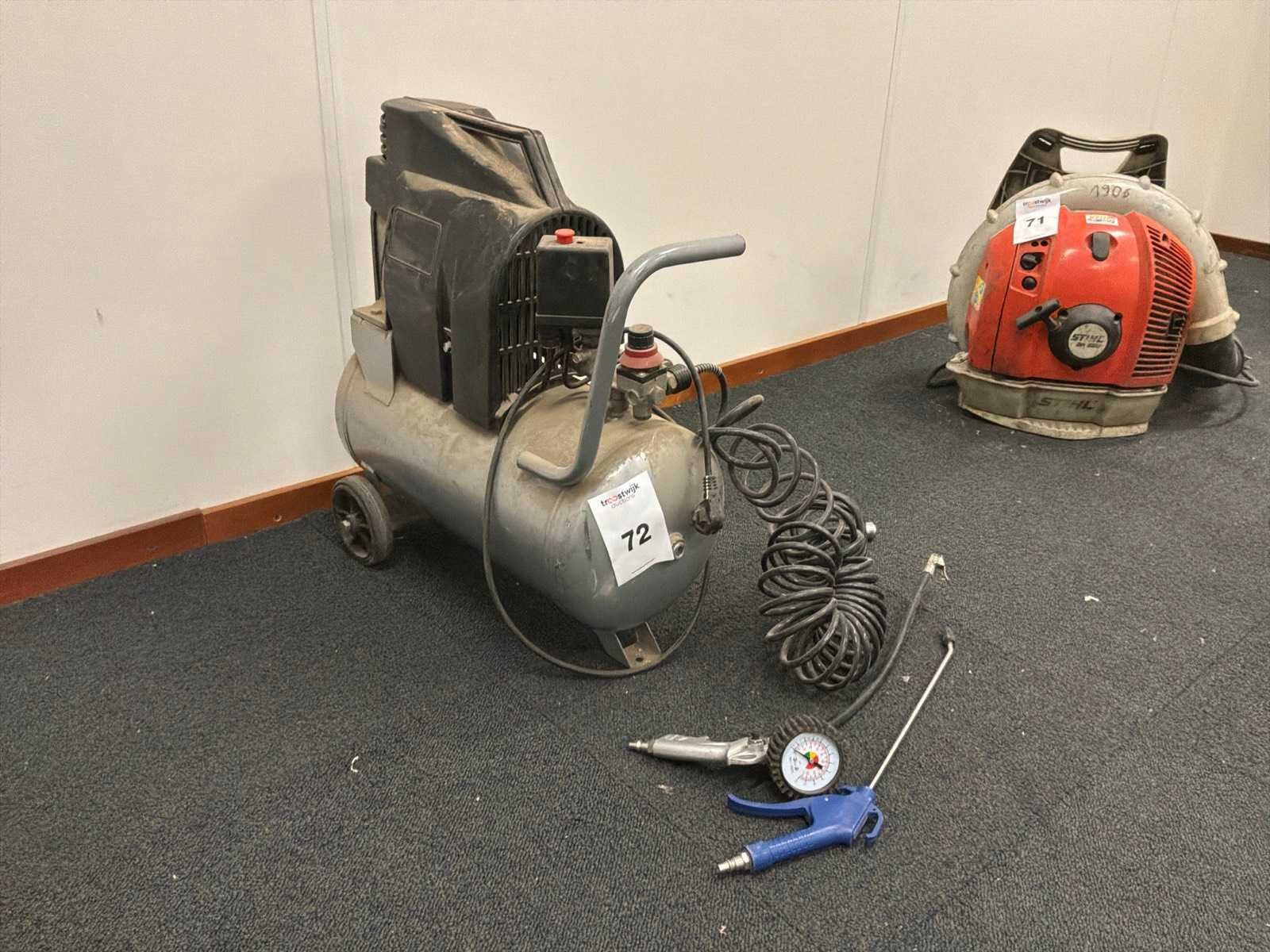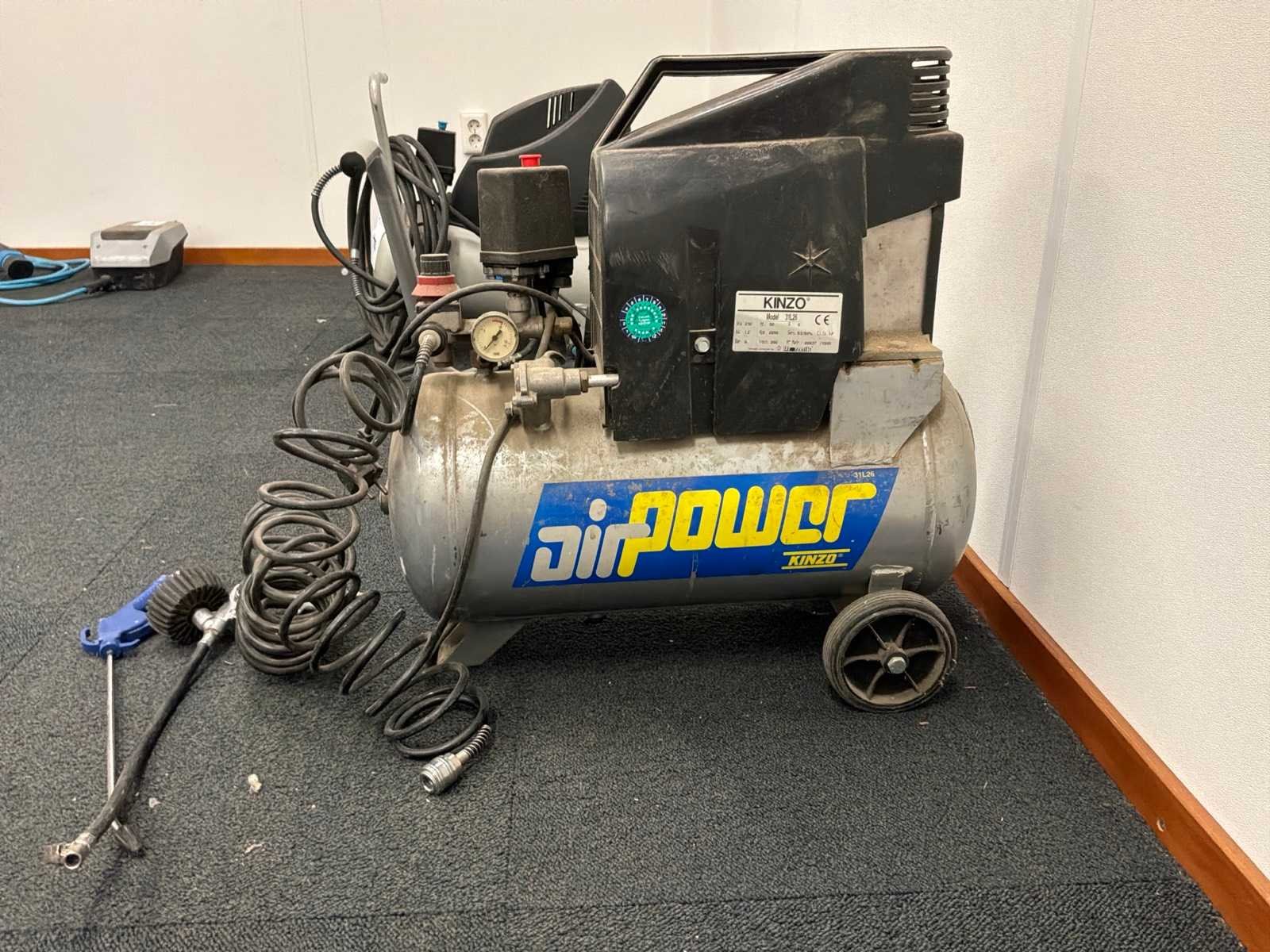 Merk: Kinzo Type: 31L26 Bouwjaar: 1999 Serienummer: 60837 Mobiel: true Capaciteit.: 8bar Luchtstroom: 200l/min Vermogen: 1.2kW Totale afmeting L: 600mm Totale afmeting Breedte: 300mm Totale afmeting Hoogte: 600mm