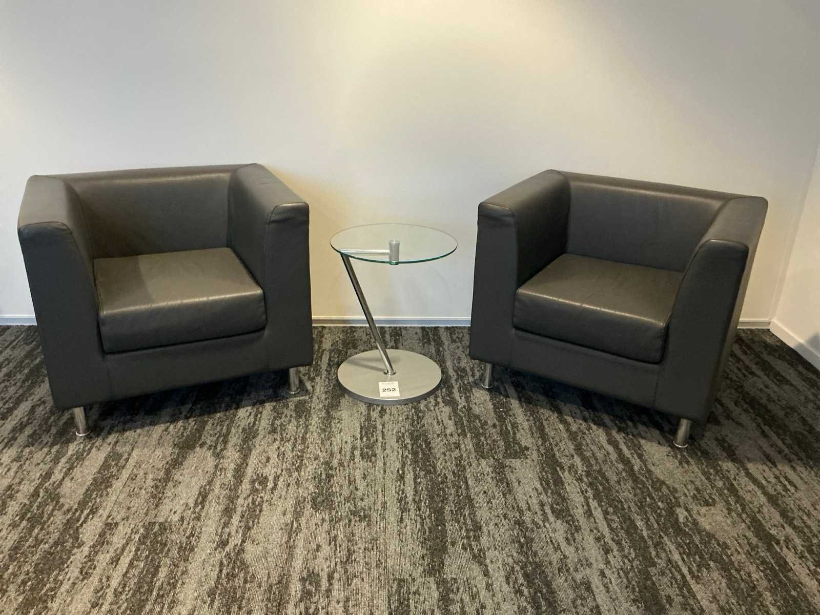 Bestaande uit: 2x fauteuil (81x65x45/73 cm), bijzettafel (55 cm hoog)