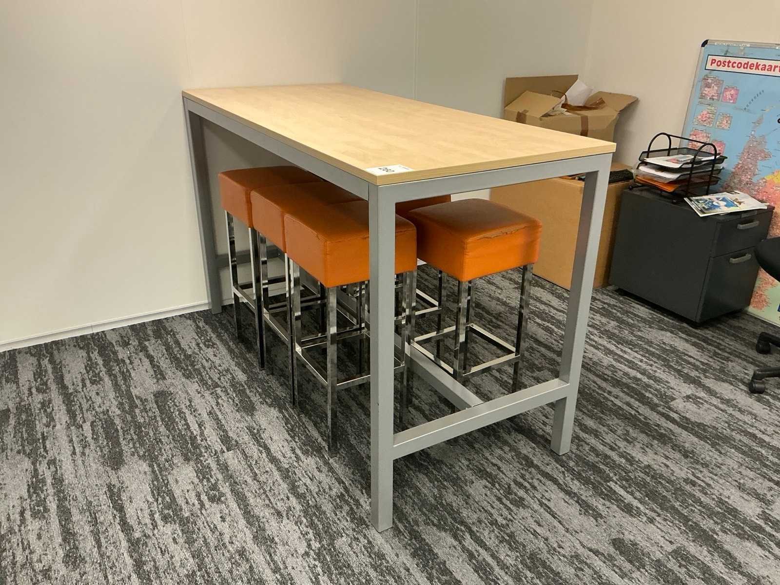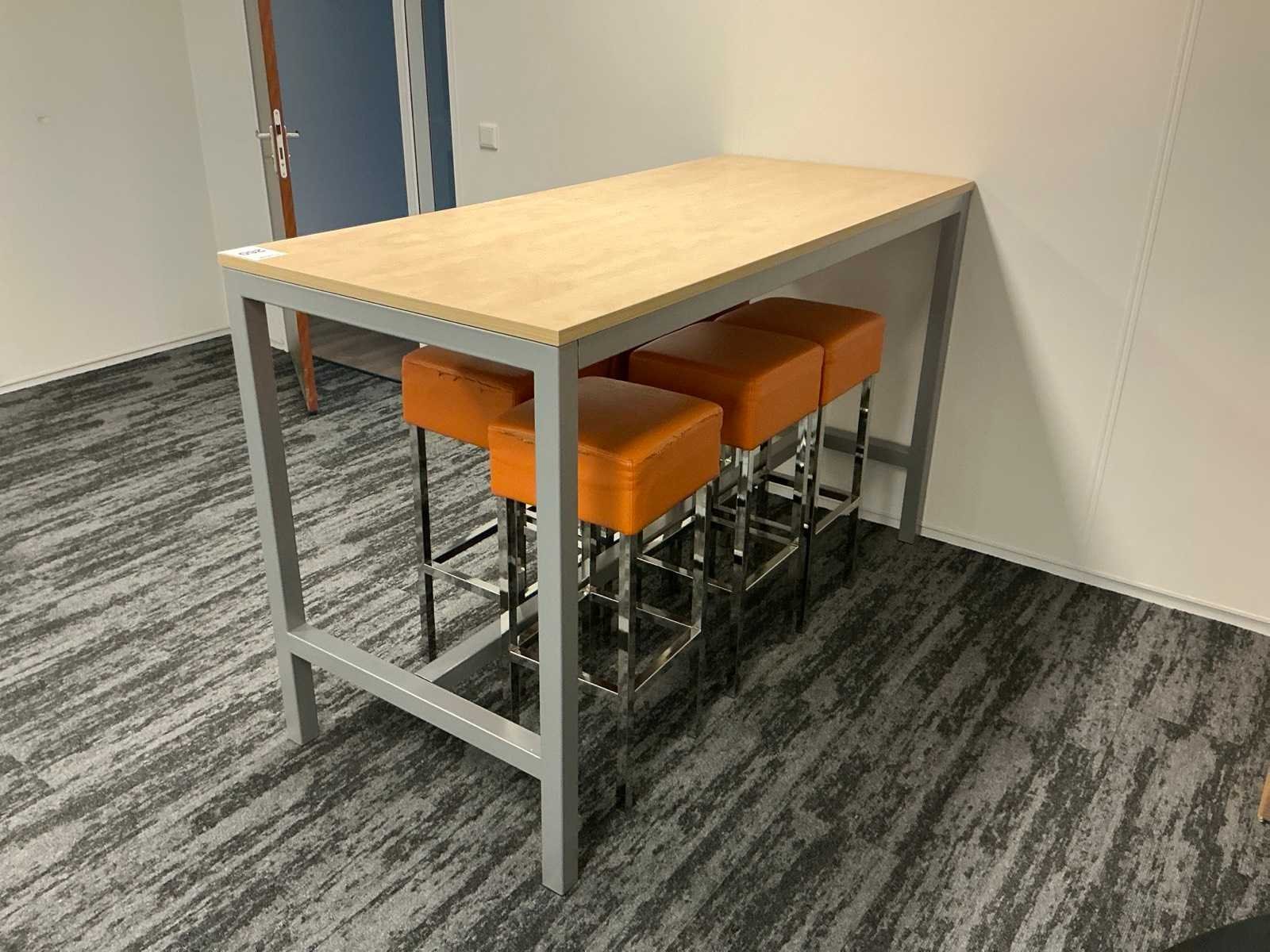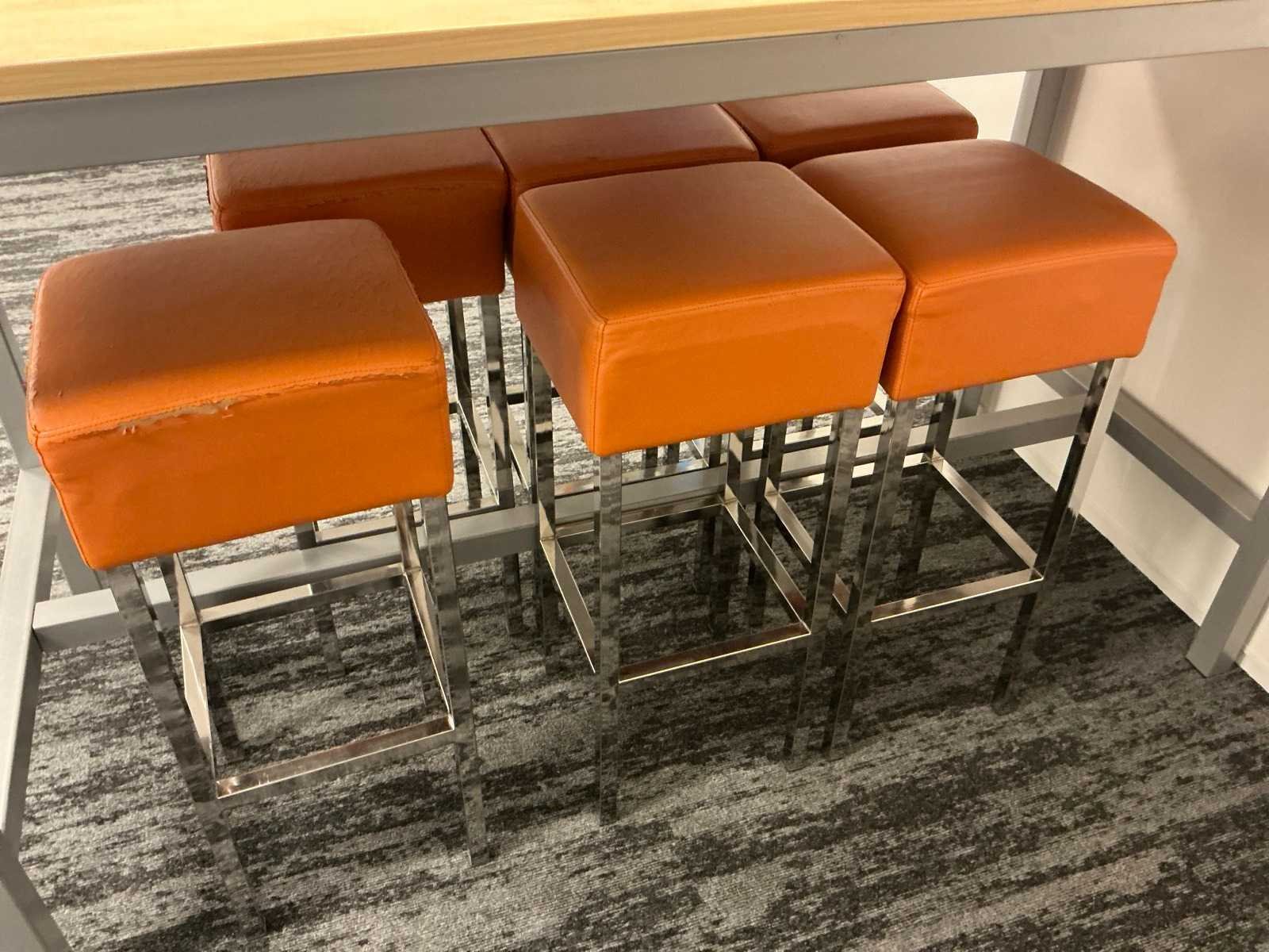 Inclusief 6x kruk met lederlook zitting Kleur: Naturel Materiaal: Hout/metaal Zithoogte: 102cm Lengte: 180cm Hoogte: 110cm Breedte: 80cm