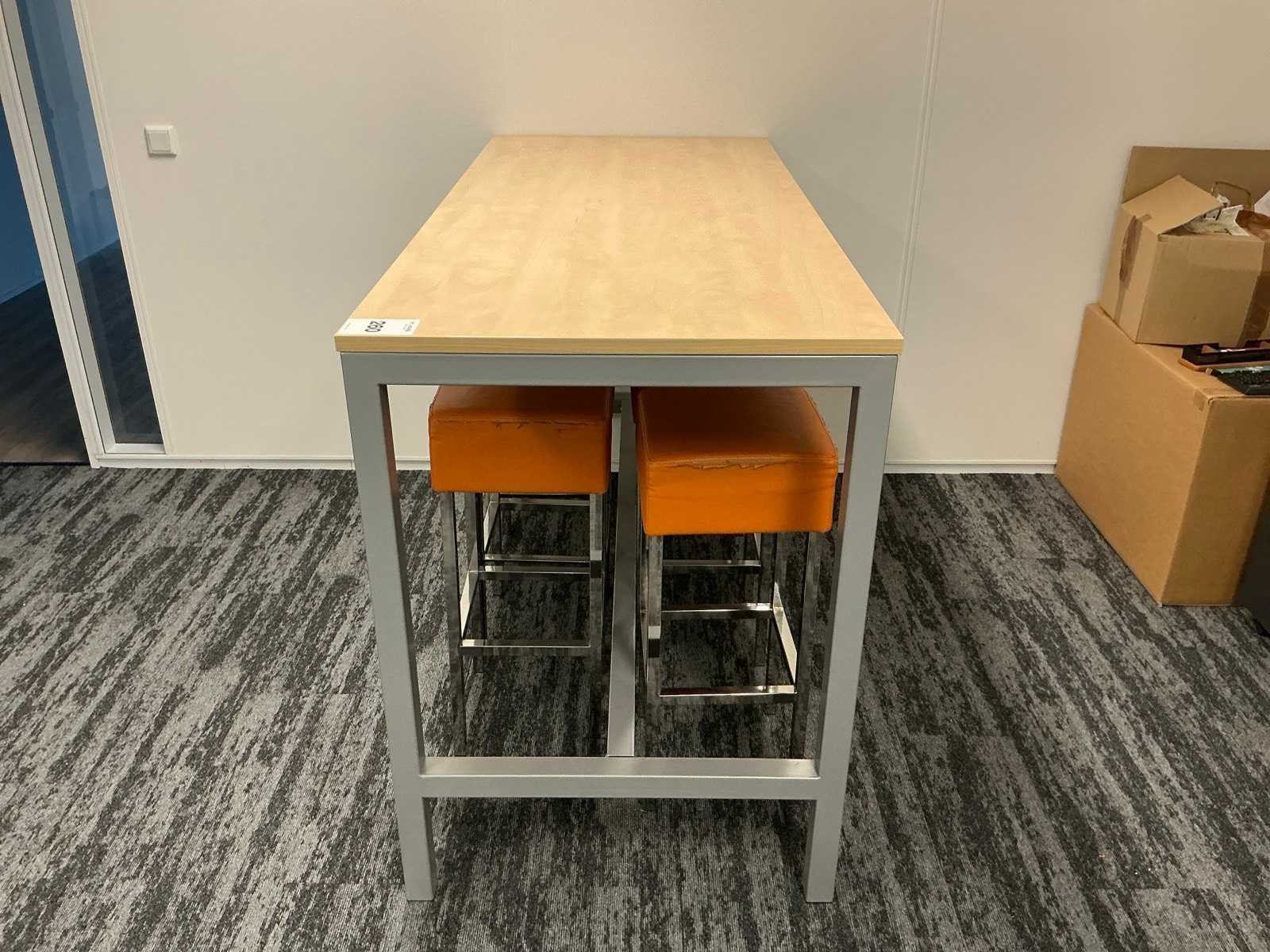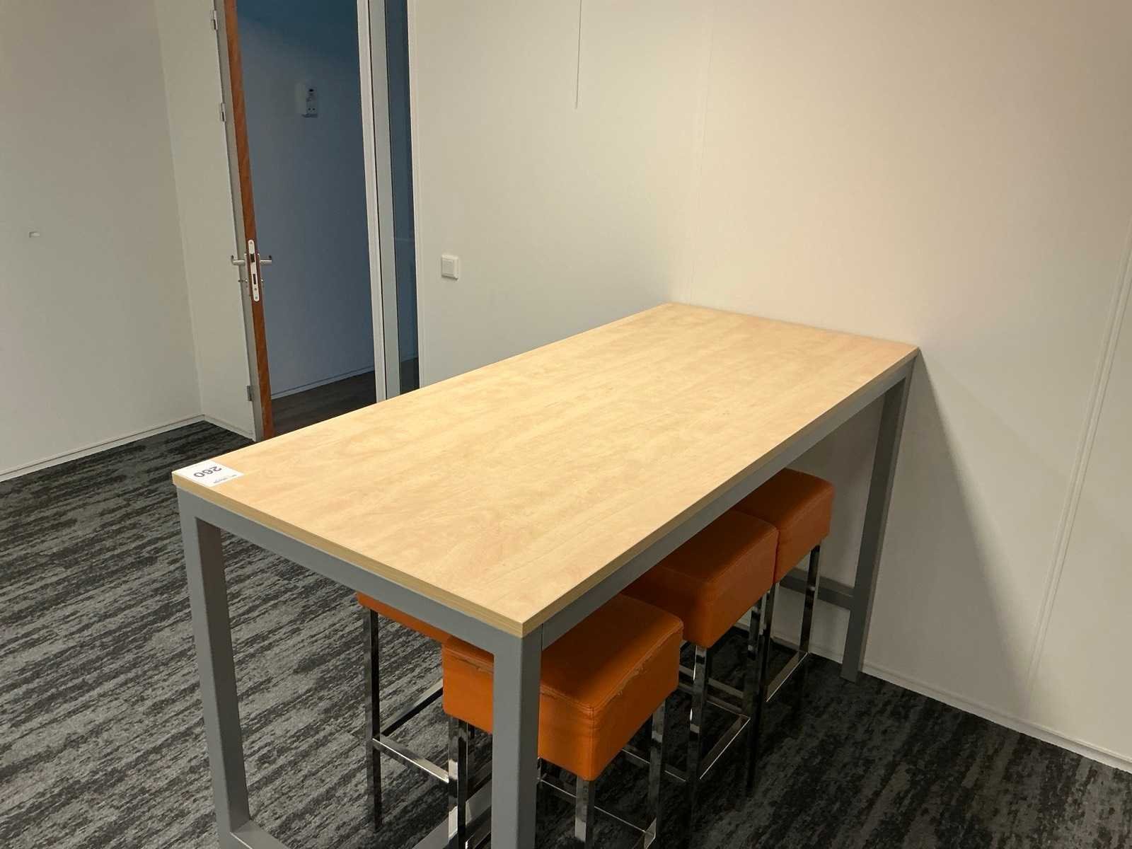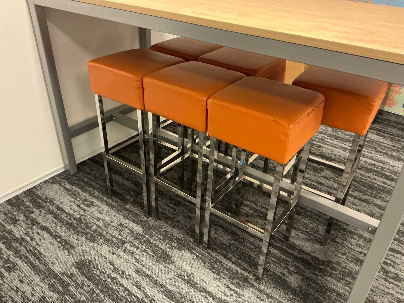 Inclusief 6x kruk met lederlook zitting Kleur: Naturel Materiaal: Hout/metaal Zithoogte: 102cm Lengte: 180cm Hoogte: 110cm Breedte: 80cm