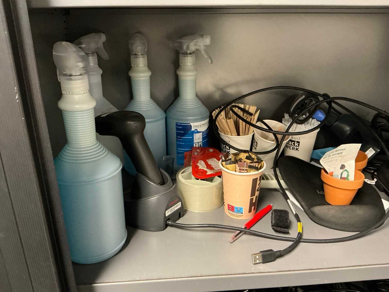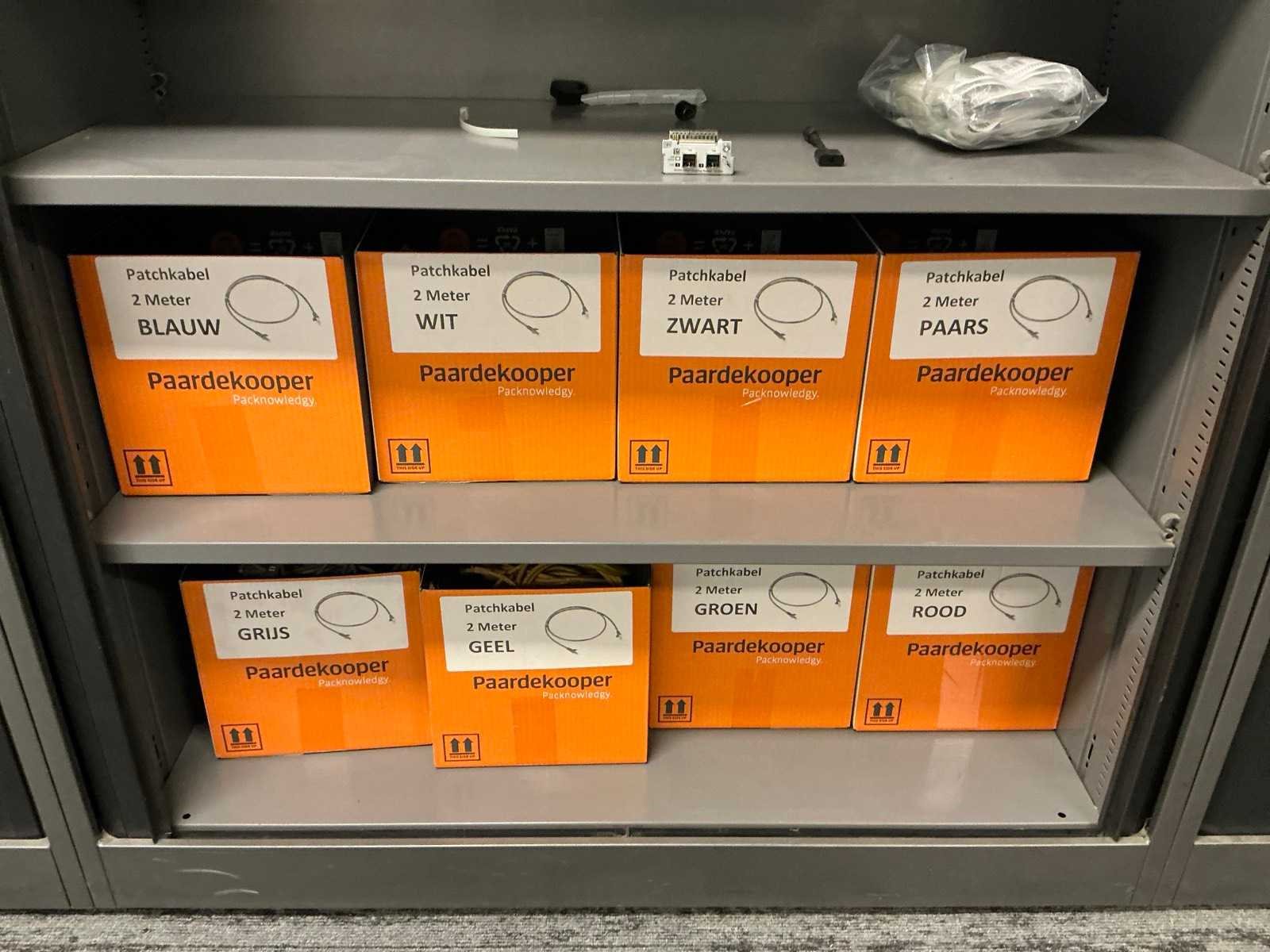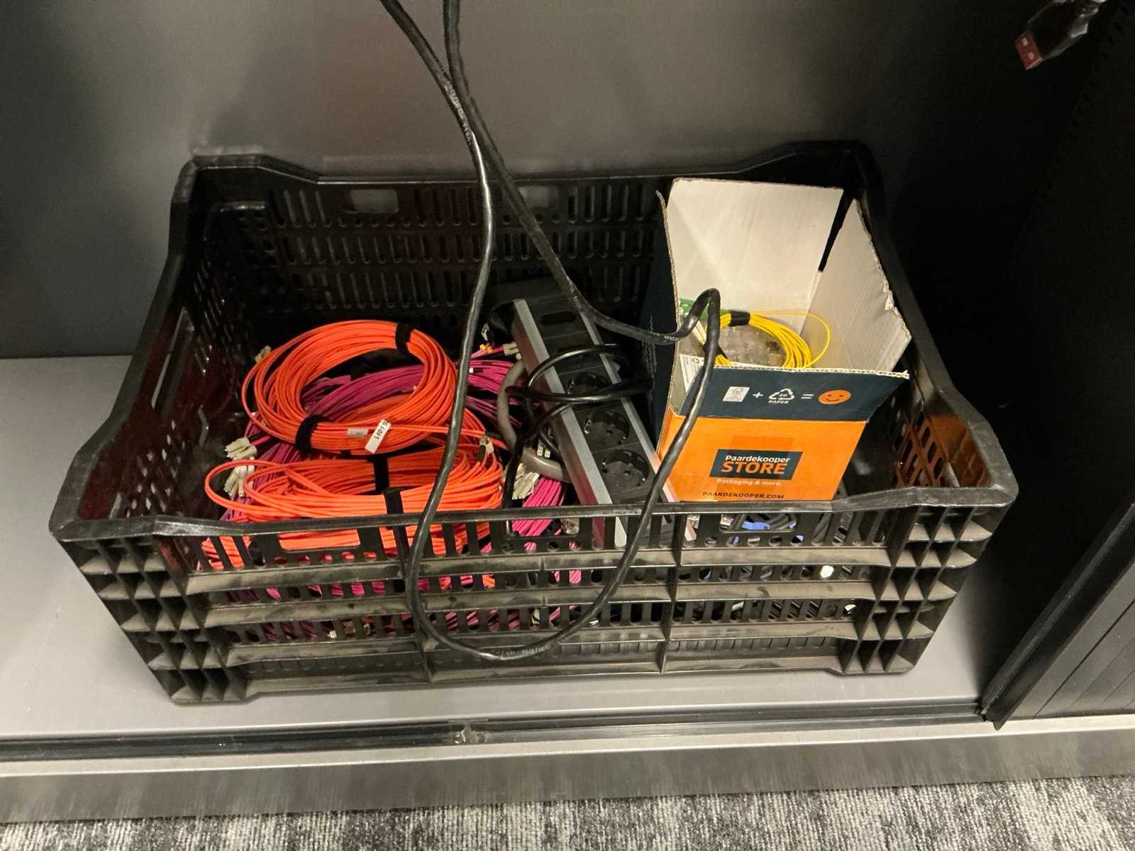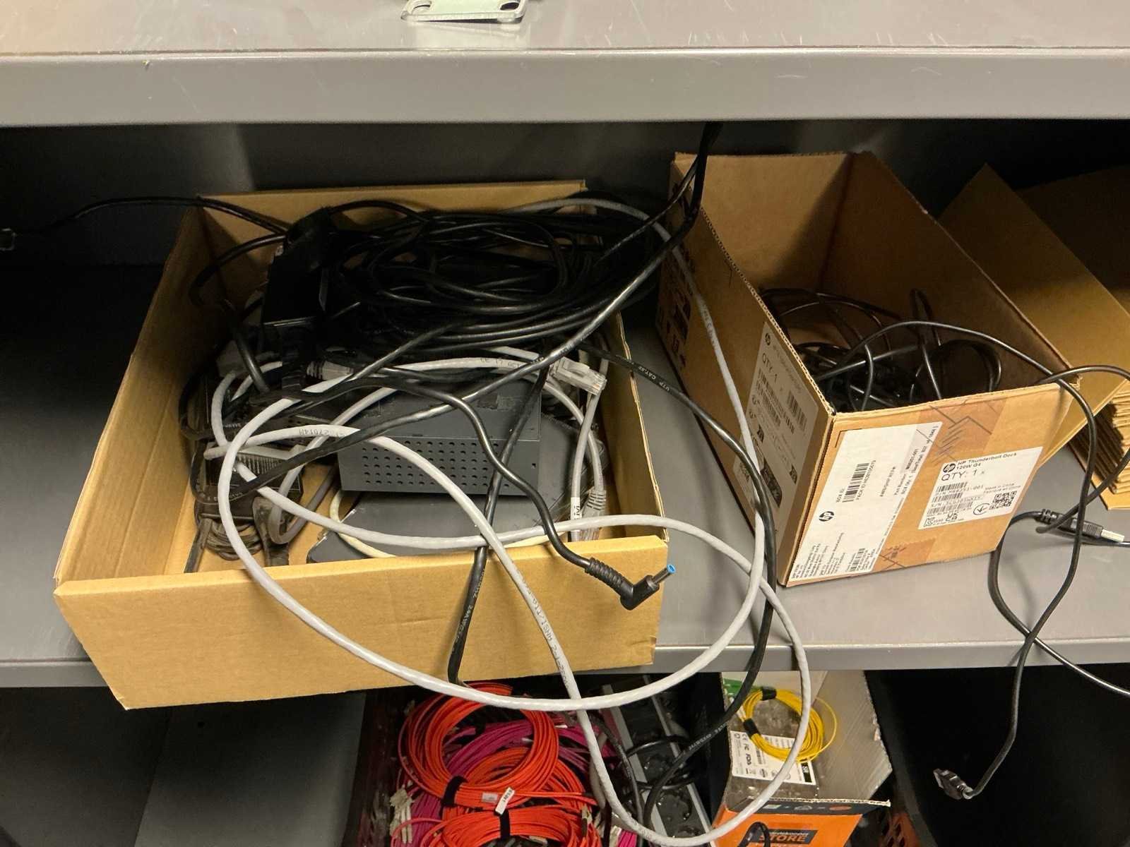 Alles in 5 archiefkasten, diverse kabels, aansluitmaterialen, randapparatuur, Netwerkapparatuur etc.