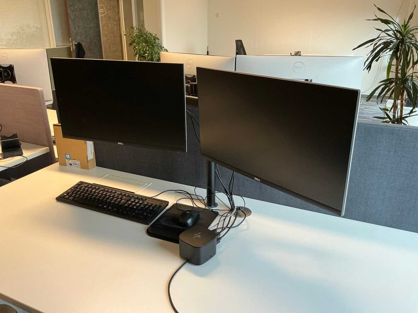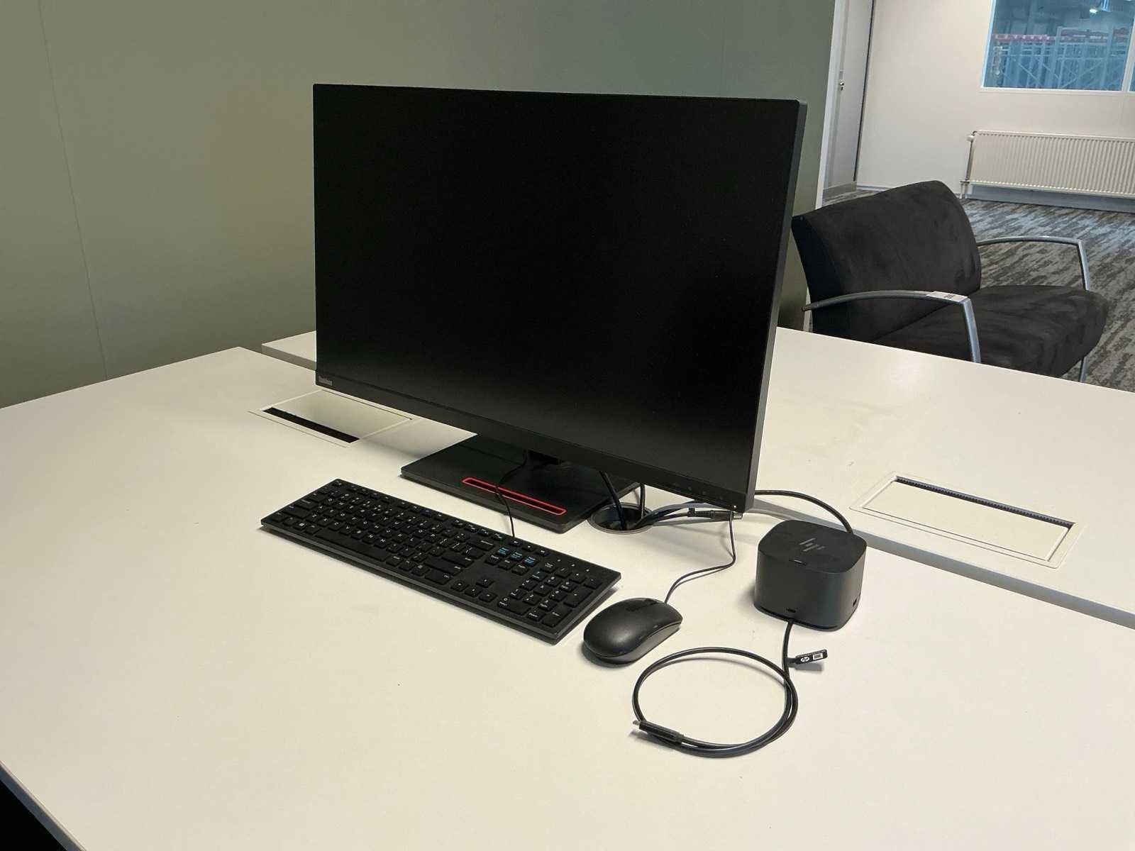 Met 10 Neomounts beugel, 12x HP USB-C Dock, toetsenborden en muizen. Waaronder: 22, 24 en 32 inch. Merk: Dell/HP/Lenovo