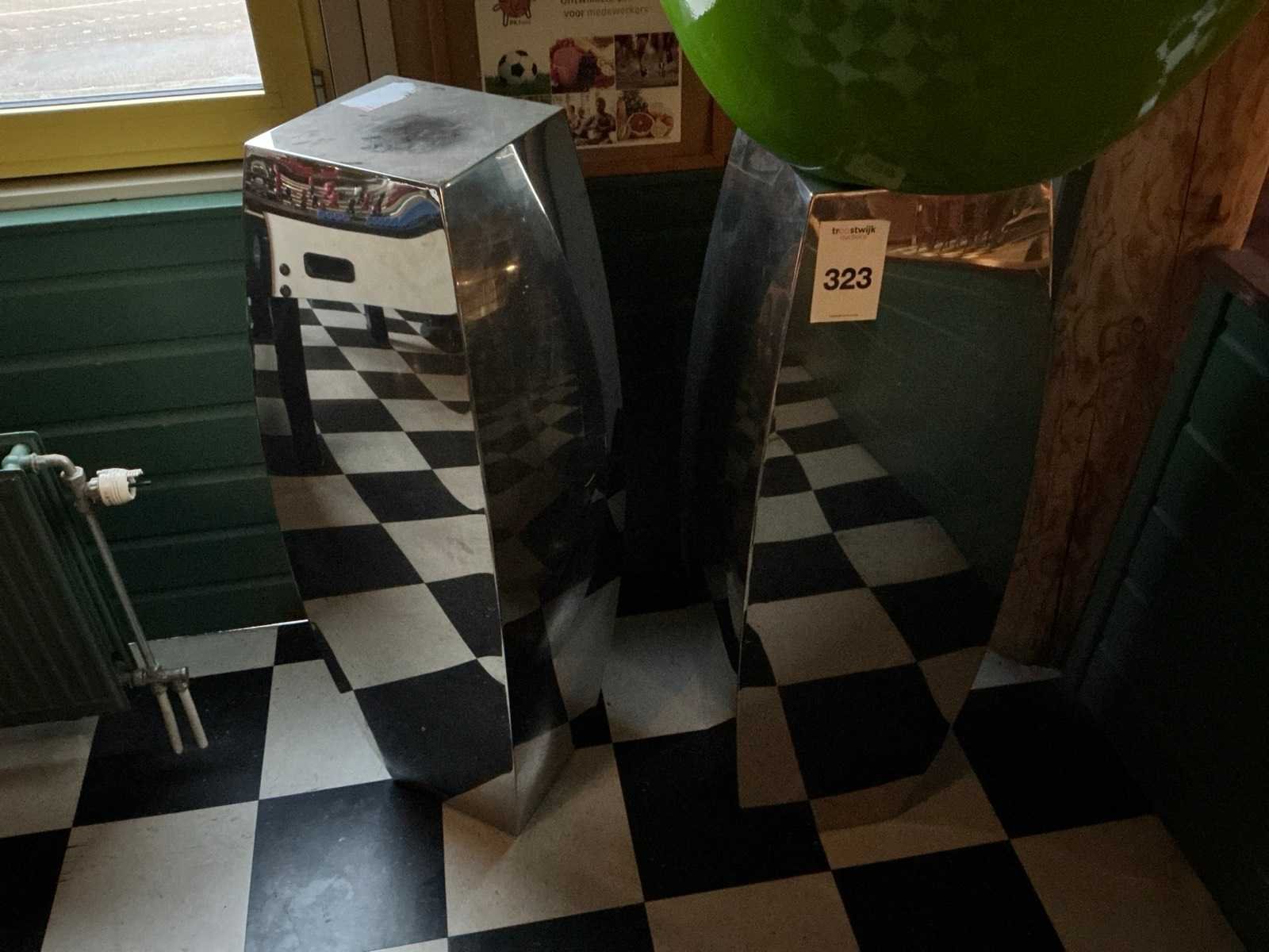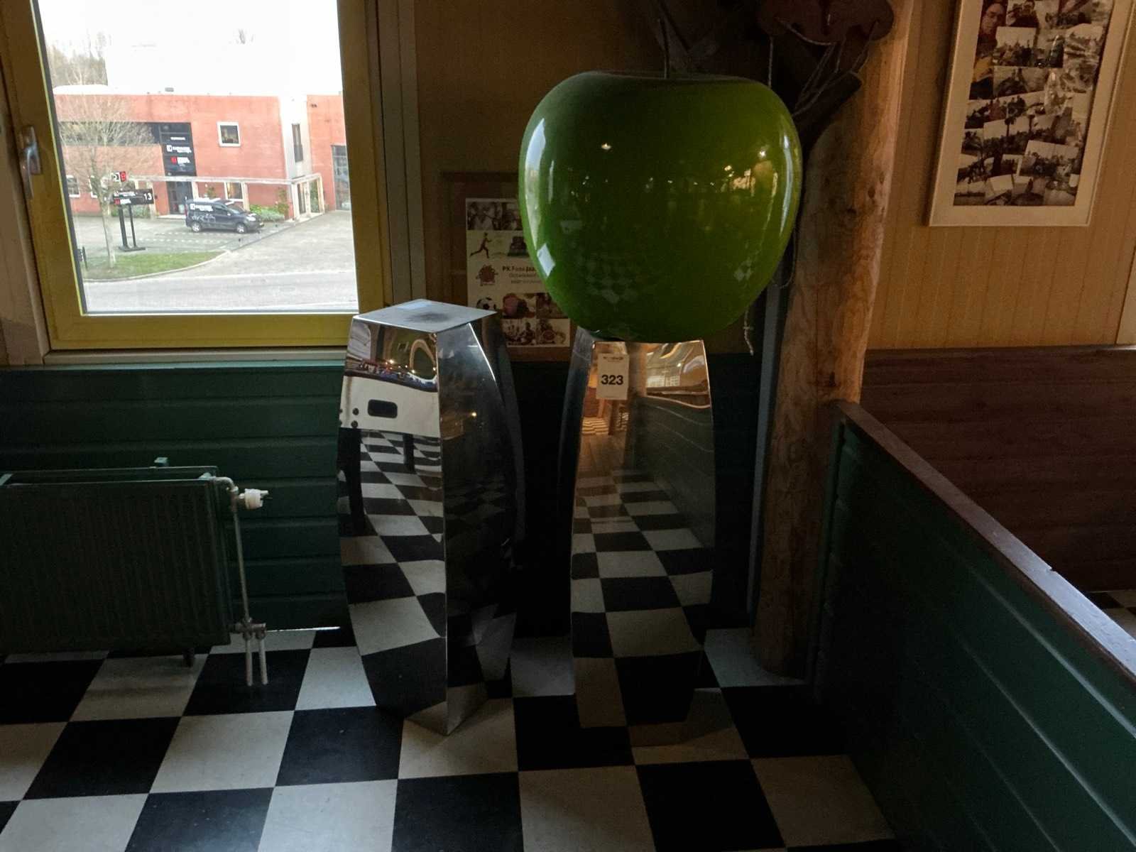 2 sokkels chroomkleurig 30x30x112cm en 1x Groene appel 60cm