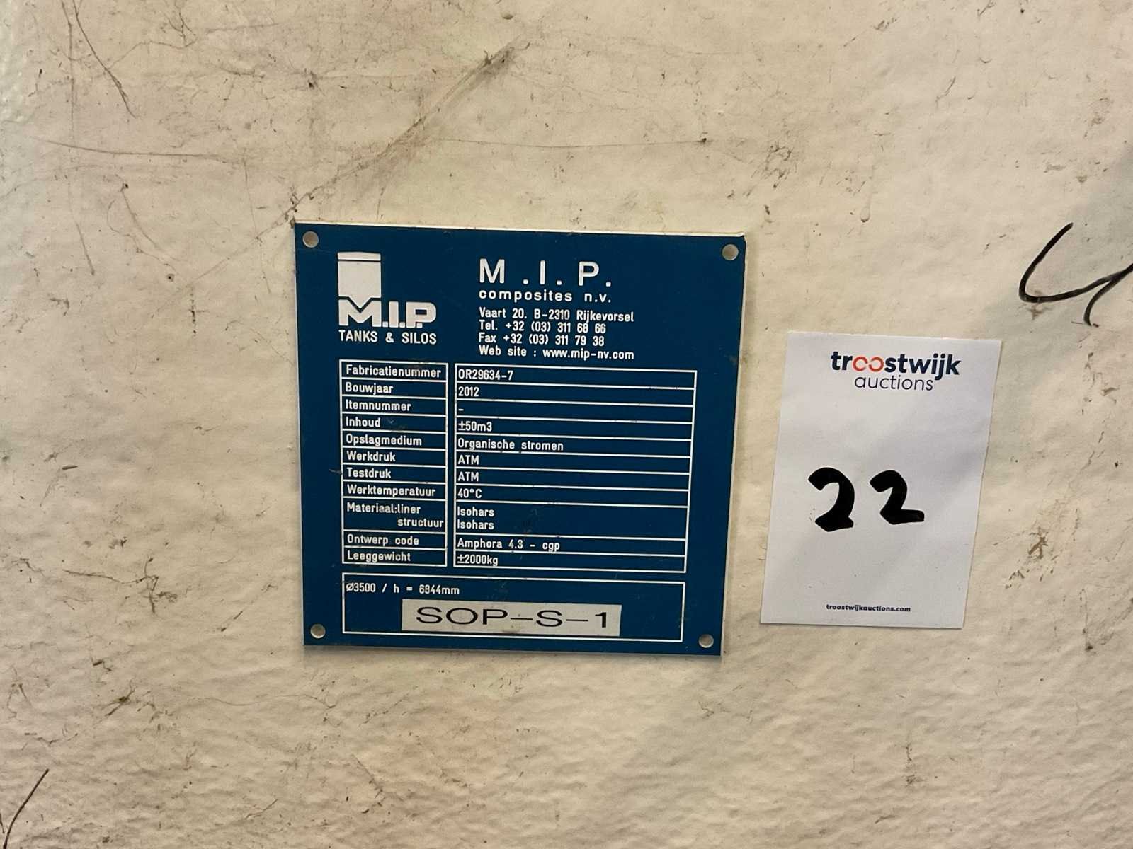 Volume inhoud circa 50 m3, afmeting ø 3500 x H 6844mm. Dit kavel maakt deel uit van de eindcombinatie 31 (1 t/m 30). Uitlevering op afspraak Merk: M.I.P. Gewicht: 2000kg Bouwjaar: 2012 Serienummer: OR29634-7 Kunststof: true Mixer: true