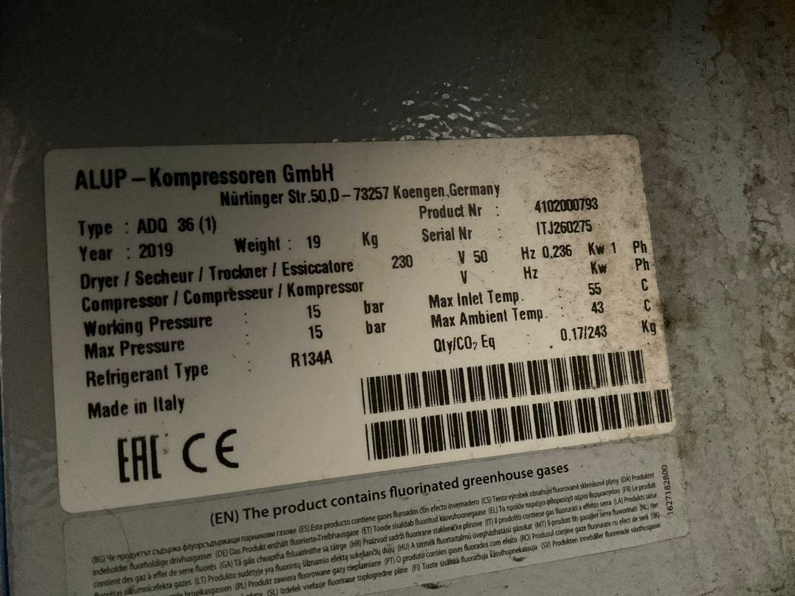 Merk: Alup Type: SCK 7-10 Bouwjaar: 2019 Capaciteit.: 10bar Buffertank inhoud: 200l Afgelezen urenstand: 4020 Aansluiting: 400V Totale afmeting L: 1300mm Totale afmeting Breedte: 550mm Totale afmeting Hoogte: 1250mm