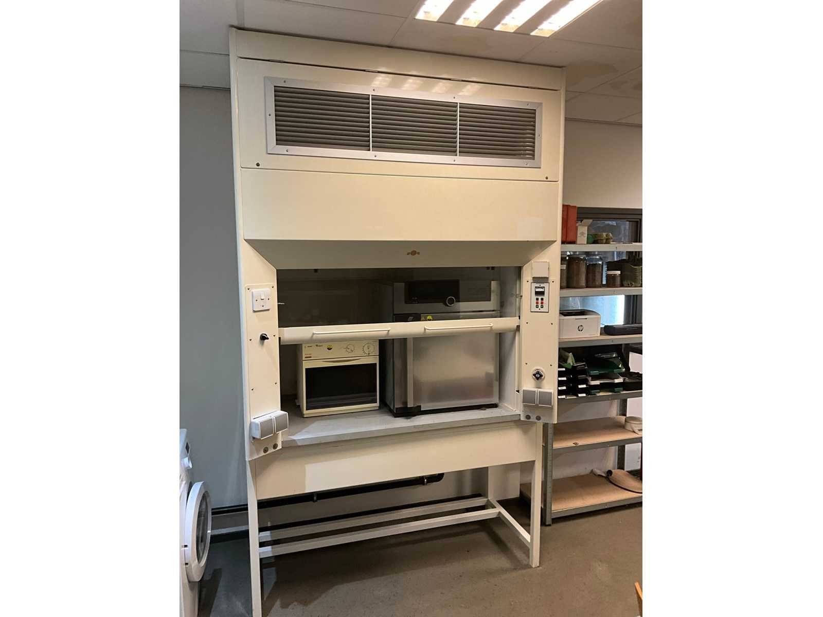 Voorzien van afzuiging, magnetron inbegrepen, laboratorium oven niet inbegrepen Totale afmeting L: 1500mm Totale afmeting Breedte: 900mm Totale afmeting Hoogte: 2600mm