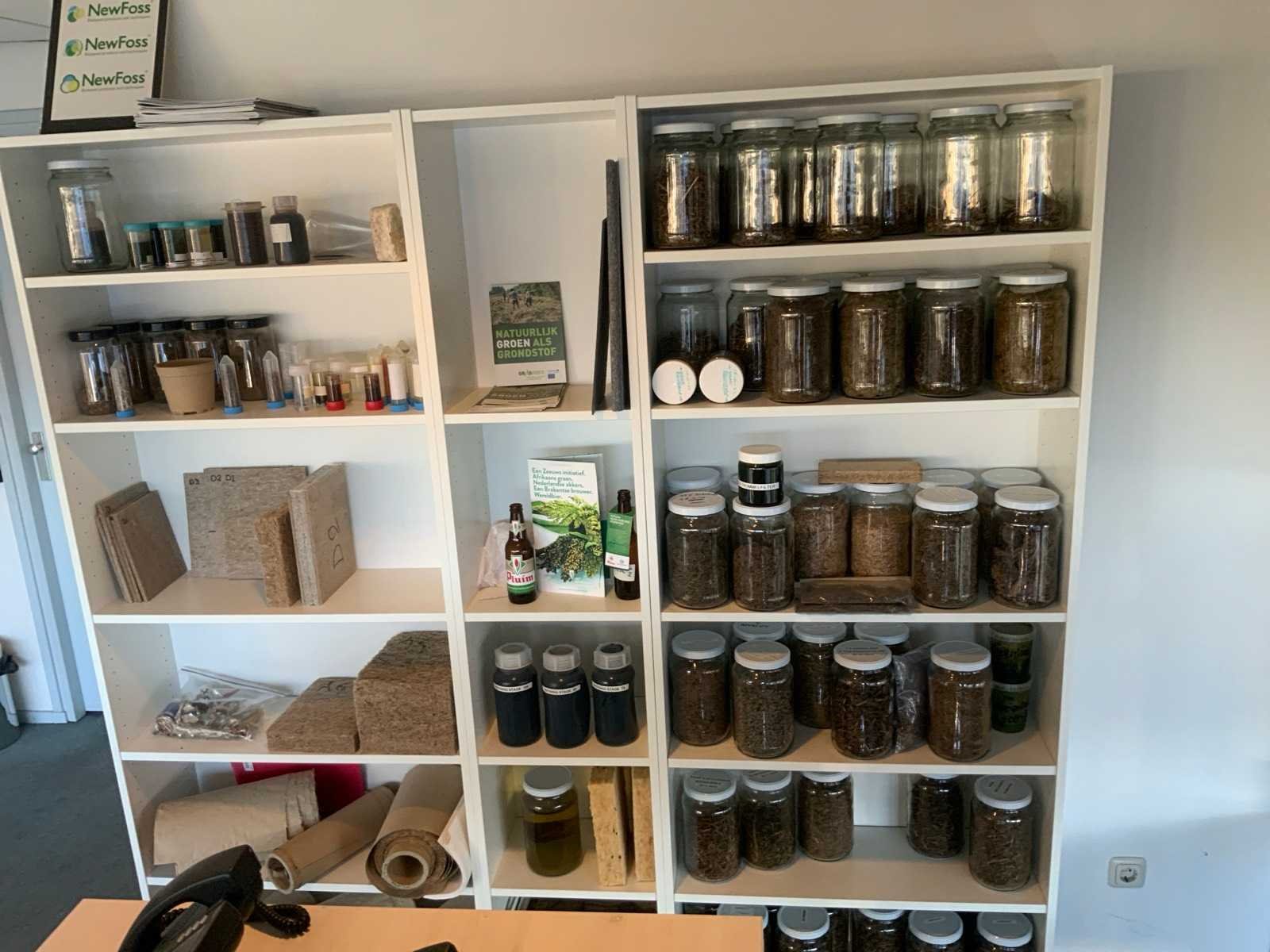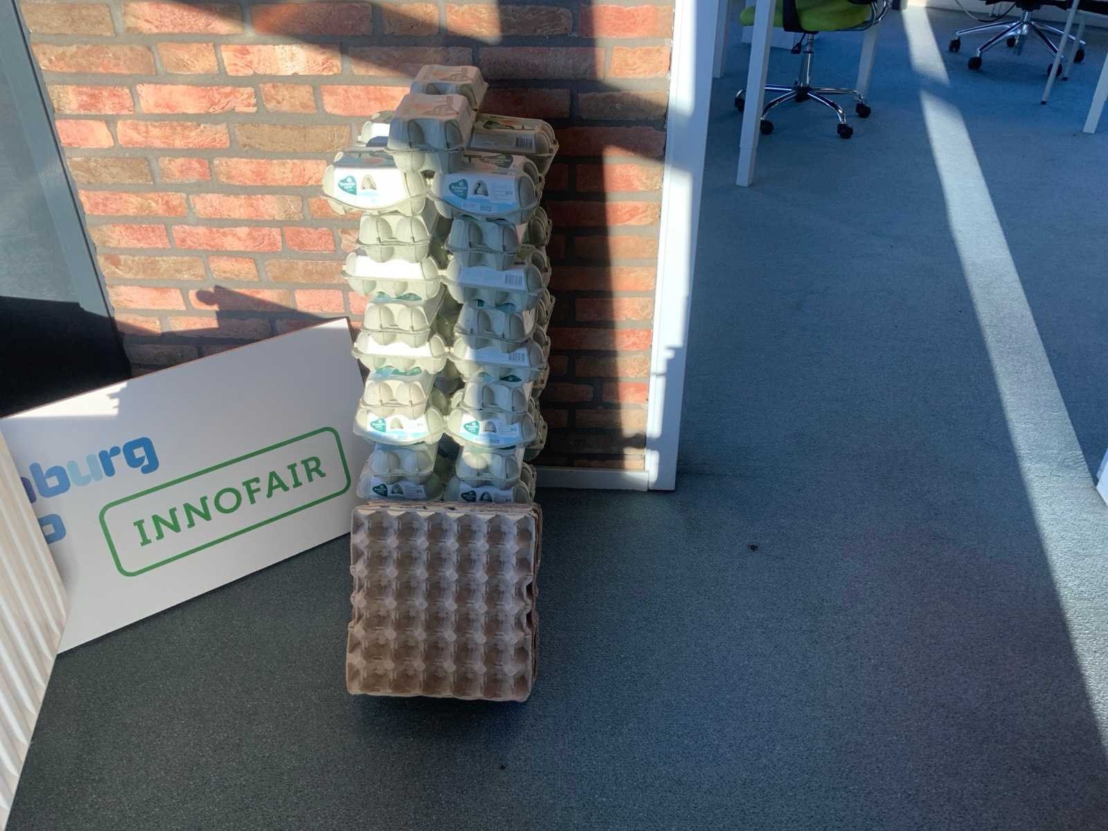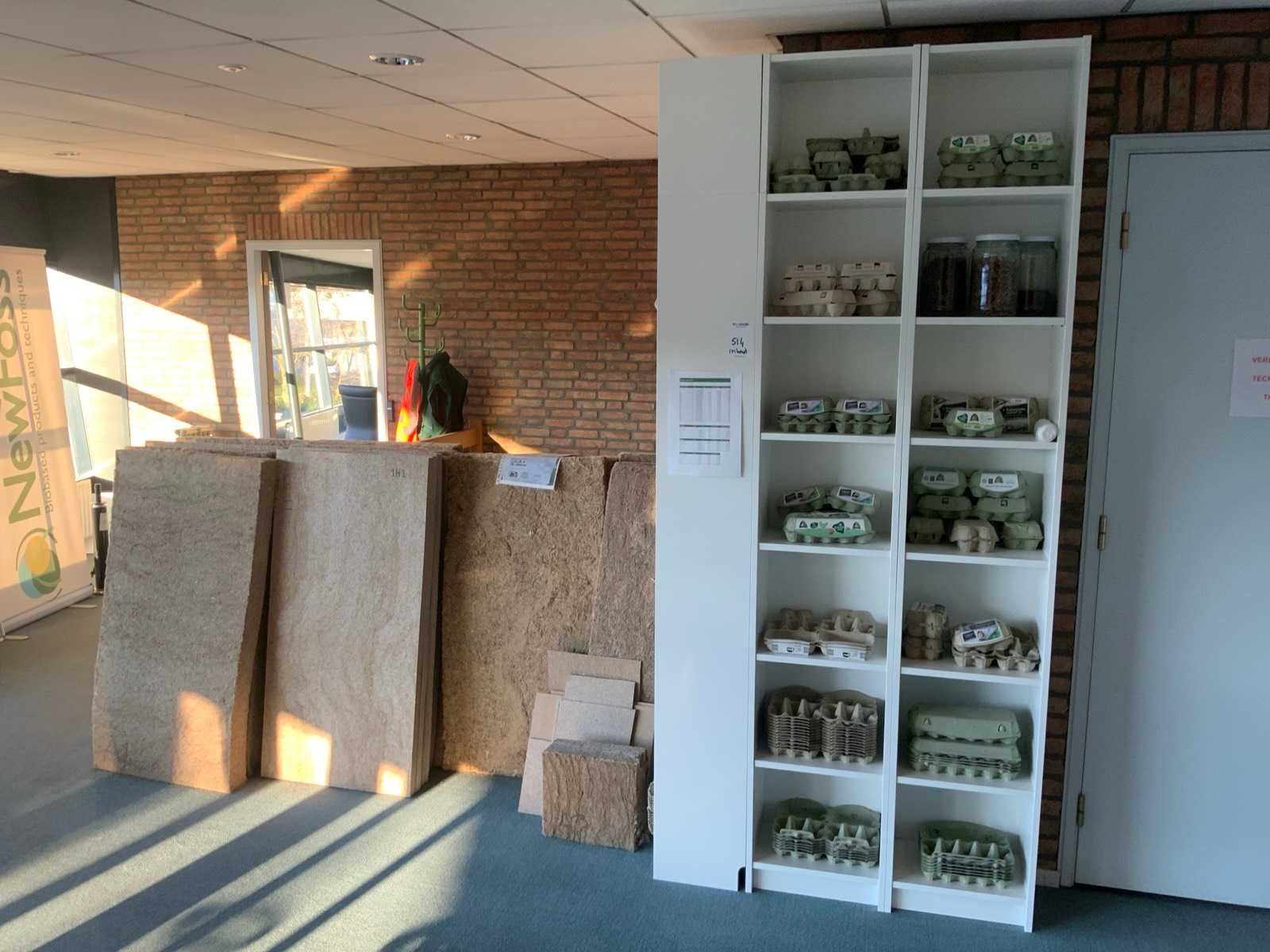 Bestaande uit: eierdoosjes 1e: isolatiemateriaal 2e: glazen potten met vezels