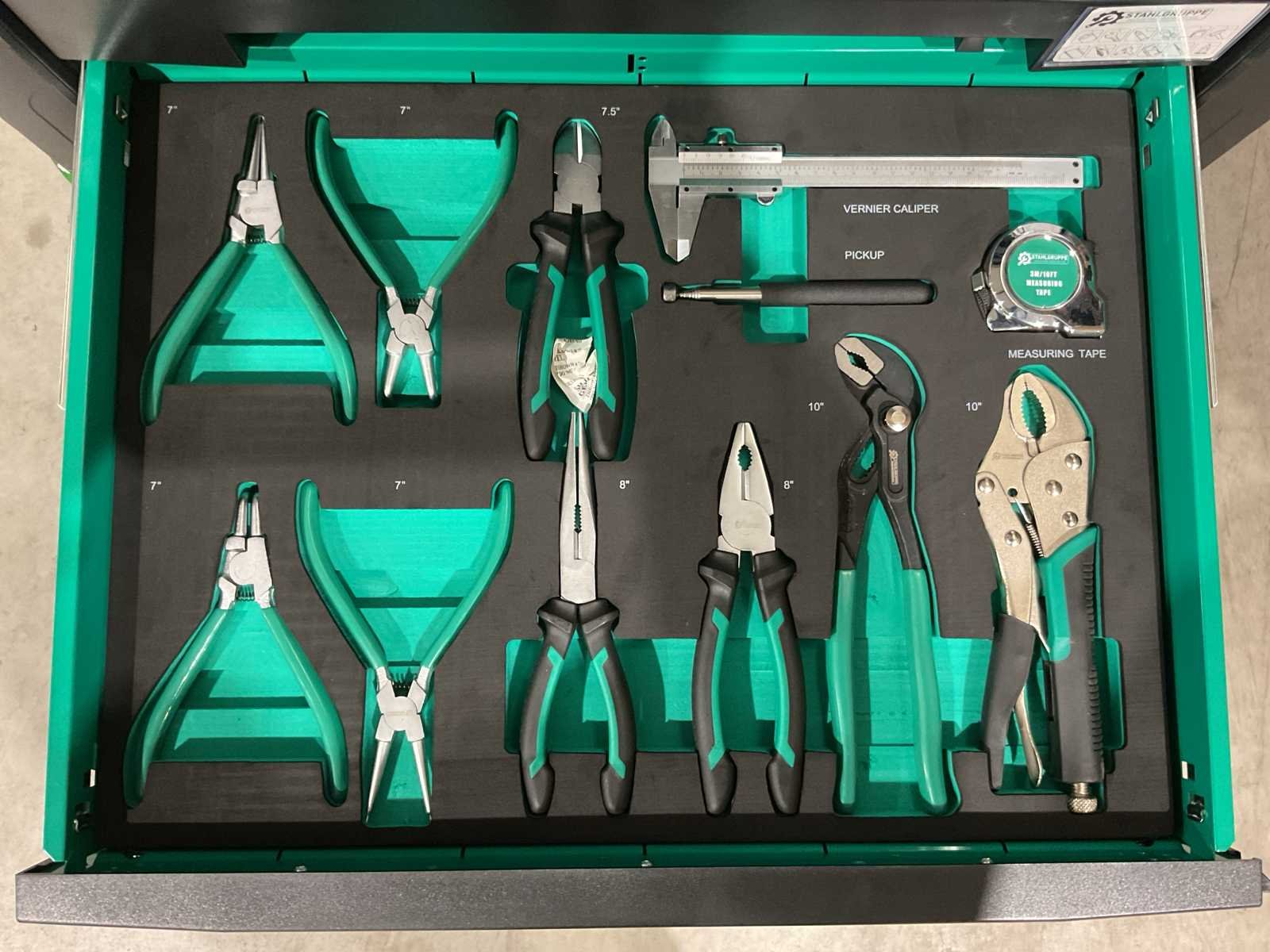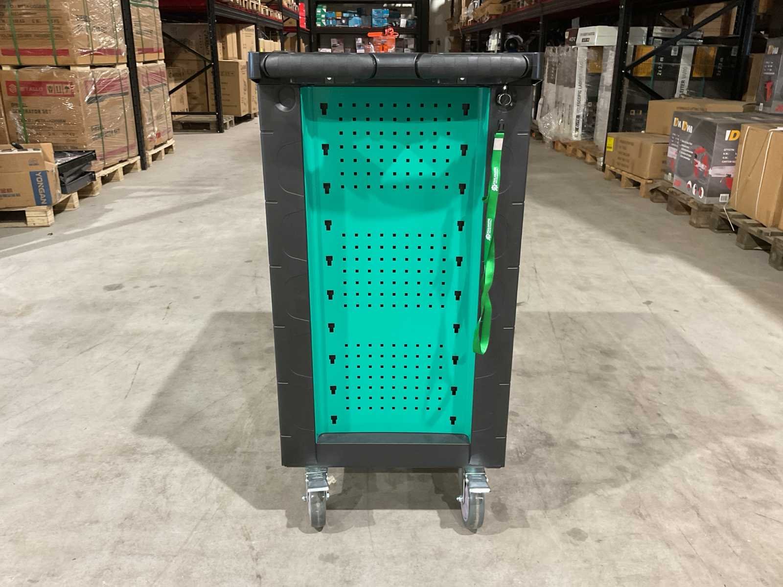 Voorzien van 7 lades waarvan 5 gevuld met gereedschap; professioneel chroom-vanadium gereedschap; heavy duty gereedschapswagen; stevig werkblad; 4 wielen; stevig handvat; ongebruikt in doos (transport afmetingen 80x50x105 cm) Merk: Stahlgruppe Type: SG9 Bouwjaar: 2025 Aantal laden: 7 Met inhoud: true Eigen gewicht: 78kg Totale afmeting L: 800mm Totale afmeting Breedte: 500mm Totale afmeting Hoogte: 1050mm