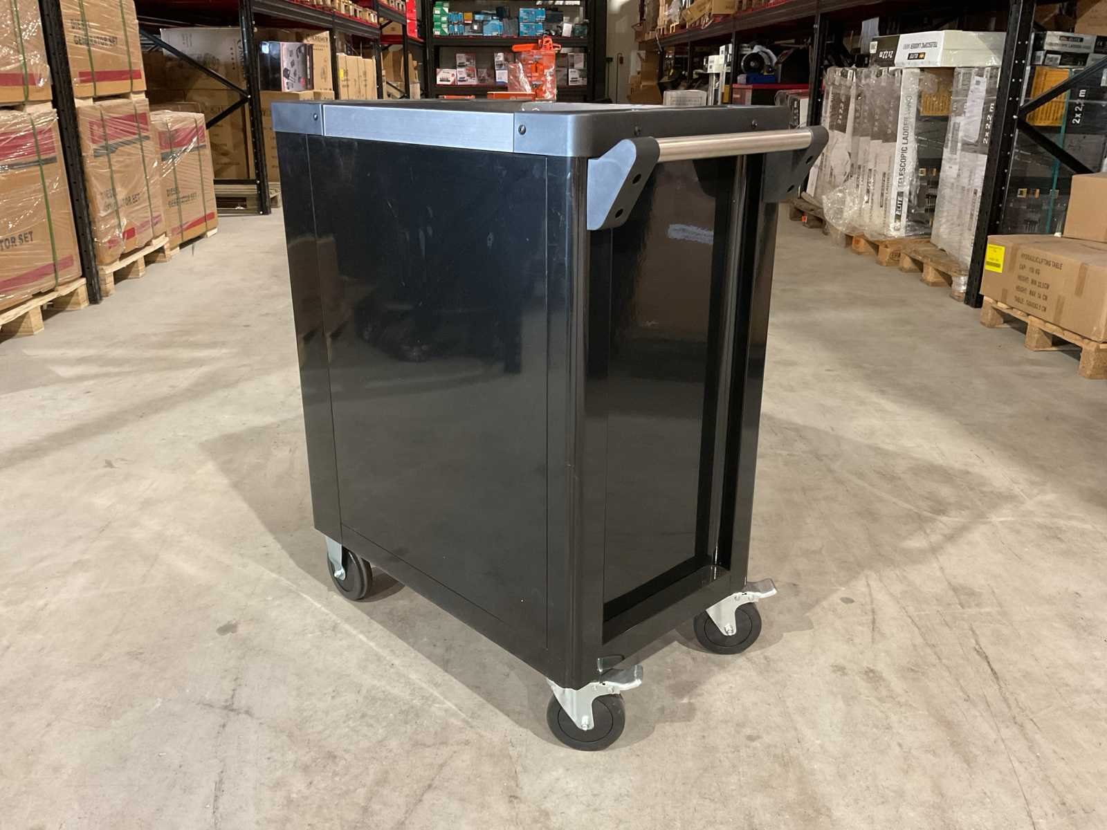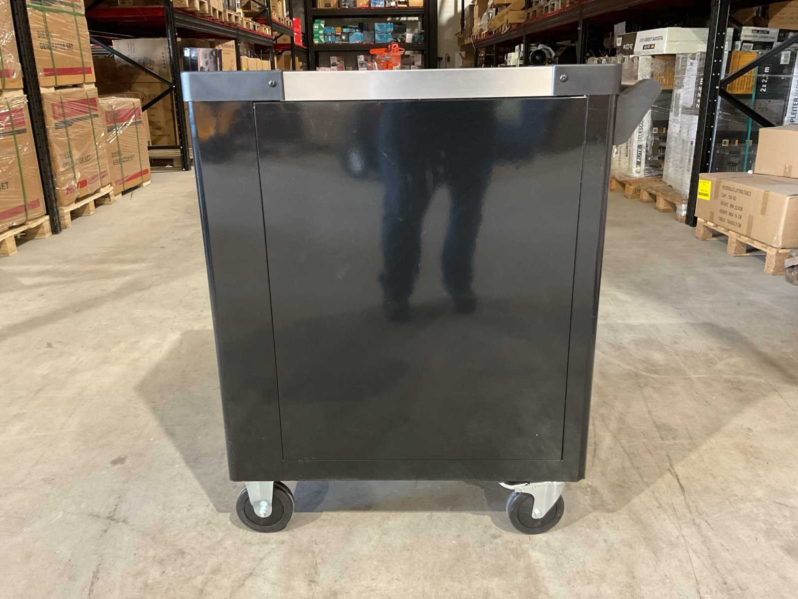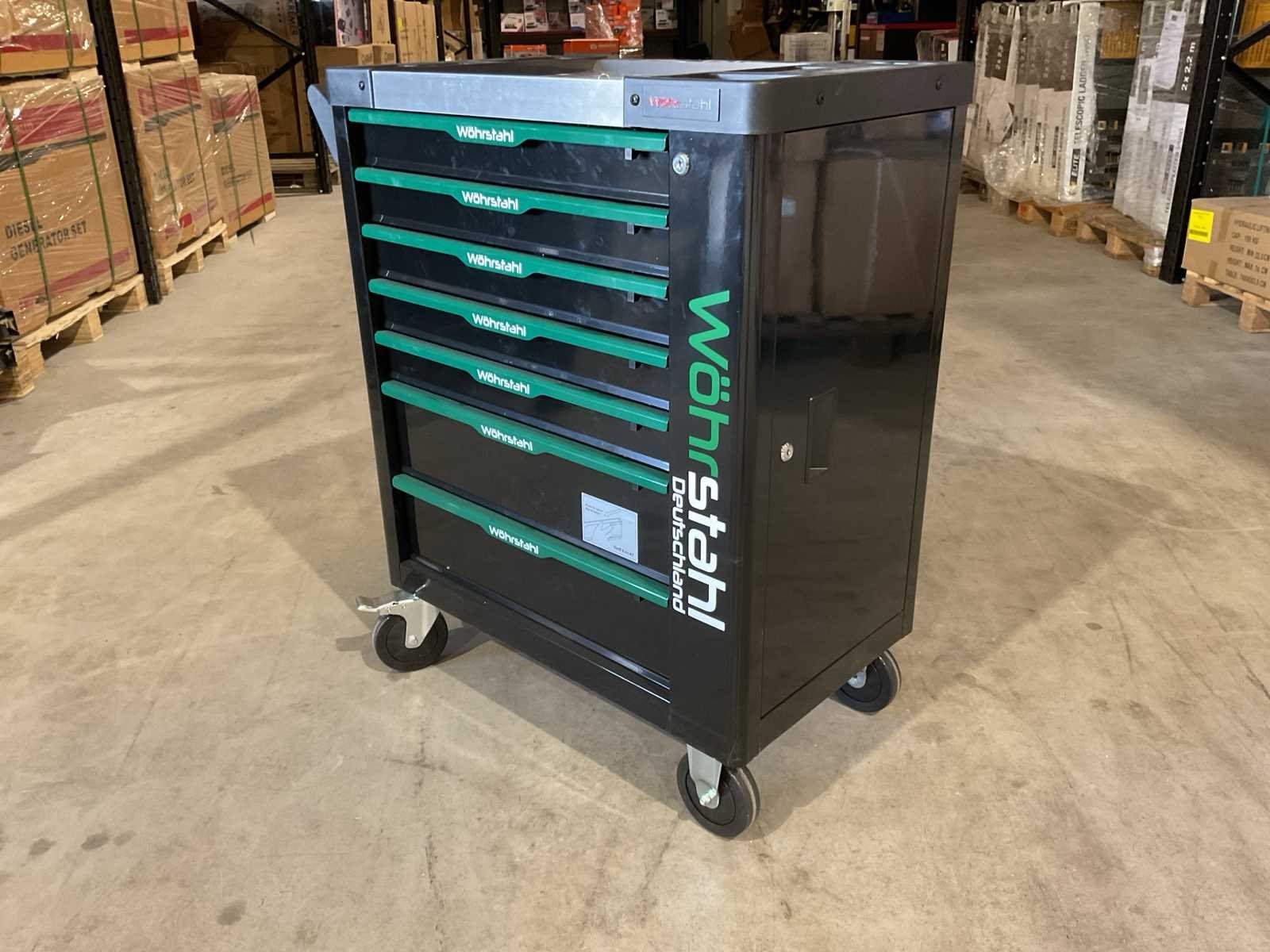 Voorzien van 7 lades waarvan 7 gevuld met gereedschap; professioneel chroom-vanadium gereedschap; heavy duty gereedschapswagen; stevig werkblad; 4 wielen; stevig handvat; ongebruikt in doos (transport afmetingen 80x50x85 cm) Merk: Wöhrstahl Type: Deutschland 7/7 Bouwjaar: 2025 Aantal laden: 7 Met inhoud: true Eigen gewicht: 75kg Totale afmeting L: 800mm Totale afmeting Breedte: 500mm Totale afmeting Hoogte: 850mm