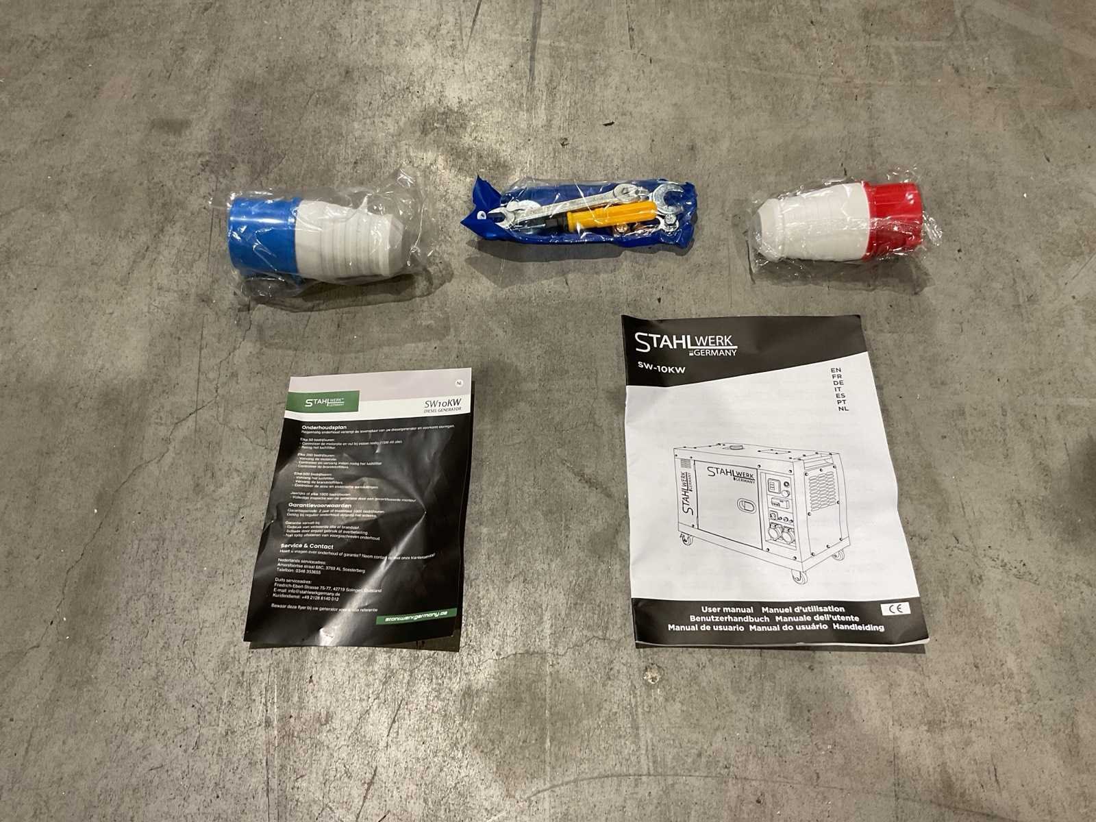 Voorzien van Dieselmotor; Cilinderinhoud: 532 CC; Motorvermogen: 11,0 HP; Uitgangsvermogen (nominaal): Enkel fase: 7,9 kVA, Drie fase: 8,8 kVA; Maximaal uitgangsvermogen: Enkel fase: 8,8 kVA, Drie fase: 9,8 kVA, Brandstoftank: 15 liter; Oliecapaciteit: 1,65 liter; Elektrisch (Electric Start); Display: LED; Geluidsniveau: 72 dB(A) @ 7 meter; Bedrijfstijd bij 75% belasting: 7,0 – 7,5 uur; AC-uitgangen: 1x 230V / 32A (3-pins), 1x 400V / 16A (5-pins); Ongebruikt (Transport afmeting; 980x56x860mm; Gewicht 182 kg) Merk: Stahlwerk Type: SW-10KW Bouwjaar: 2025 Capaciteit.: 10kVA Diesel: true Mobiel: true Handboek aanwezig: true Machinegewicht: 170kg Totale afmeting L: 960mm Totale afmeting Breedte: 820mm Totale afmeting Hoogte: 540mm