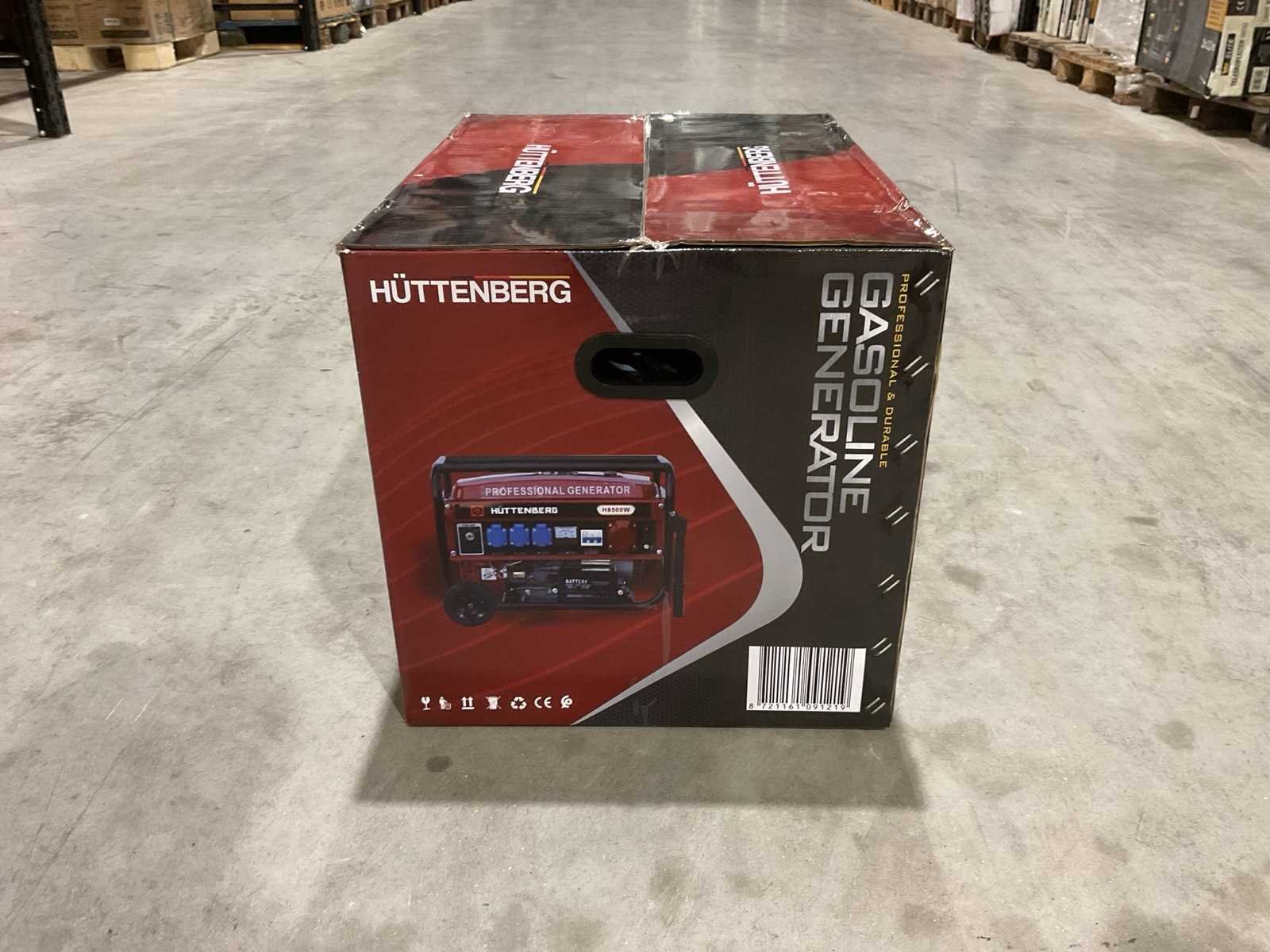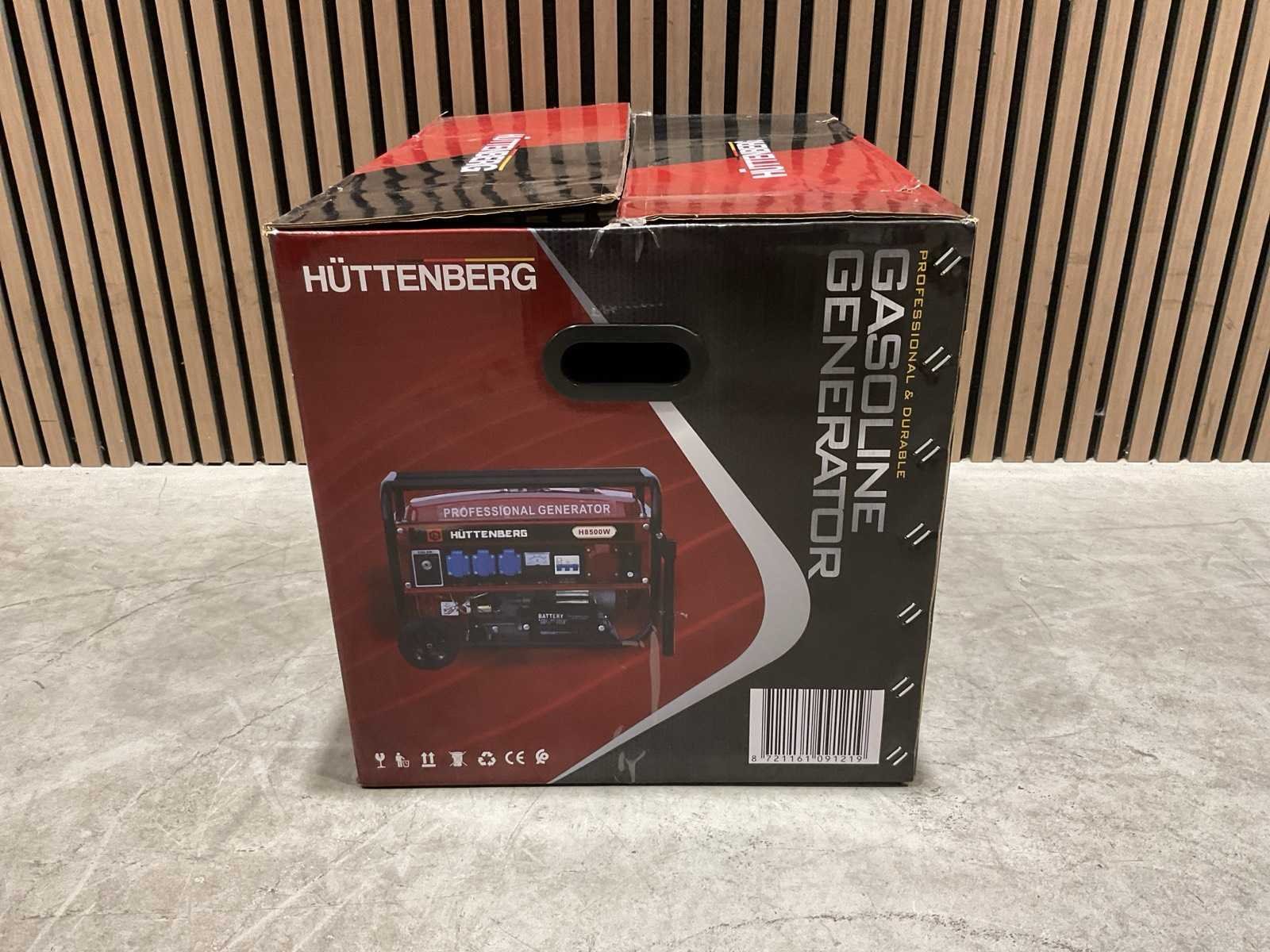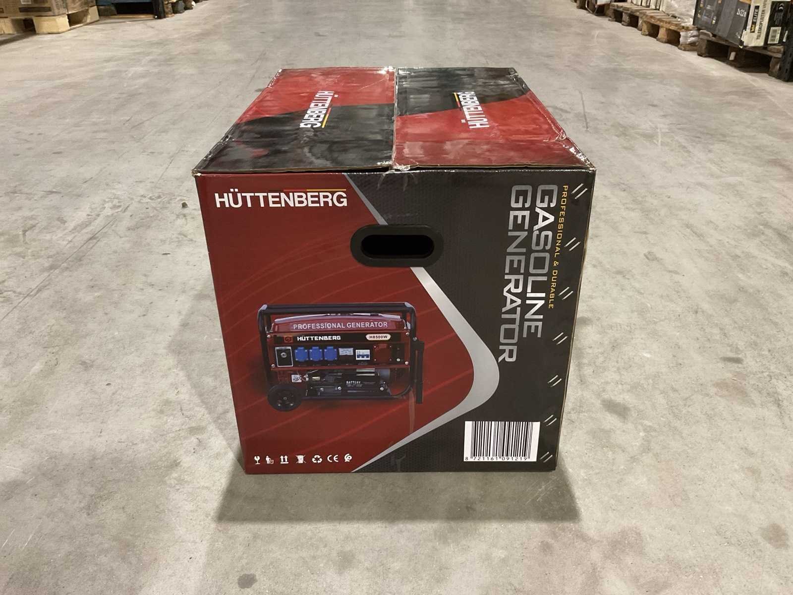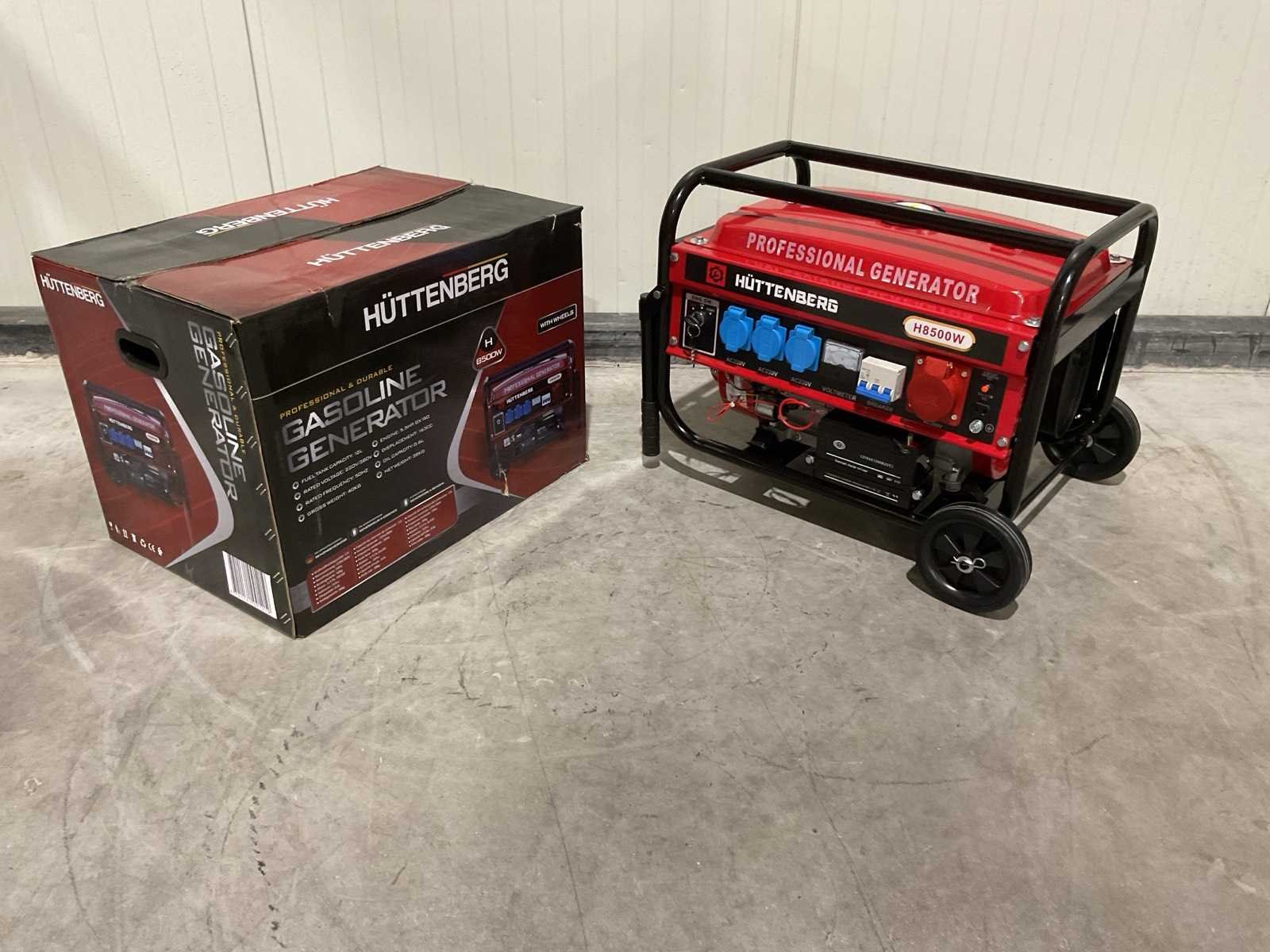 Voorzien van 12liter tankinhoud; Nominale spanning 220v / 380v; Nominale frequentie 50Hz; Motor 5,5 PK GX160 163cc; Olie inhoud 0,6 L; nieuw in doos Merk: Huttenberg Type: H8500 op wielen met accu Bouwjaar: 2025 Benzine: true