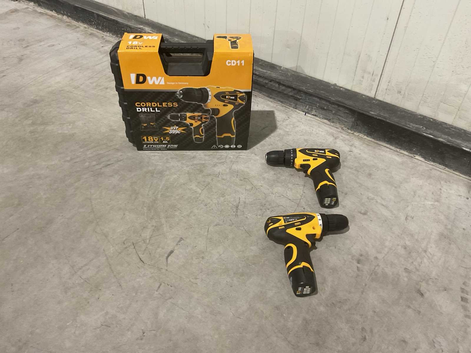 Voorzien van koffer met accessoires; 2 accu’s; oplader; 2 boormachines waarvan 1 met klopfunctie; 6 boren; 6 biten; Ongebruikt in doos (Transport afmeting 350 x 100 x 300, Gewicht 3.44kg) Merk: DW Type: CD11 Bouwjaar: 2025 Accuspanning: 18V Aantal accu's: 2 Accu type: LITHIUM ION Accu lader: true Klopboormachine: true Boorhamer: true Met koffer: true